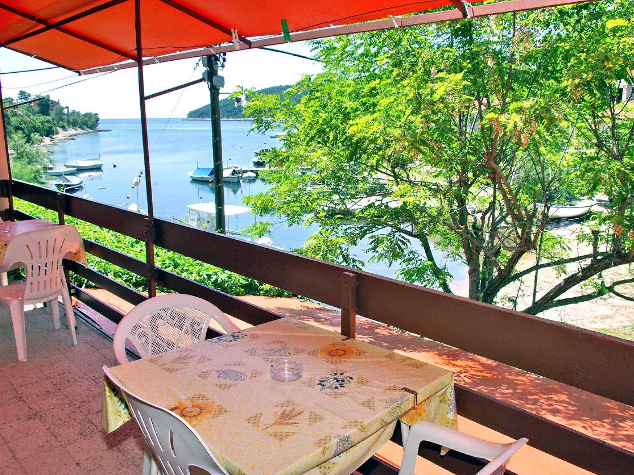 Tri luke (Tri porte) 8 km from Vela Luka: Apartment house "Šarenko". In the hamlet Sv. Petar, in a quiet, sunny position, 10 m from the sea, 10 m from the beach, in the countryside, south facing position. In the house: internet access. Parking at the house. Shop 8 km, restaurant 2 km, bus stop 8.6 km, shingle beach 10 m. Please note: Additional accommodations can be booked. Private mooring 1 m deep (extra).