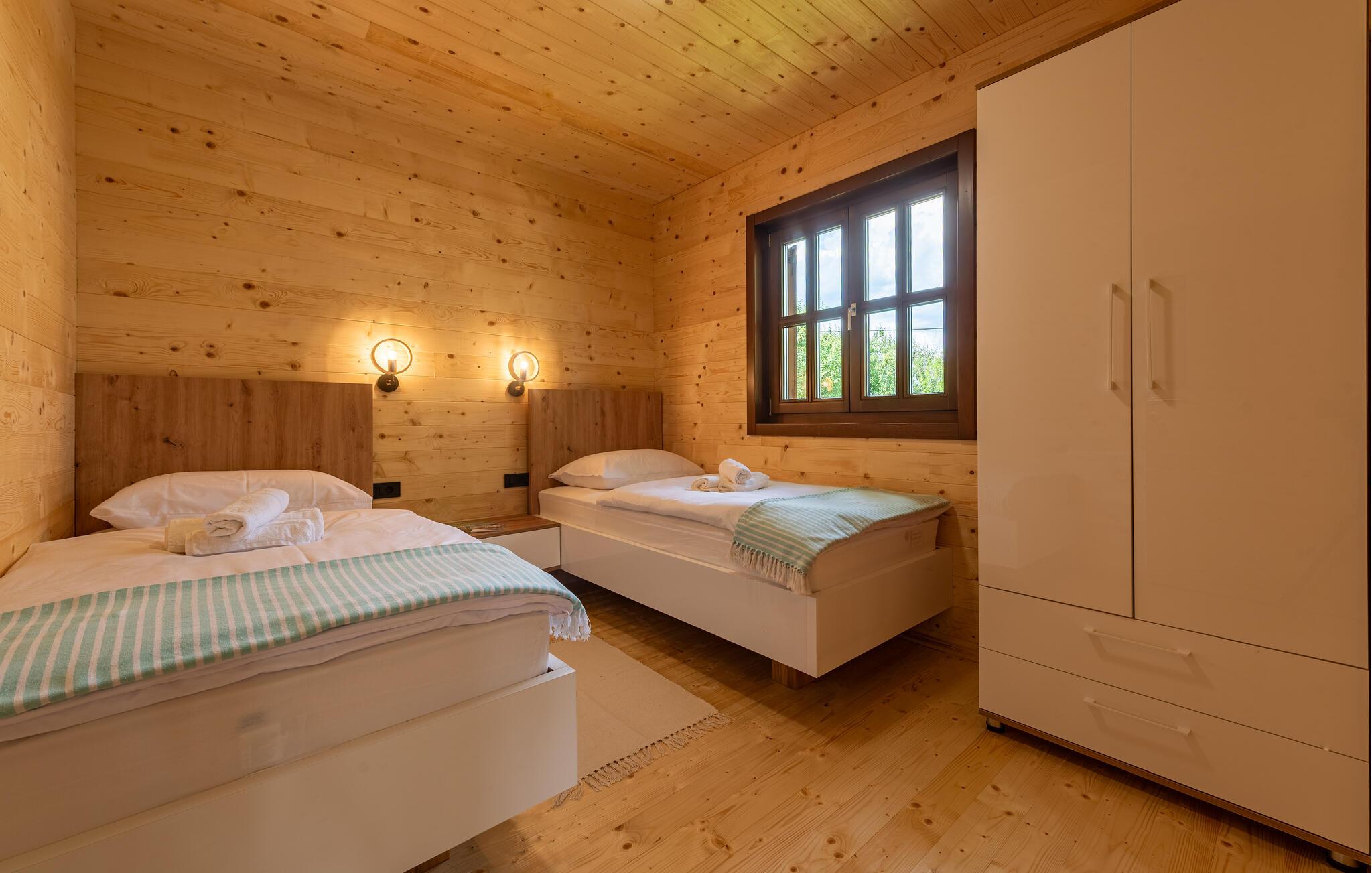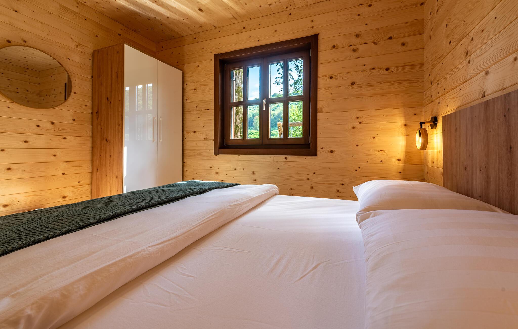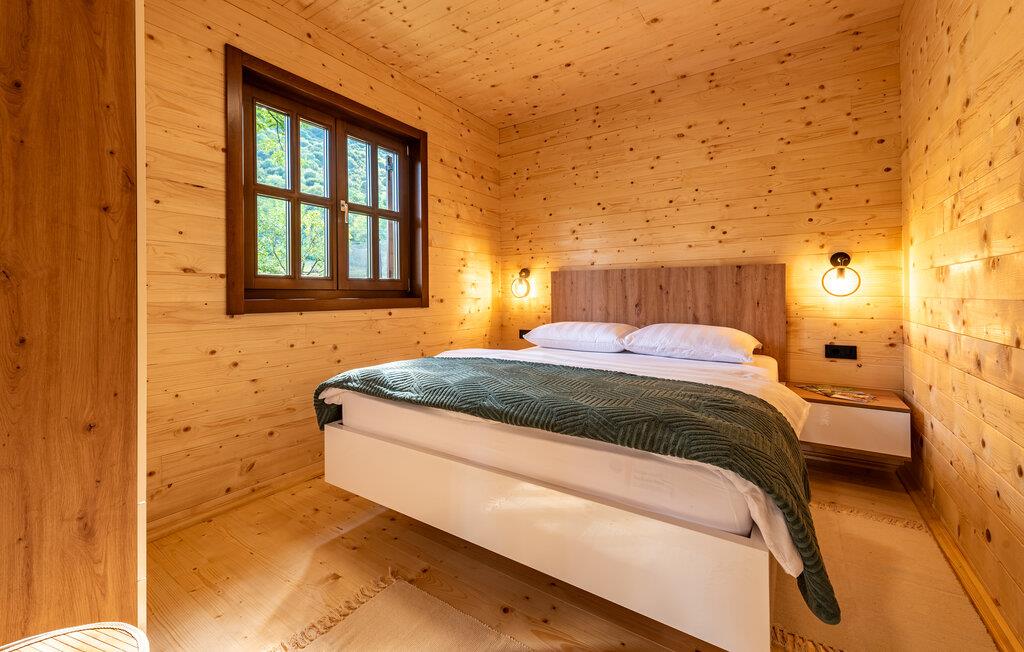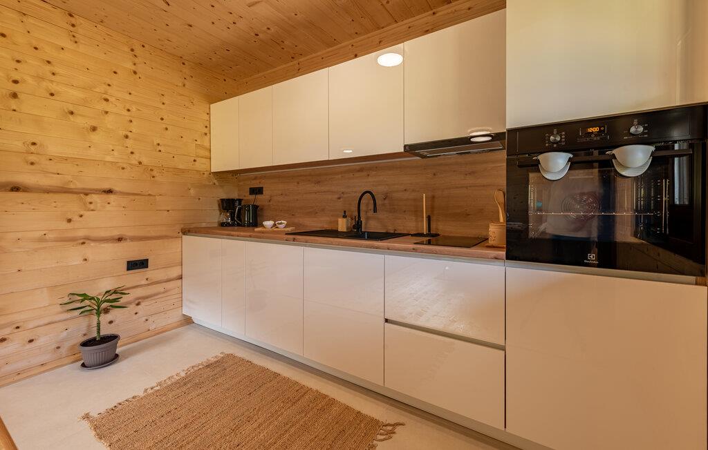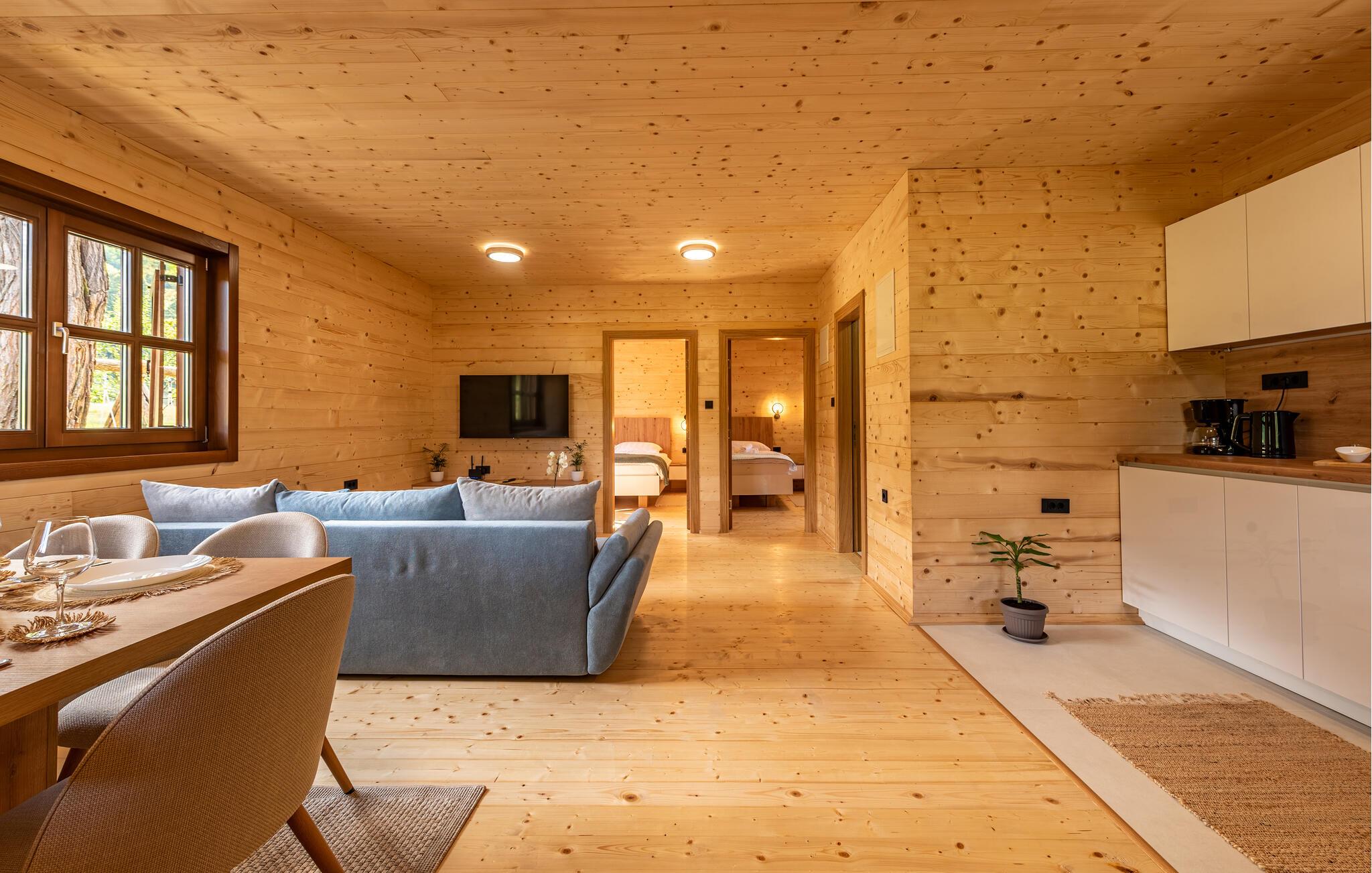 Velkommen til dette komfortable træhus, hvor I kan genoplade batterierne med jeres kære i en hyggelig atmosfære. Glæd jer til harmoniske måltider ved spisebordet, og stream en spændende film om aftenen, mens I hygger jer med hele familien i den behagelige sofa.