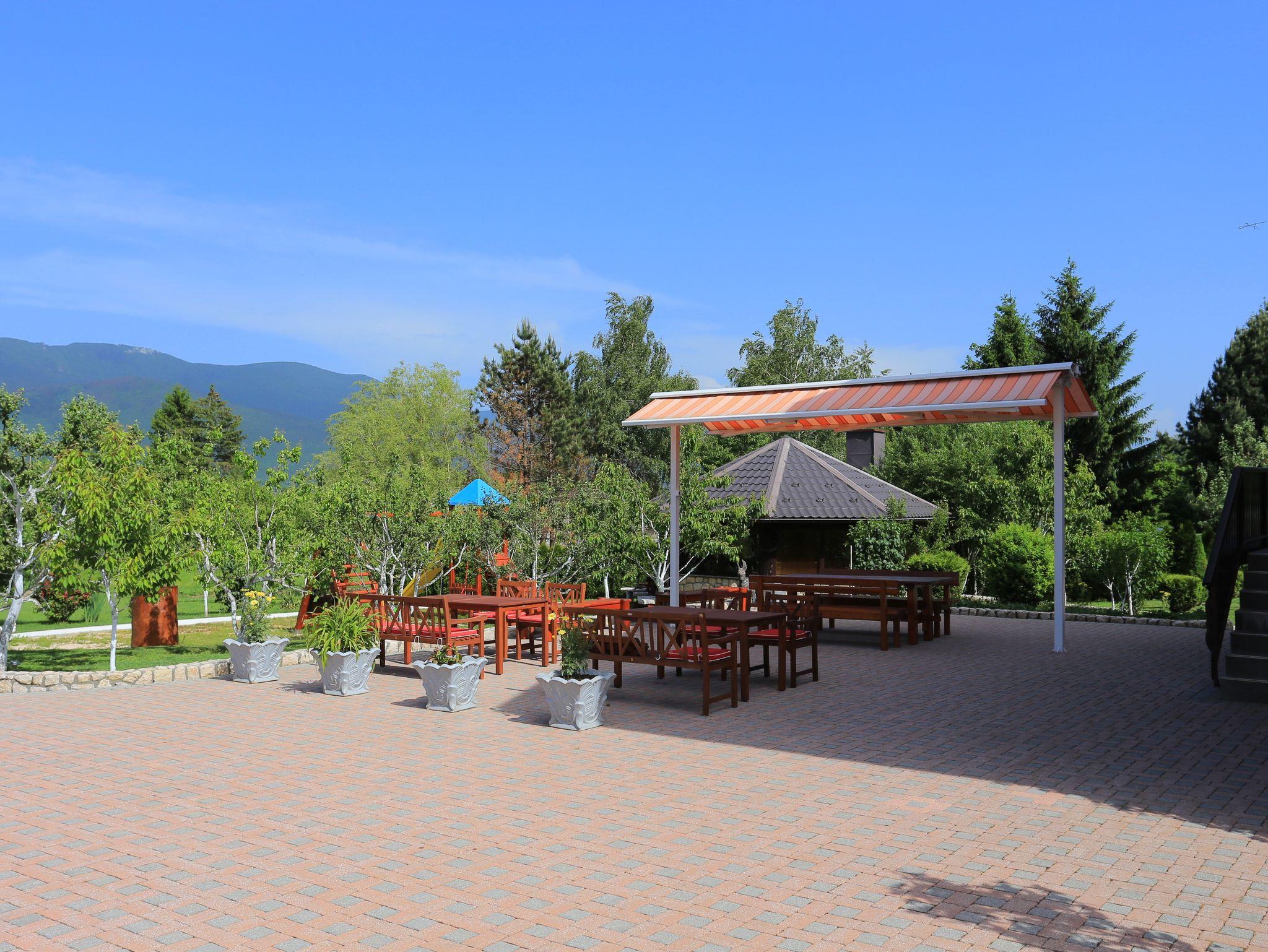 Umgebung des Objekts (Ordentlich), Hof (900m2, Wird mit einem anderen Objekt mitbenutzt, Kinderbereich, Sitzbereich), Parkplatz (Anzahl der Parkplätze: 15, Entfernung vom Objekt: im Hof), Grill: gemeinsam, Frühstück, WiFi Internet, Wäschewaschen, Föhn, Bügeleisen, Bügelbrett, Kinderbett