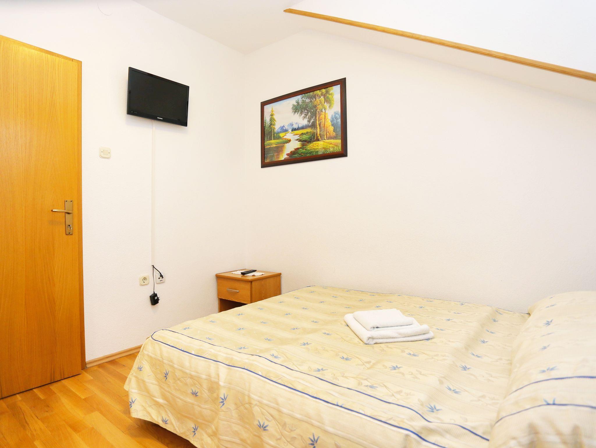 Zimmer bietet Platz für 2 Gäste. Die Betten sind in Schlafzimmern, die es 1 gibt, innerhalb einer Gesamtfläche von 12m2, angeordnet. Es ist erlaubt, Speisen auf dem Gemeinschafts-Grill vorzubereiten. In der Unterkunftseinheit besteht die Möglichkeit des Mitbringens von Haustieren gegen Aufpreis. Die reservierte Unterkunftseinheit hat keinen Balkon und keine Terrasse. Die reservierte Unterkunftseinheit ist ein Zimmer mit eigenem Badezimmer ohne die Möglichkeit der Nutzung einer Küche. IM PREIS INBEGRIFFEN: Kurtaxe, Endreinigung, Zentralheizung, Parkplatz, Internet, Kinderbett, Bügeleisen, Bügelbrett, Föhn. UNVERBINDLICHE ZUSÄTZLICHE KOSTEN: Frühstück (15,00 €, 50% Nachlass für Kinder zwischen 4 und 12 Jahren, Kinder bis 4 Jahre sind frei.), Wäschewaschen (5,00 € Waschen), Haustiere (20,00 € pro Nacht). Die Verfügbarkeit zusätzlicher Dienstleistungen in Ihrem reservierten Termin und die Preise derselben (falls nicht aufgeführt) müssen im Voraus überprüft werden. Zusätzliche Dienstleistungen die in der Zahlungsaufforderung nicht aufgeführt sind werden direkt beim Vermieter bezahlt, angenommen der Gast nutzt auch diese.