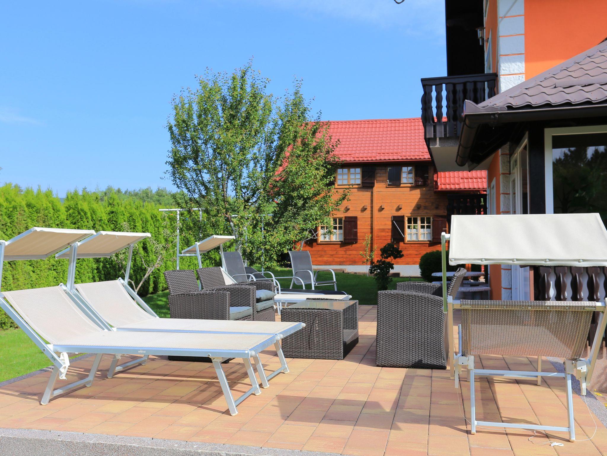 Umgebung des Objekts (Ordentlich), Hof (900m2, Wird mit einem anderen Objekt mitbenutzt, Kinderbereich, Sitzbereich), Parkplatz (Anzahl der Parkplätze: 15, Entfernung vom Objekt: im Hof), Grill: gemeinsam, Frühstück, WiFi Internet, Wäschewaschen, Föhn, Bügeleisen, Bügelbrett, Kinderbett
