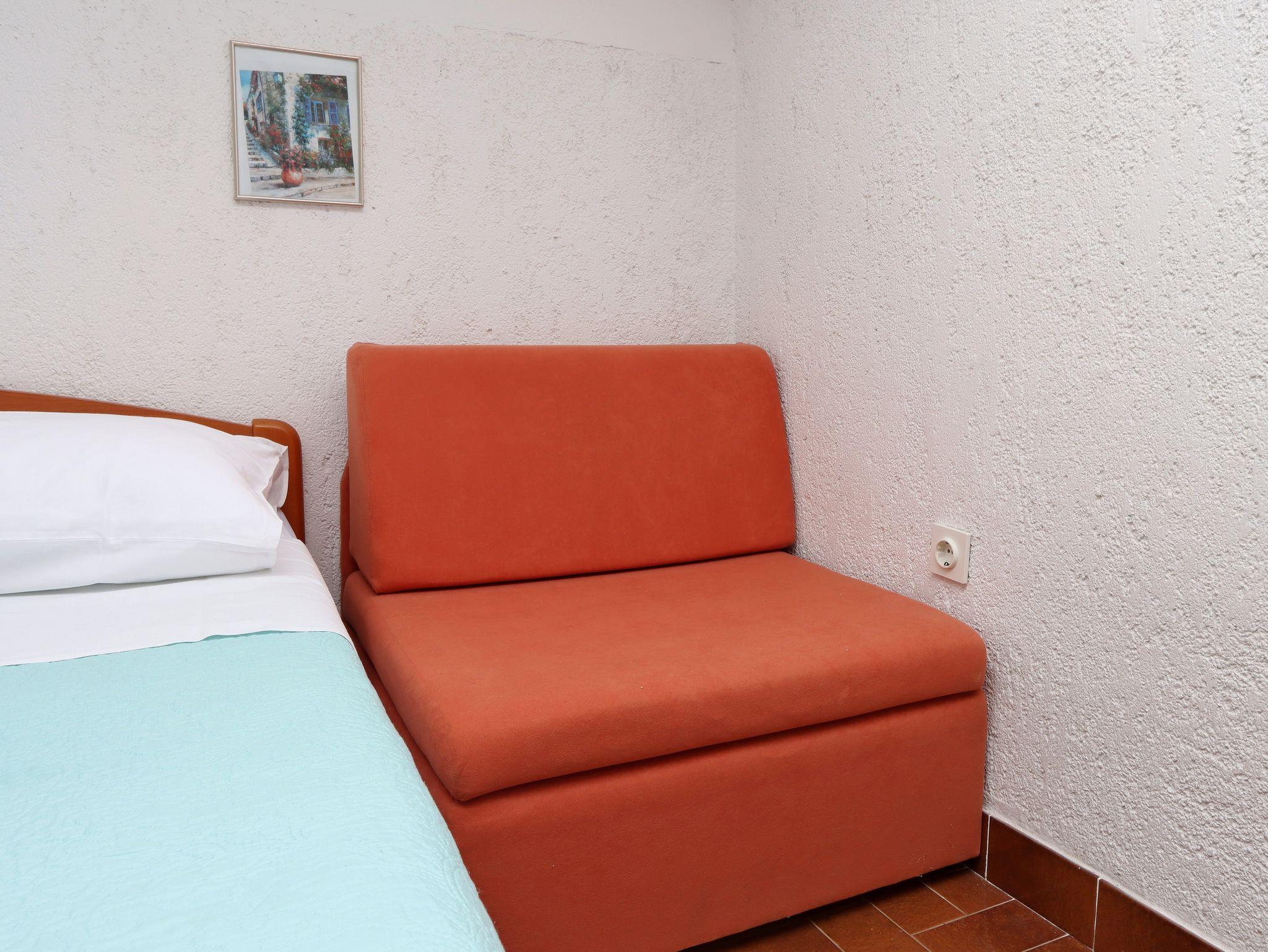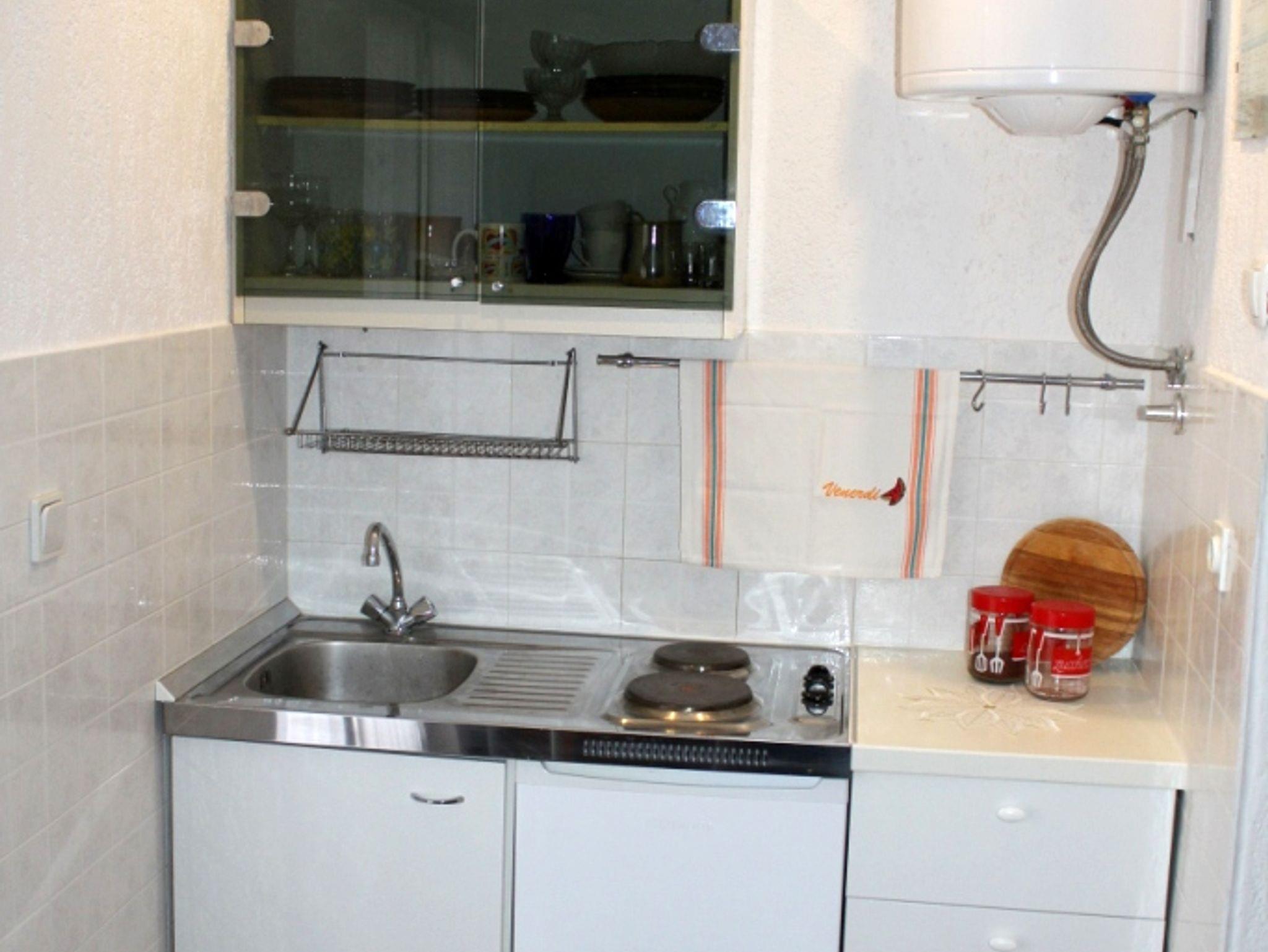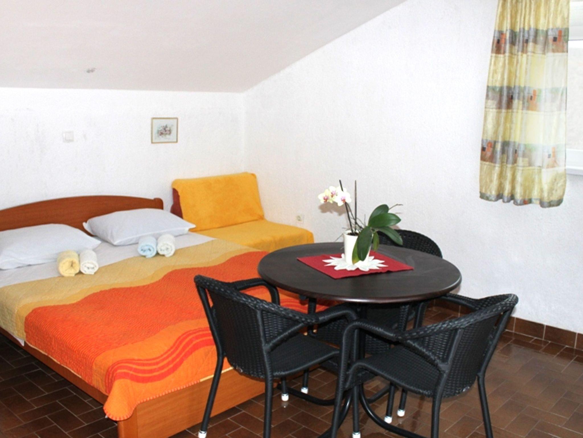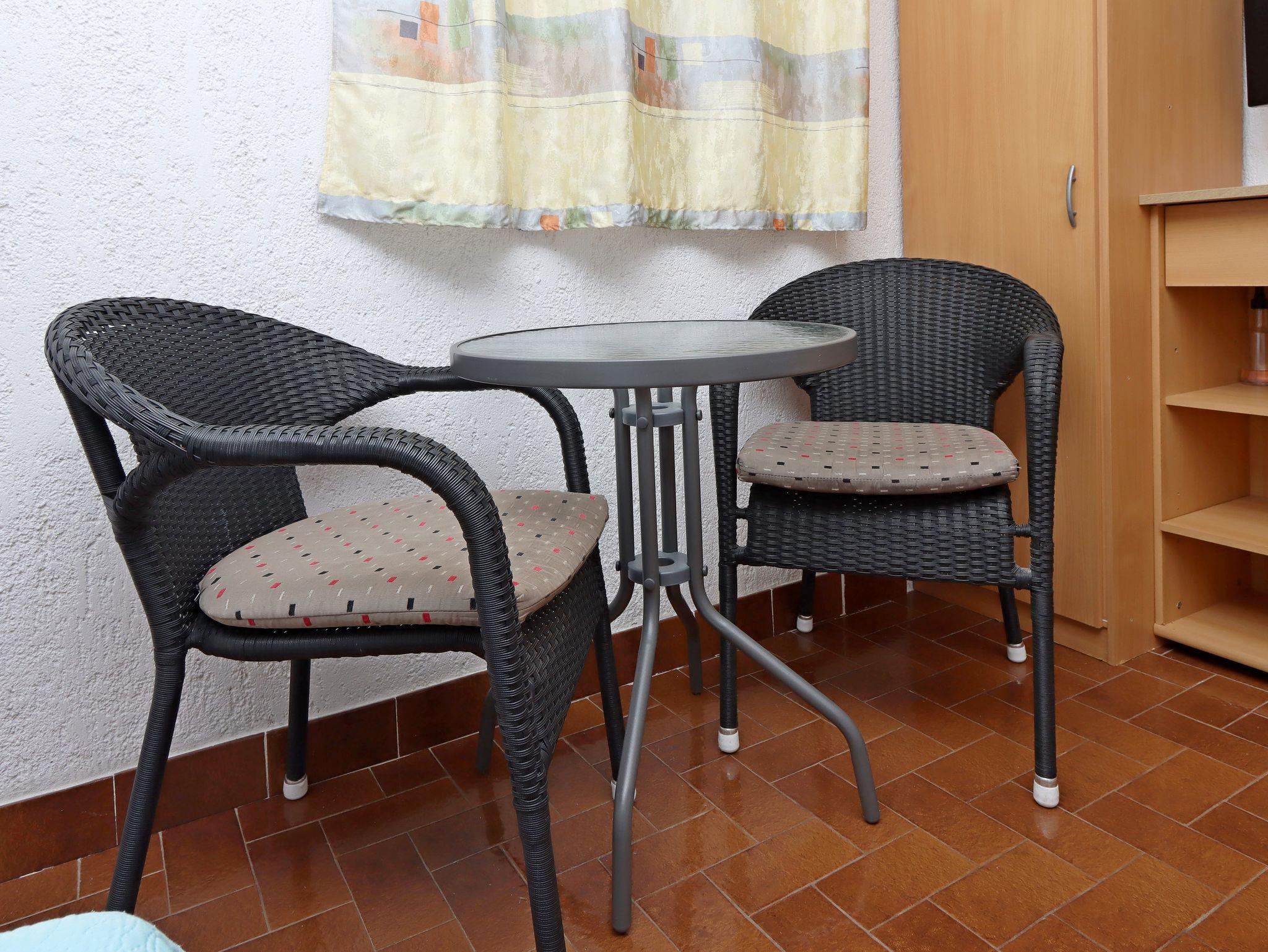 Studio bietet Platz für 2 Gäste. Die Betten sind in Schlafzimmern, die es 1 gibt, innerhalb einer Gesamtfläche von 18m2, angeordnet. Die Gäste haben eine eigene Terrasse zur Verfügung, auf der sie in warmen Sommernächten genießen können. Das Studio-Apartment bietet Meerblick. Es ist erlaubt, Speisen auf dem Gemeinschafts-Grill vorzubereiten. IM PREIS INBEGRIFFEN: Kurtaxe, Endreinigung, Klimatisierung, Parkplatz, Internet, Kinderbett, Föhn. VERBINDLICHE ZUSÄTZLICHE KOSTEN: Aufzahlung für Kurzaufenthalte (prozentualer Zuschlag pro Nächtigungsanzahl: 30% - 1, 20% - 2, 10% - 3). Die Verfügbarkeit zusätzlicher Dienstleistungen in Ihrem reservierten Termin und die Preise derselben (falls nicht aufgeführt) müssen im Voraus überprüft werden. Zusätzliche Dienstleistungen die in der Zahlungsaufforderung nicht aufgeführt sind werden direkt beim Vermieter bezahlt, angenommen der Gast nutzt auch diese.