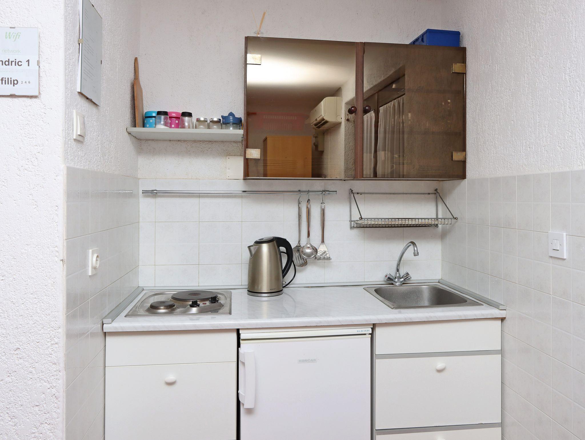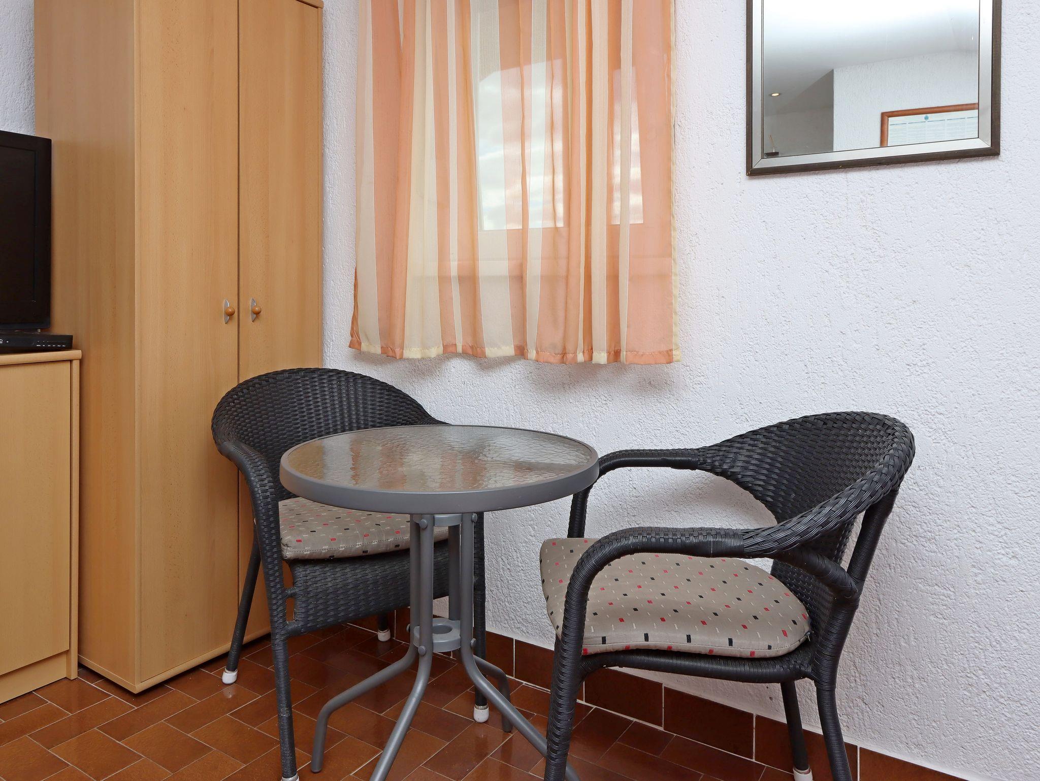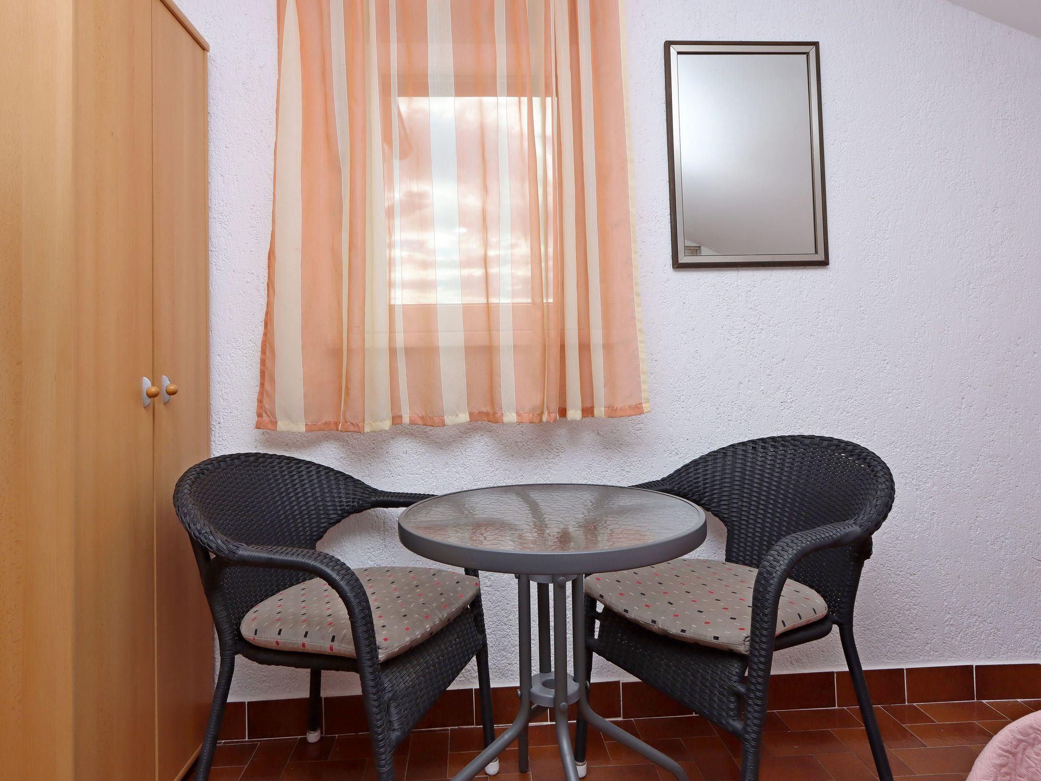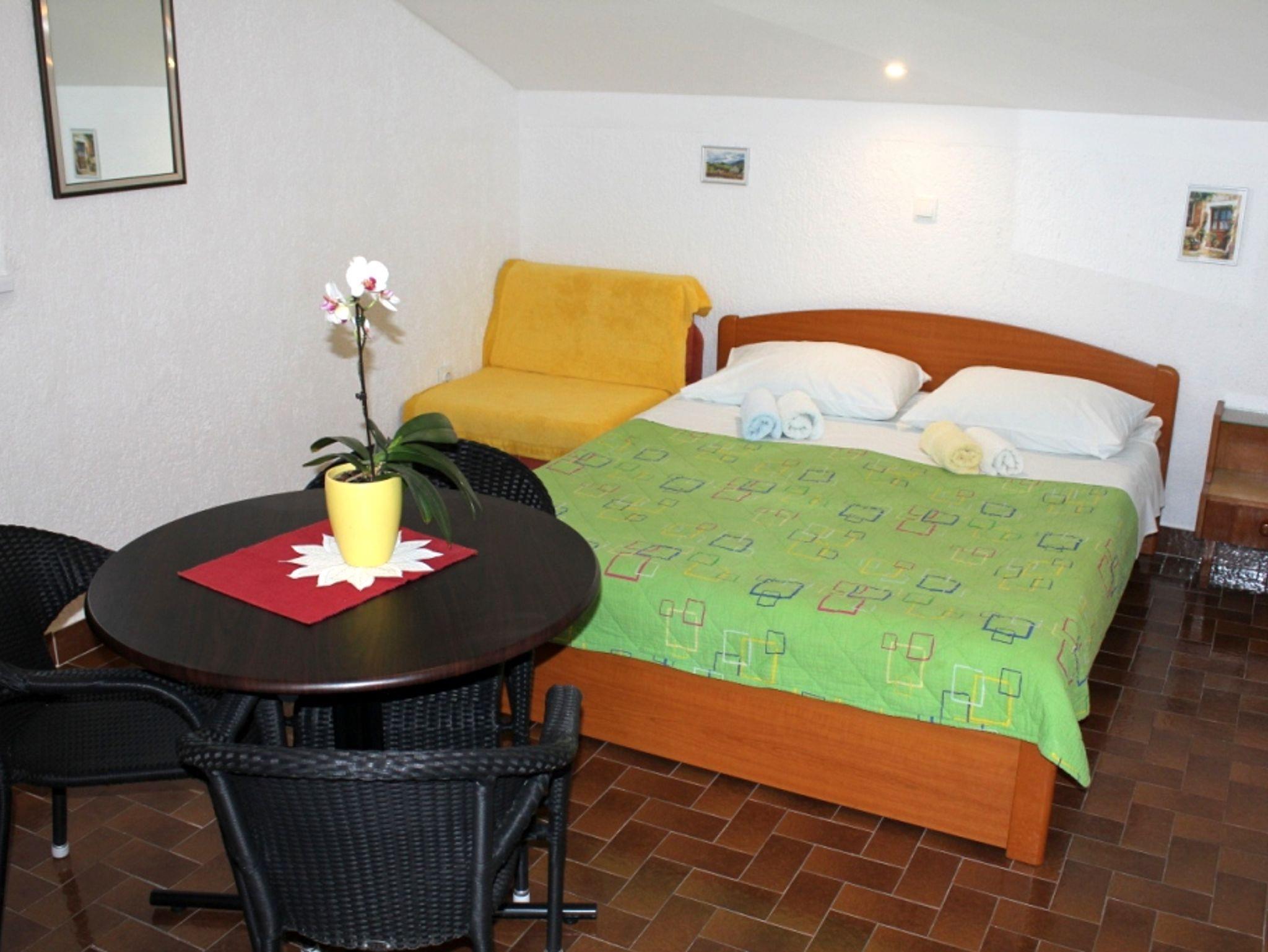 Studio bietet Platz für 2 Gäste. Die Betten sind in Schlafzimmern, die es 1 gibt, innerhalb einer Gesamtfläche von 18m2, angeordnet. Die Gäste haben eine eigene Terrasse zur Verfügung, auf der sie in warmen Sommernächten genießen können. Das Studio-Apartment bietet Meerblick. Es ist erlaubt, Speisen auf dem Gemeinschafts-Grill vorzubereiten. Durch die Terrasse der gebuchten Unterkunftseinheit gehen auch andere Gäste oder Vermieter. IM PREIS INBEGRIFFEN: Kurtaxe, Endreinigung, Klimatisierung, Parkplatz, Internet, Kinderbett, Föhn. VERBINDLICHE ZUSÄTZLICHE KOSTEN: Aufzahlung für Kurzaufenthalte (prozentualer Zuschlag pro Nächtigungsanzahl: 30% - 1, 20% - 2, 10% - 3). Die Verfügbarkeit zusätzlicher Dienstleistungen in Ihrem reservierten Termin und die Preise derselben (falls nicht aufgeführt) müssen im Voraus überprüft werden. Zusätzliche Dienstleistungen die in der Zahlungsaufforderung nicht aufgeführt sind werden direkt beim Vermieter bezahlt, angenommen der Gast nutzt auch diese.