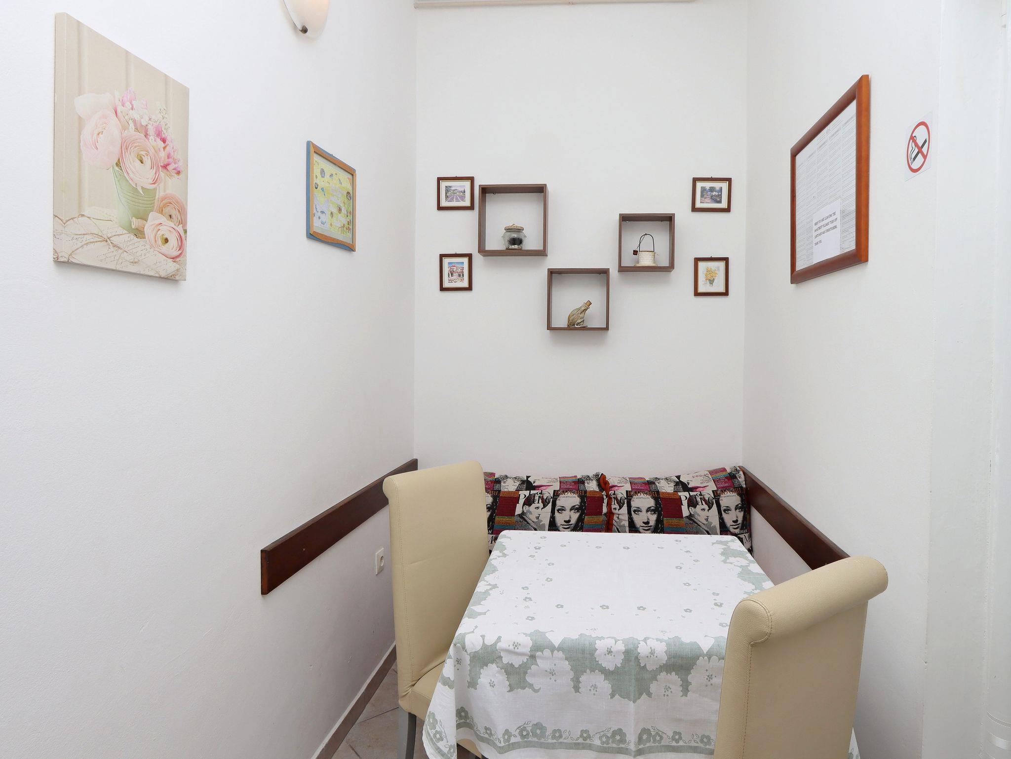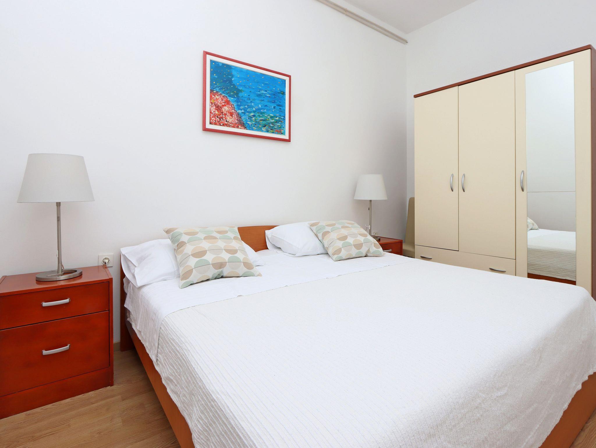 Ferienwohnung bietet Platz für 4 Gäste. Die Betten sind in Schlafzimmern, die es 2 gibt, innerhalb einer Gesamtfläche von 43m2, angeordnet. Die Gäste haben eine eigene Terrasse zur Verfügung, auf der sie in warmen Sommernächten genießen können. Es ist erlaubt, Speisen auf dem Gemeinschafts-Grill vorzubereiten. In der Unterkunftseinheit besteht die Möglichkeit des Mitbringens von Haustieren gegen Aufpreis. IM PREIS INBEGRIFFEN: Kurtaxe, Endreinigung, Klimatisierung, Parkplatz, Internet, Kinderbett, Föhn. VERBINDLICHE ZUSÄTZLICHE KOSTEN: Aufzahlung für Kurzaufenthalte (prozentualer Zuschlag pro Nächtigungsanzahl: 30% - 1, 20% - 2, 10% - 3). UNVERBINDLICHE ZUSÄTZLICHE KOSTEN: Haustiere (8,00 € pro Nacht). Die Verfügbarkeit zusätzlicher Dienstleistungen in Ihrem reservierten Termin und die Preise derselben (falls nicht aufgeführt) müssen im Voraus überprüft werden. Zusätzliche Dienstleistungen die in der Zahlungsaufforderung nicht aufgeführt sind werden direkt beim Vermieter bezahlt, angenommen der Gast nutzt auch diese.