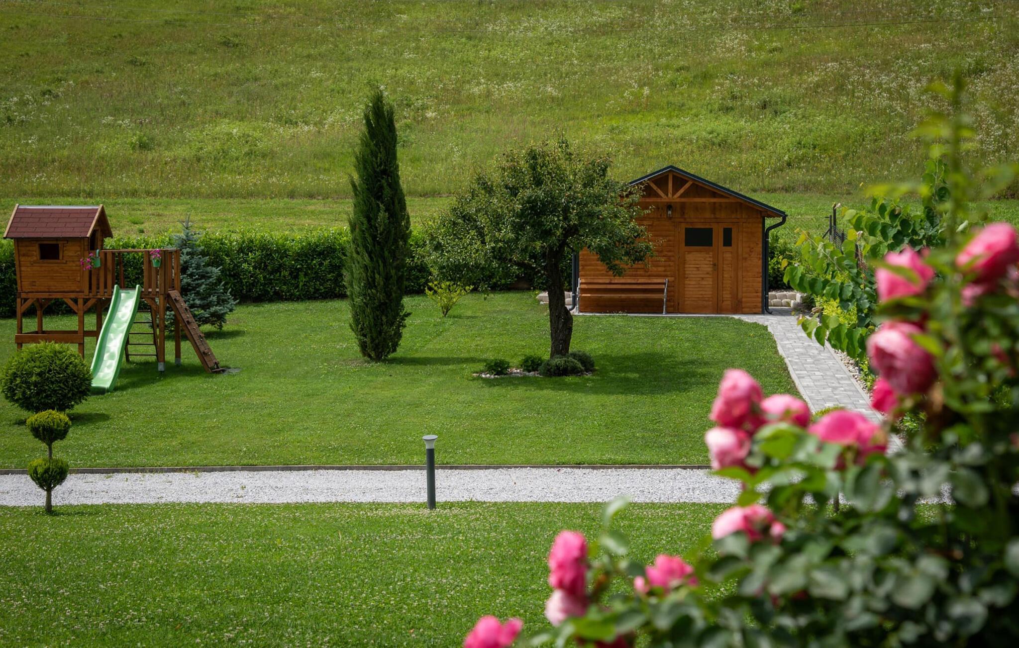 Nyd en harmonisk pause med familien i dette komfortable feriehus med pool og legeplads.