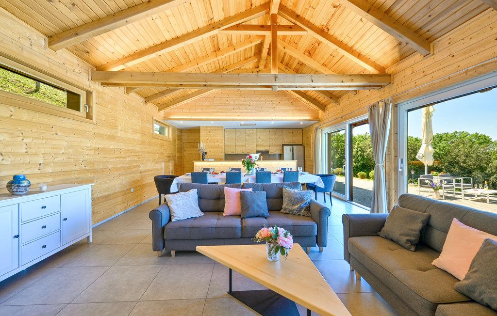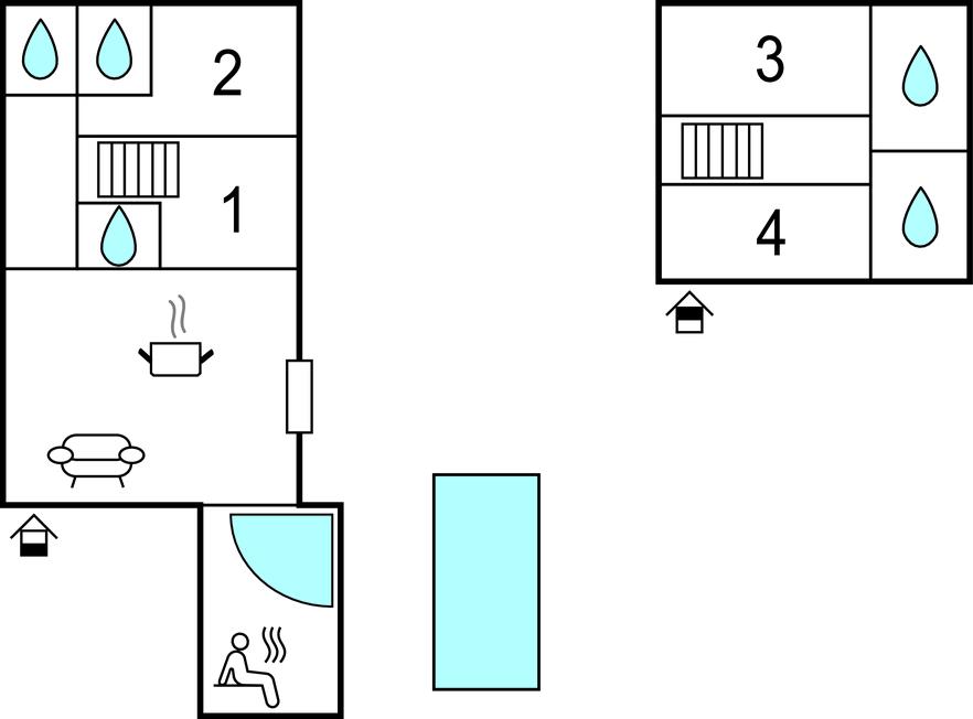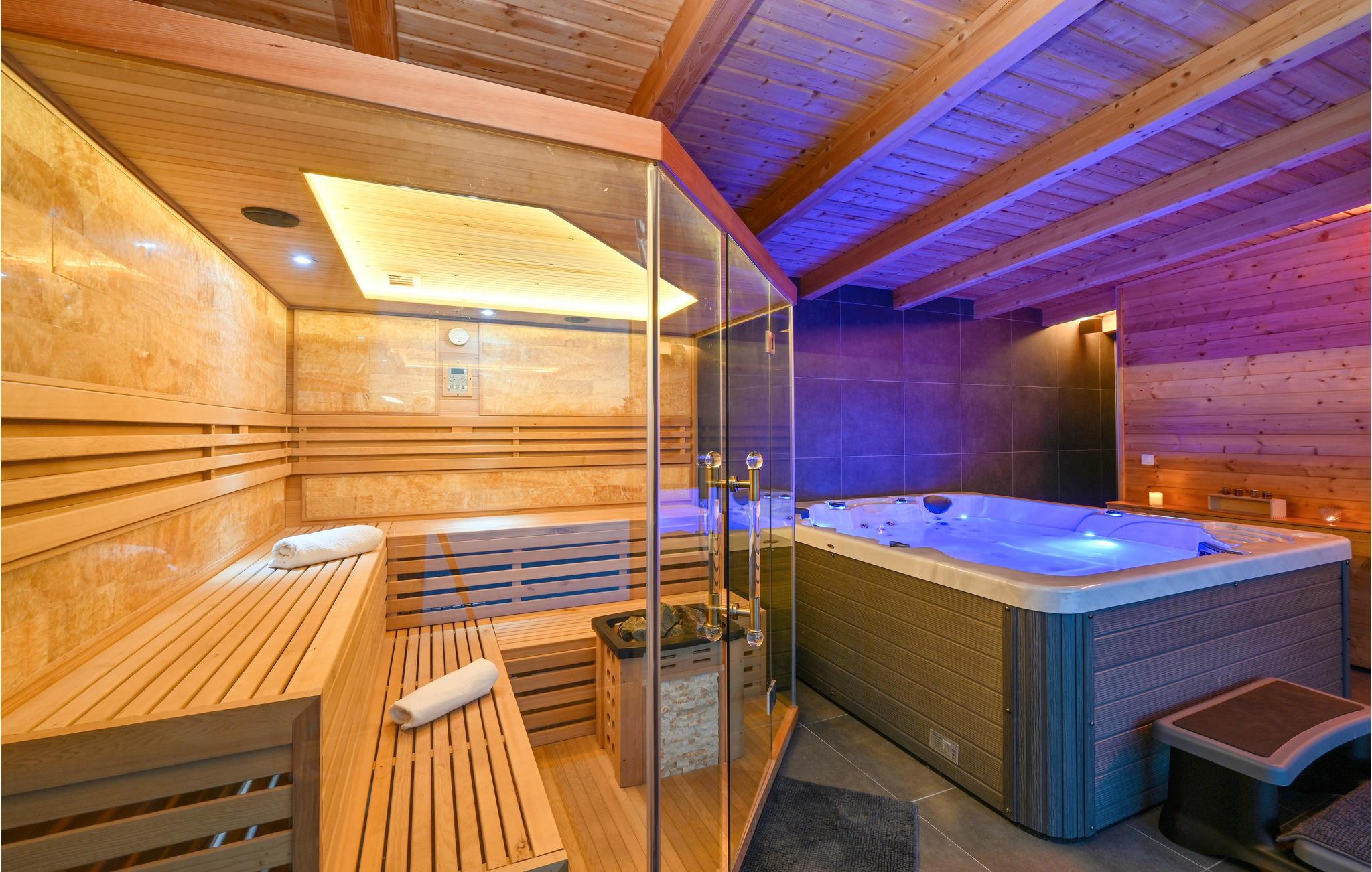 Ved siden af huset er en stor pool med vandmassage og en terrasse med solstole, hvor I kan slappe af med en god bog eller en forfriskende cocktail. Poolen kan benyttes mellem 1. juni og 1. oktober. Resten af året har I adgan til wellnessområdet med sauna og boblebad, som er lukket i sommerhalvåret.
