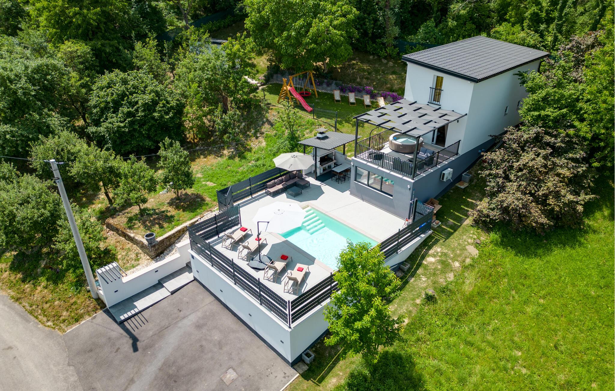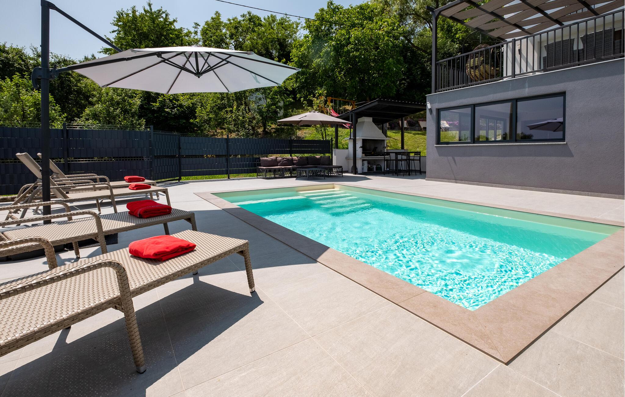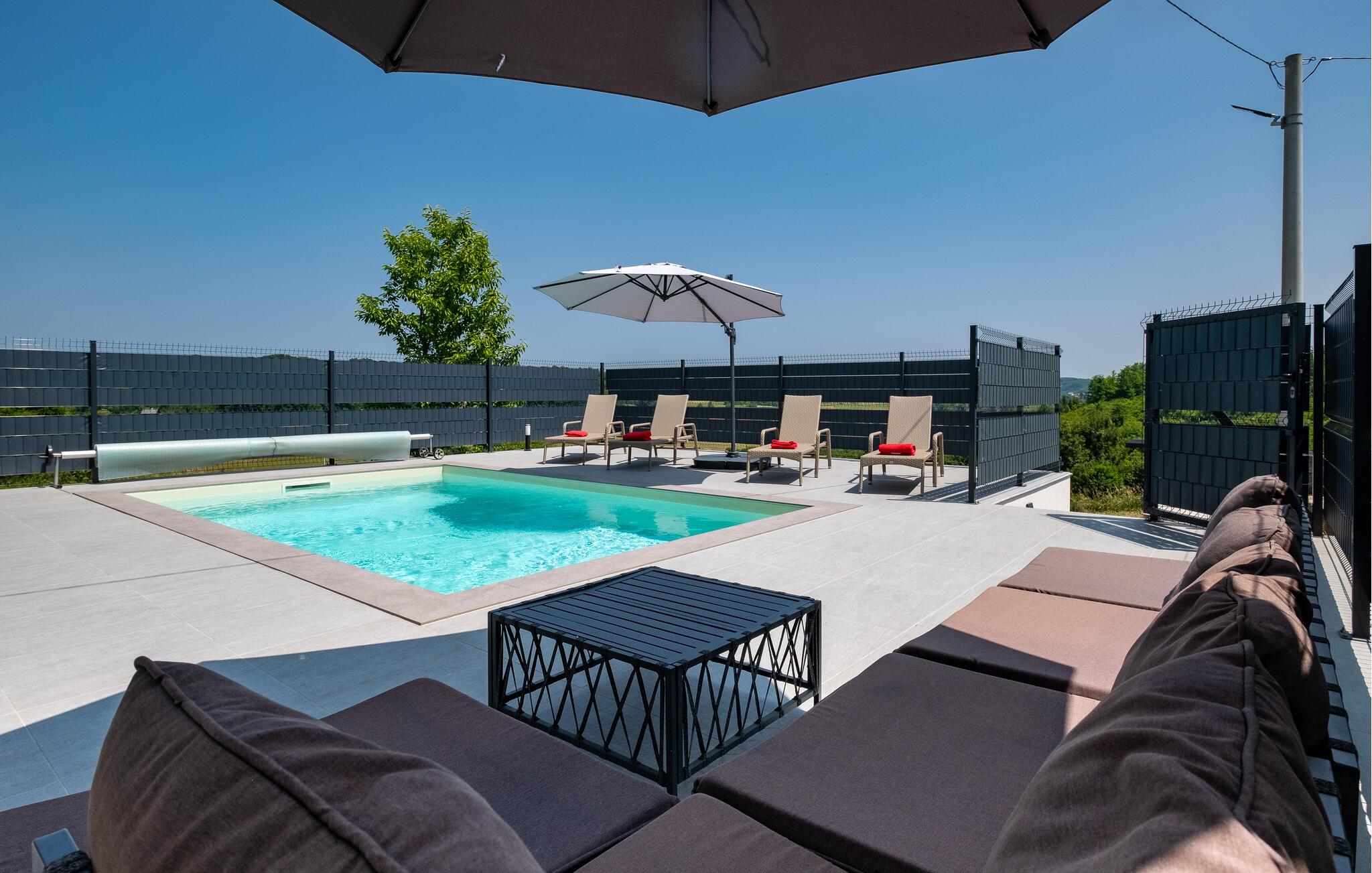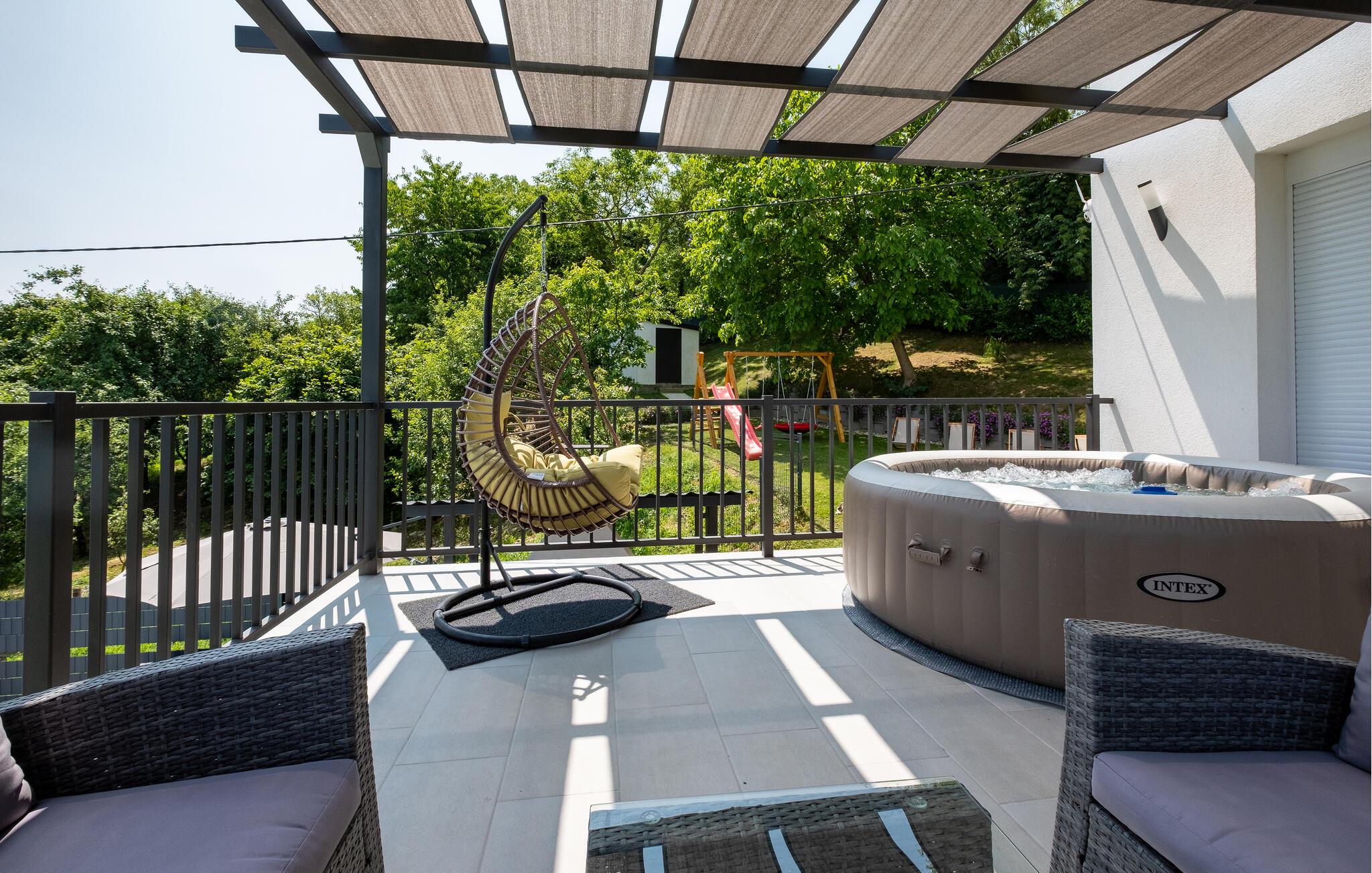 Det rummelige udendørsområde lover lange timer under den kroatiske sol. Begynd dagene med morgenmad på terrassen, snup en frisk dukkert i poolen eller slap af på liggestolene i den velplejede have. Forkæl jer selv med en aperitif i den indbydende lounge på balkonen, lad jeres blik vandre over de idylliske omgivelser og organiser stemningsfulde grillaftener.