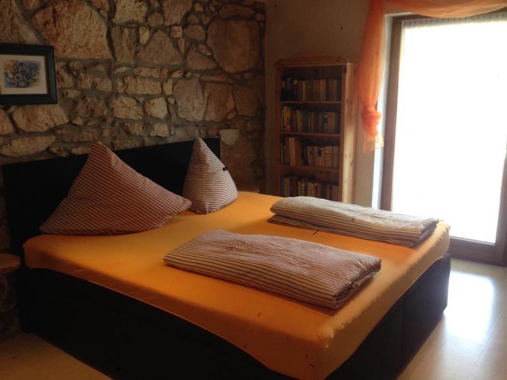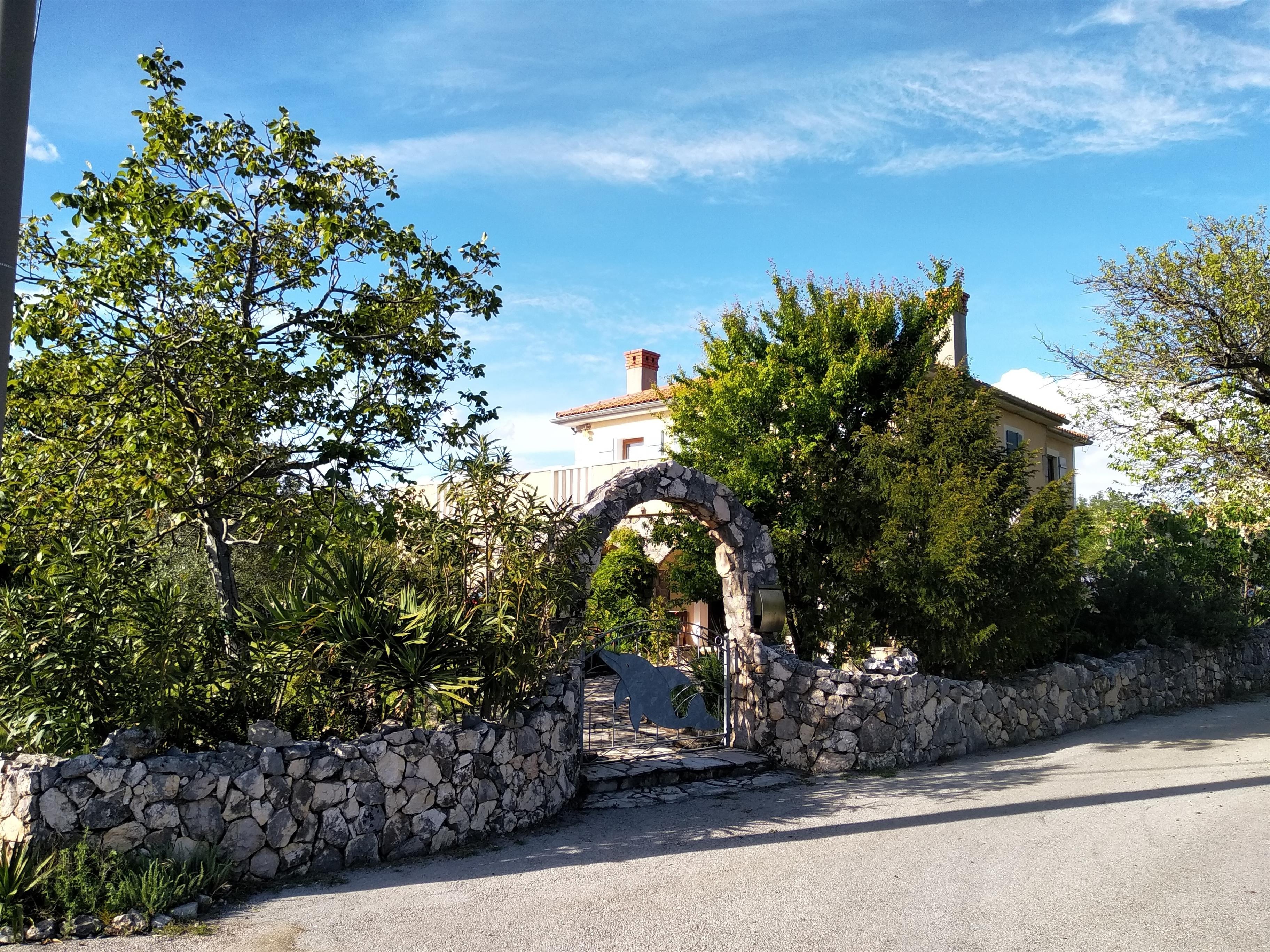 Die renovierte Steinhaus Villa Mirovera befindet sich in dem Ort Kras (in Kras ist es kras). Kras ein ruhige Dorf mitten auf der Insel Krk. Im OG wohnen die Eigentümer ab und an.