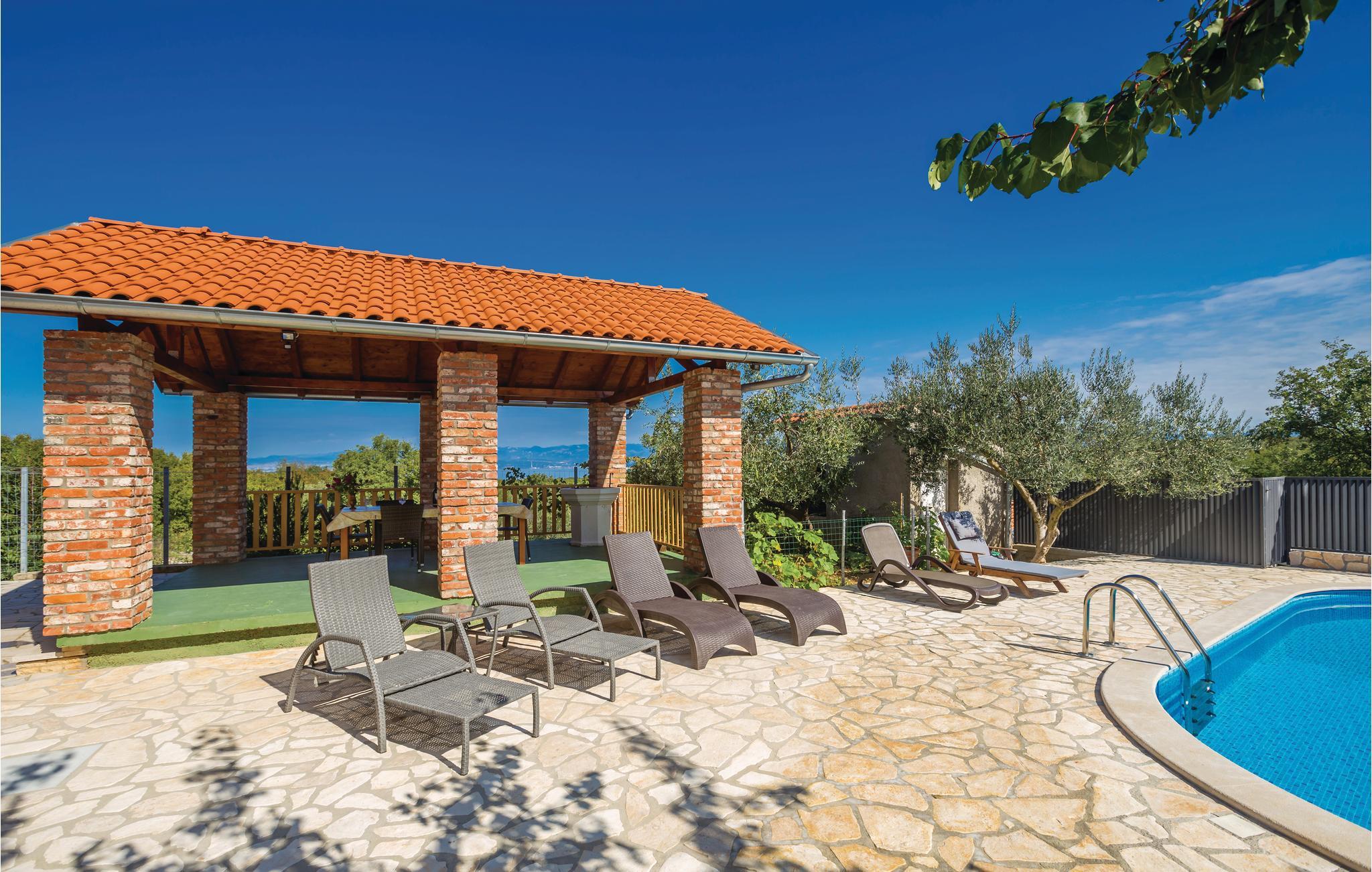 I den maleriske by Poljica ligger denne hyggelige og flotte halvdel af et dobbelthus. Her er I omgivet af skøn natur. Feriehuset har tre etager og er dermed velegnet til familier, der vil holde ferie sammen, men samtidig sætter pris på privatsfære. Nyd de lange og varme sommerdage i den store have, hvor I har en grillplads, en solrig terrasse med pavillon og en udendørspool. Fra feriehuset har I en skøn udsigt over landskabet og delvi også over havet. De første strande ligger ca. 2000 m herfra. Spændende begivenheder og natteliv finder I om sommeren i byen Krk. Selvfølgelig er der også gode restauranter på øen. Mod betaling kan I få en plads til en båd - aftal med husejeren.