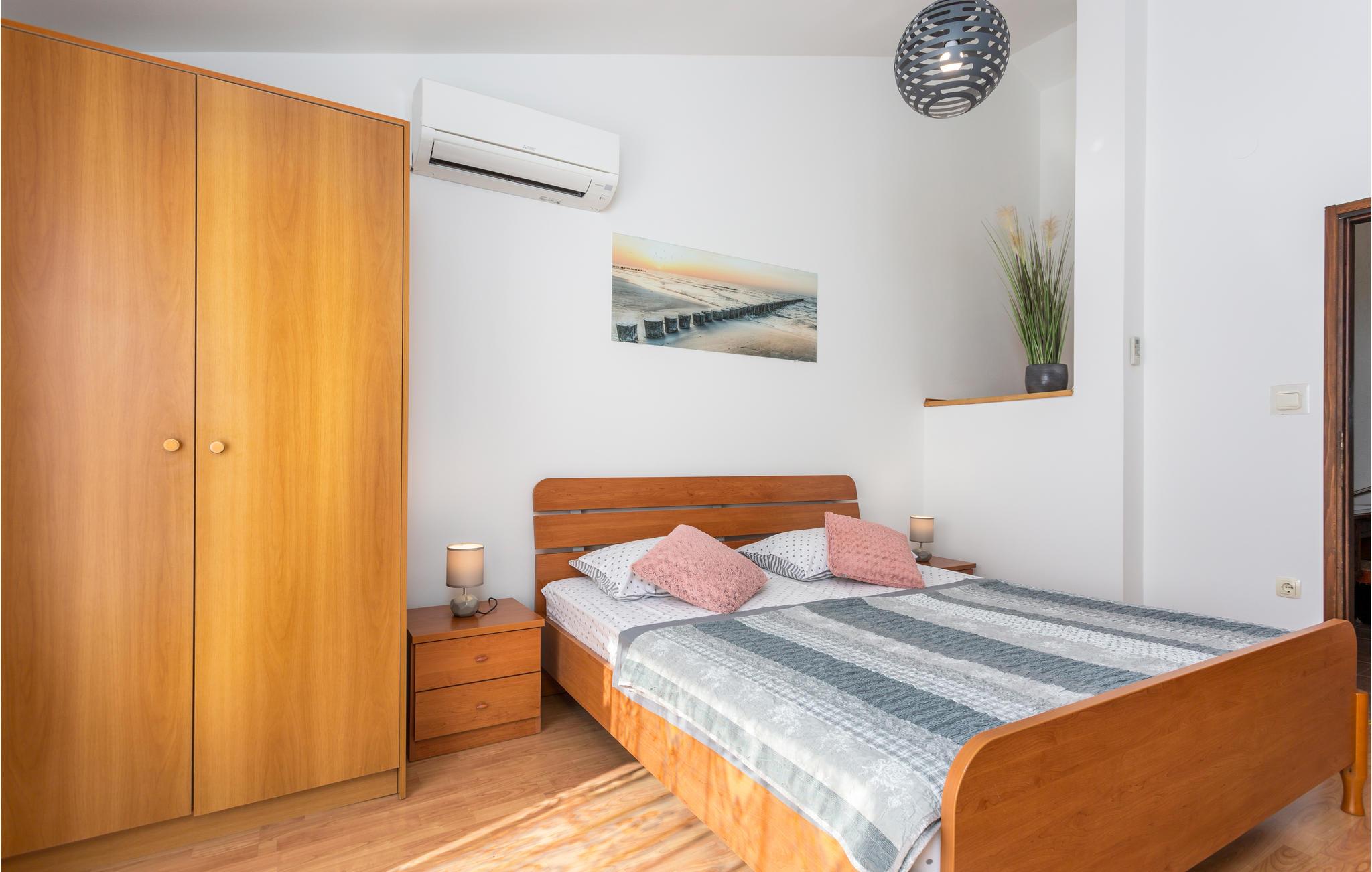 Her venter der jer et hyggeligt feriehus med pool, i et roligt boligkvarter i byen Punat. Indvendigt består huset i stueplan af køkkenalrum, et badeværelse samt terrasse, mens der på første sal ligger tre soveværelser med to badebaværelser og to altaner. På den indhegnede grund ligger pool og faciliteter til solbadning og grill. Det tager kun få minutter at gå ned til stranden og til bymidten. Her er det let at finde en god restaurant hvor man kan nyde de lokale specialiteter og vine. De særligt smukke strande ved Stara Baška, kan nås på få minutter i bil og er bestemt en udflugt værd.
