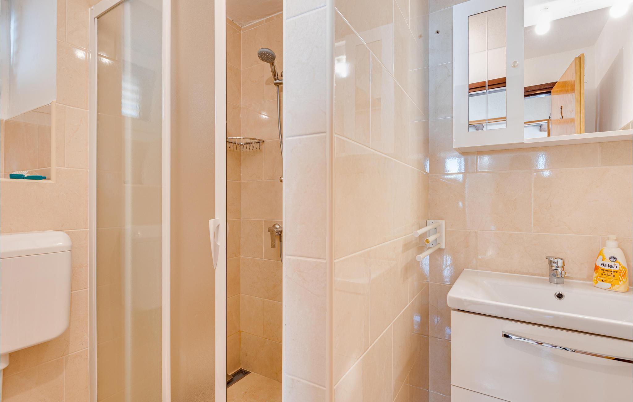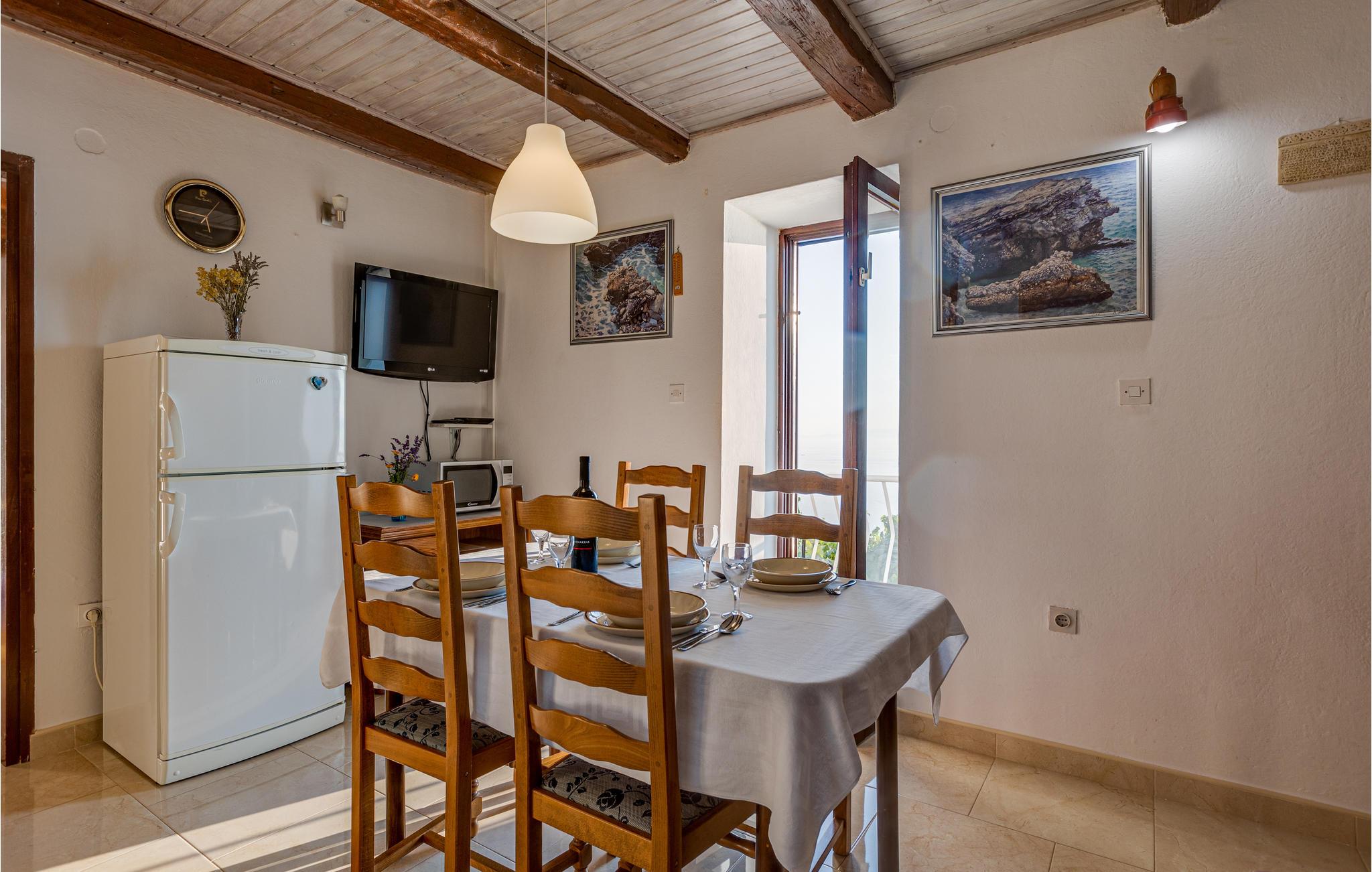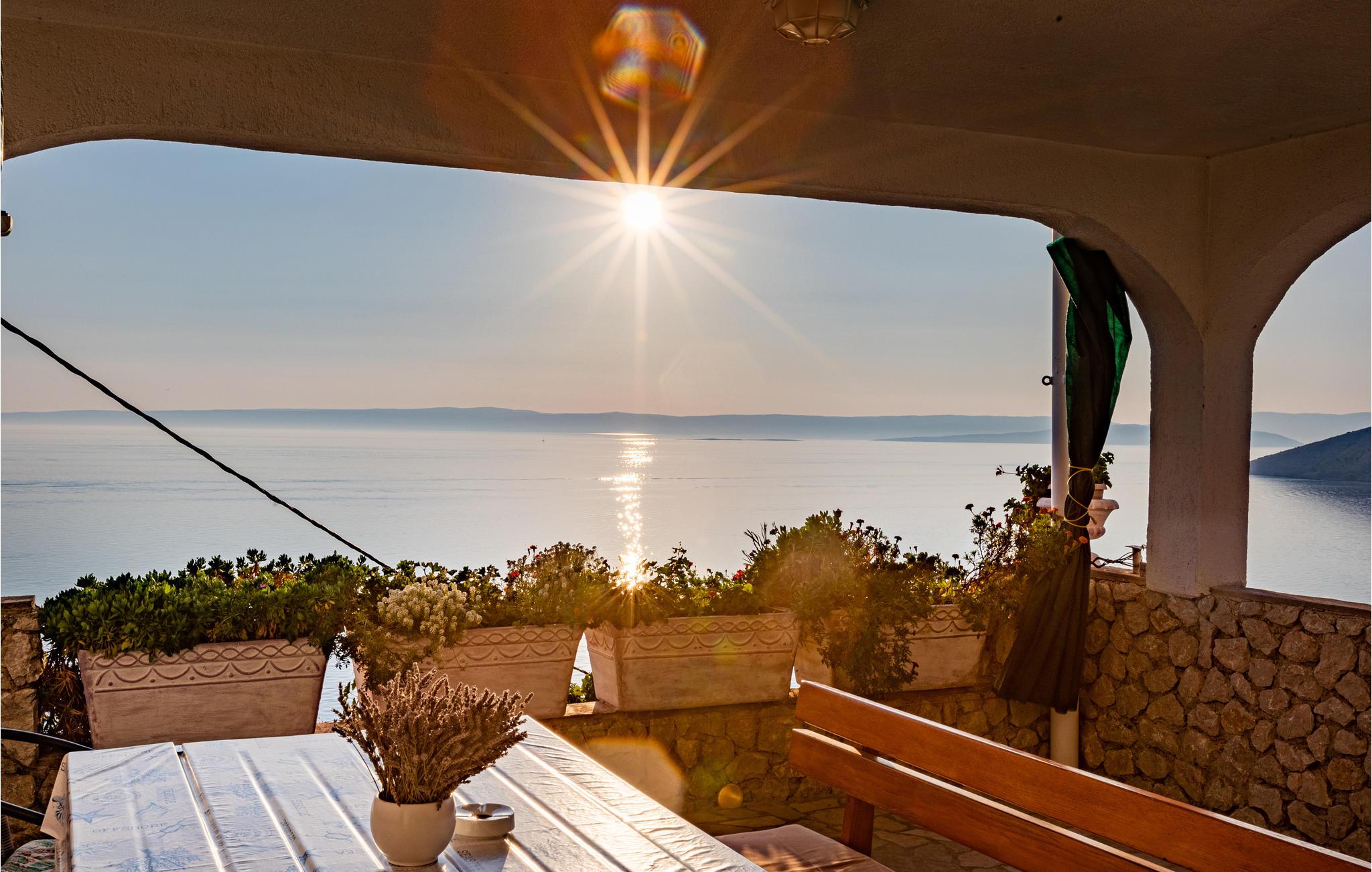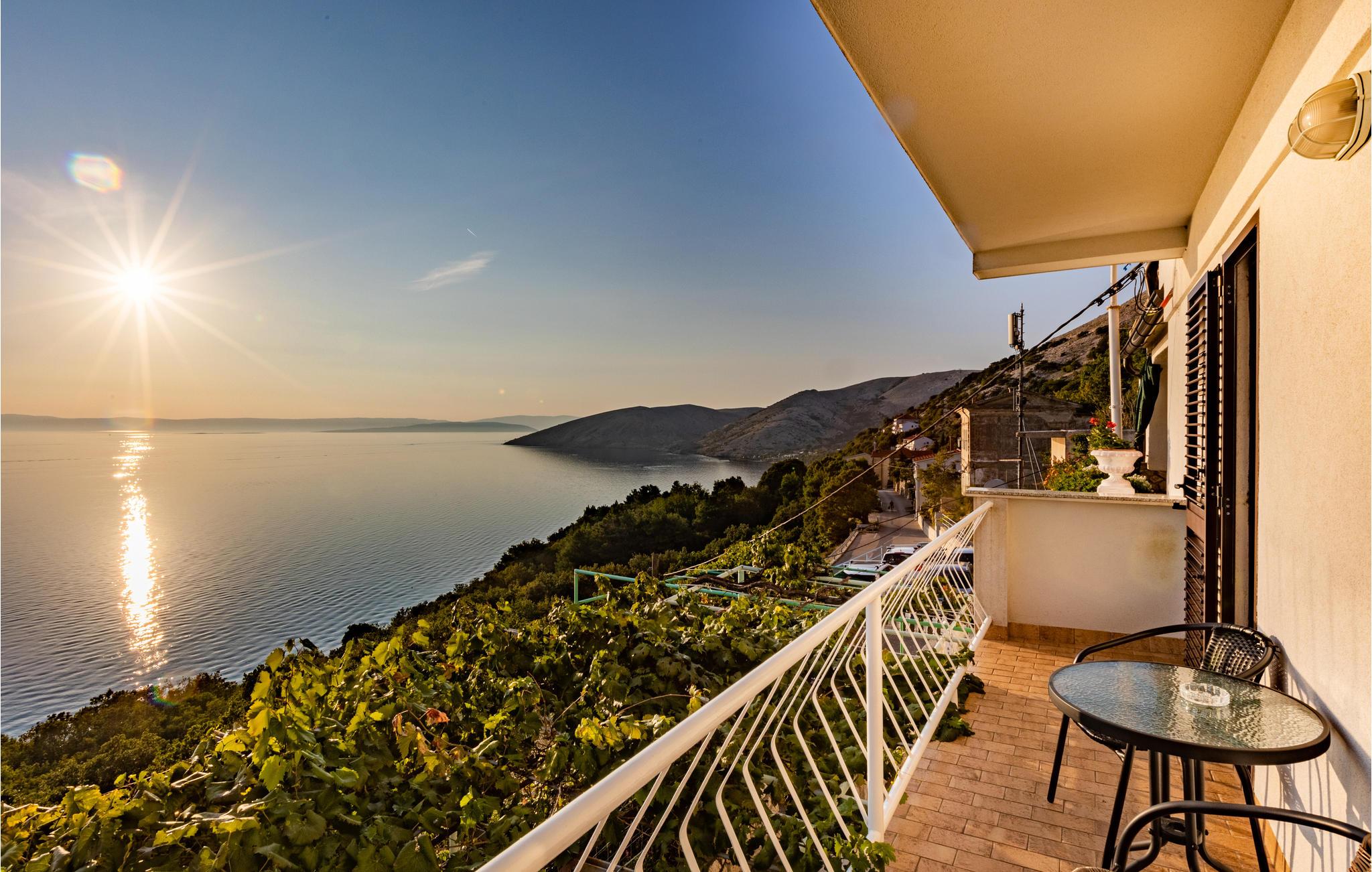 I den lille ferieby Stara Baška, der ligger på den solrige ø Krk, ligger denne ferielejlighed på første sal i en privat ejendom. Her kan I lade jer fortrylle af den smukke panoramaudsigt når I slapper af på balkonen. På den overdækkede terrasse med grill, kan I lave lækker mad over gløderne. Stara Baška er kendt for sine skønne strande, en af de smukkeste ligger ikke langt fra huset. Nyd de smukke landskaber på øen Krk med pragtfulde udsigtspunkter over havet, mulighed for at dyrke mange former for udendørs sport, aktiviteter og talrige autentiske spisesteder, hvor I kan smage retter, lavet helt efter traditionsrige opskrifter.