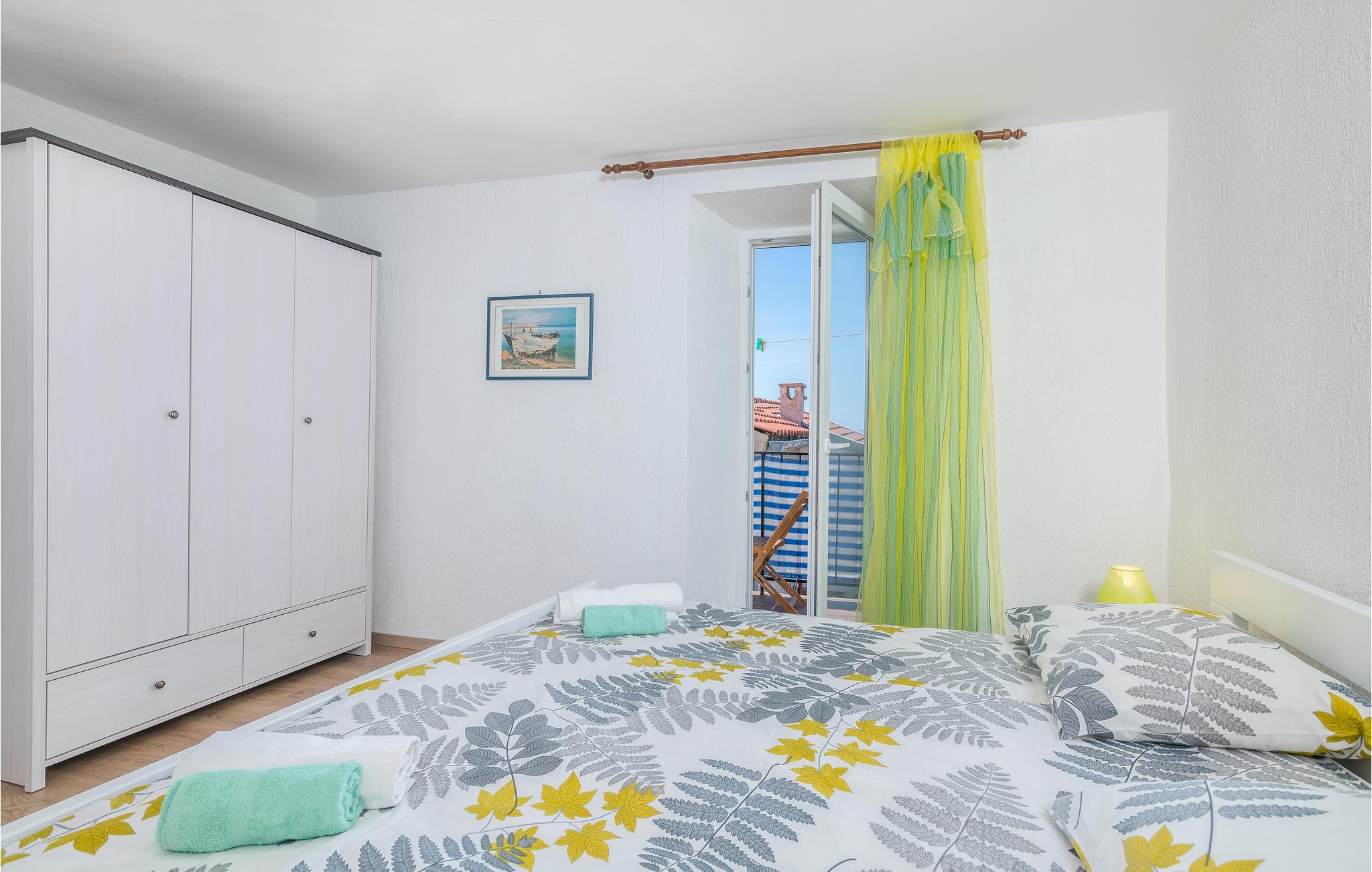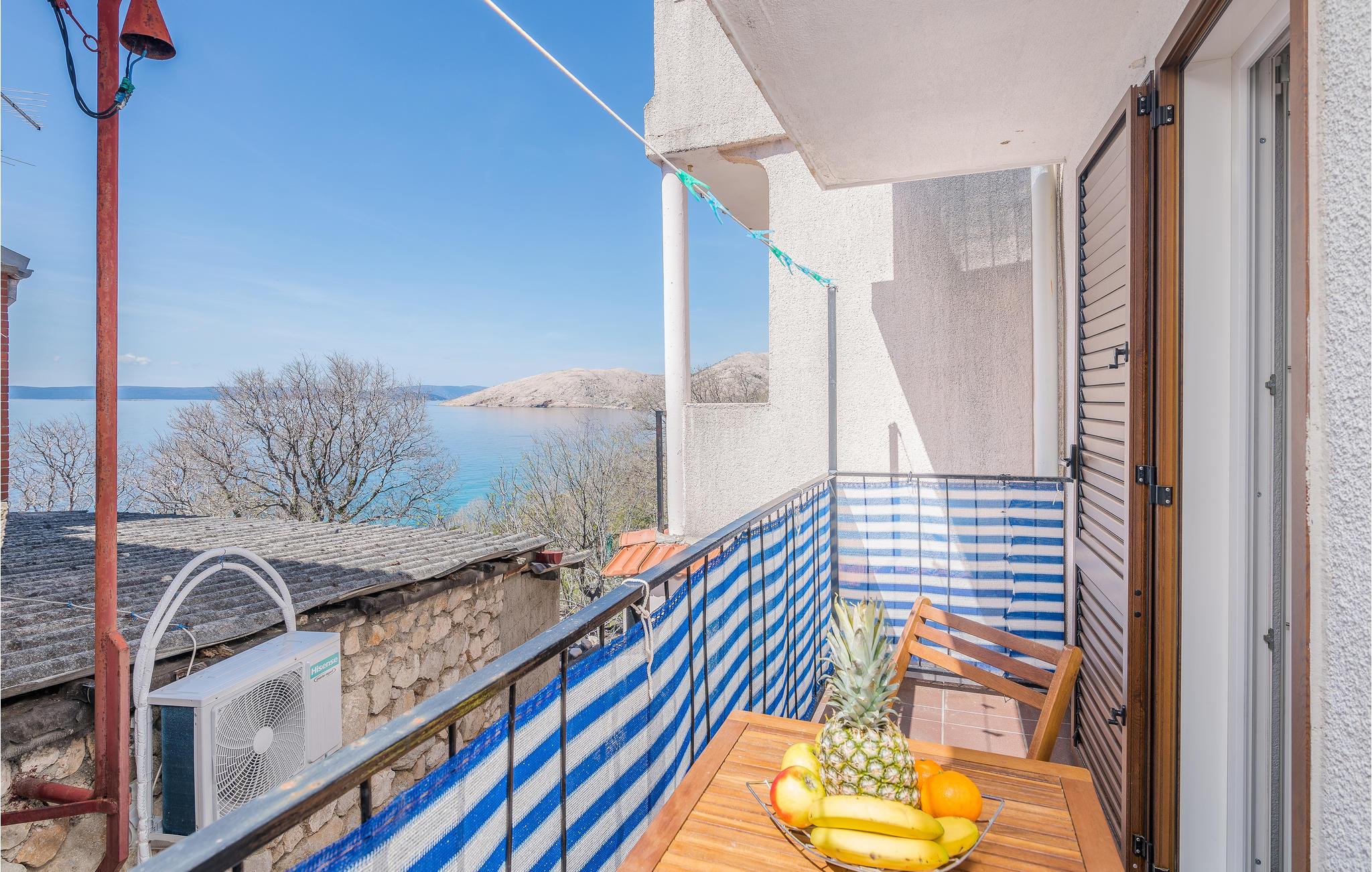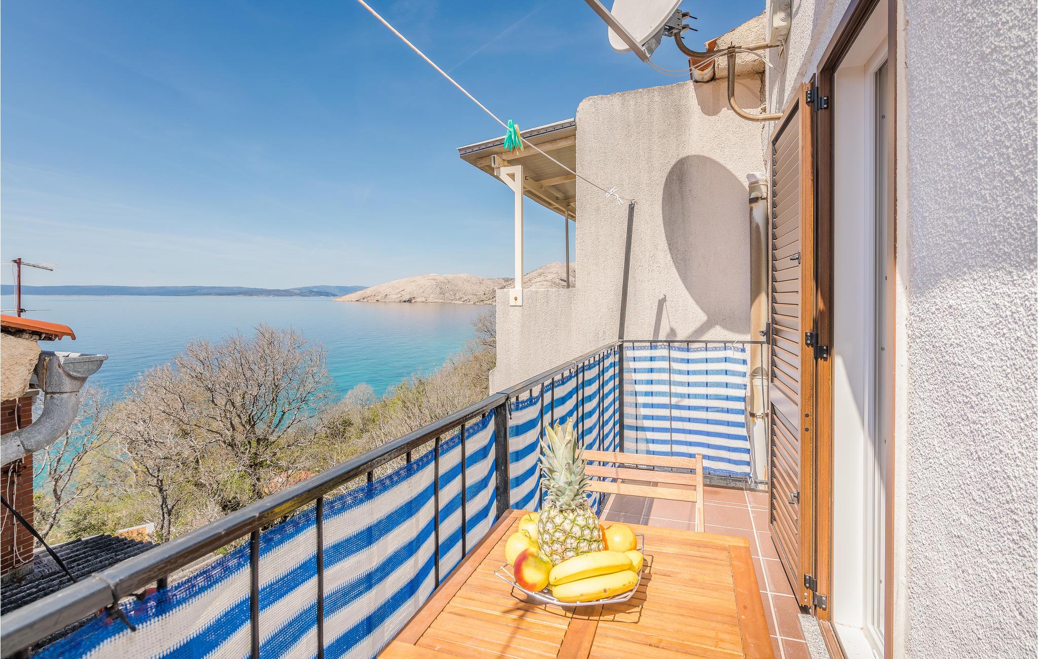Hold en uforglemmelig ferie ved havet i Stara Baska på øen Krk. Dette enkelt og praktisk indrettede rækkehus, fordeler sig på tre etager, der er forbundet med indendørs vindeltrappe. I stueplan og på første sal er der soveværelse og badeværelse. På anden sal ligger stuen i åben forbindelse med stuen og et gæstetoilet. På hver etage er der terrasse hvorfra der er en skøn udsigt over havet. I stueplan, på husets anden siden og med separat indgang, er der en konoba med en kamin, konoba er et specielt kroatisk begreb som kaldes taverne andre steder. I Baska er der mange butikker og restauranter. Parkeringsplads no. to mod betaling.