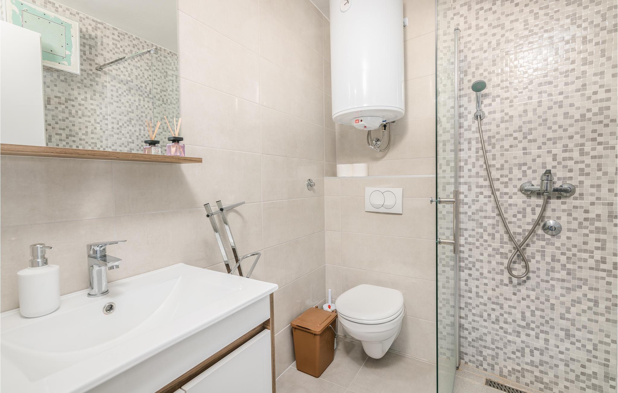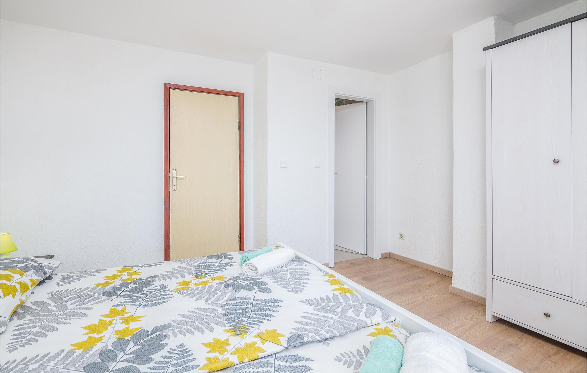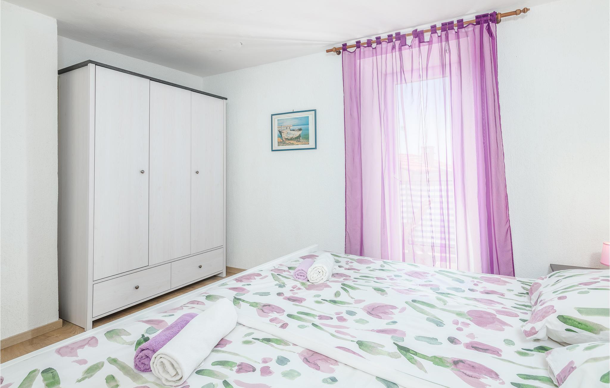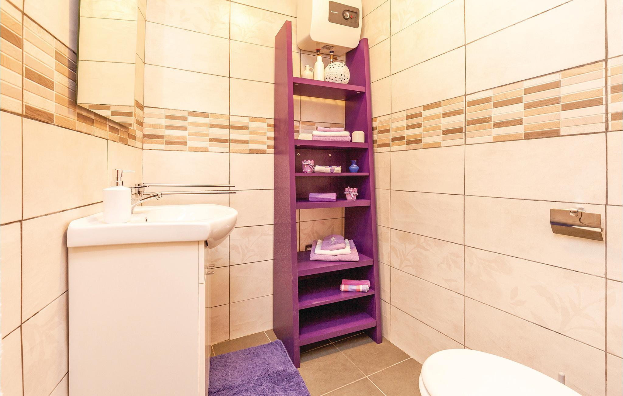 Hold en uforglemmelig ferie ved havet i Stara Baska på øen Krk. Dette enkelt og praktisk indrettede rækkehus, fordeler sig på tre etager, der er forbundet med indendørs vindeltrappe. I stueplan og på første sal er der soveværelse og badeværelse. På anden sal ligger stuen i åben forbindelse med stuen og et gæstetoilet. På hver etage er der terrasse hvorfra der er en skøn udsigt over havet. I stueplan, på husets anden siden og med separat indgang, er der en konoba med en kamin, konoba er et specielt kroatisk begreb som kaldes taverne andre steder. I Baska er der mange butikker og restauranter. Parkeringsplads no. to mod betaling.