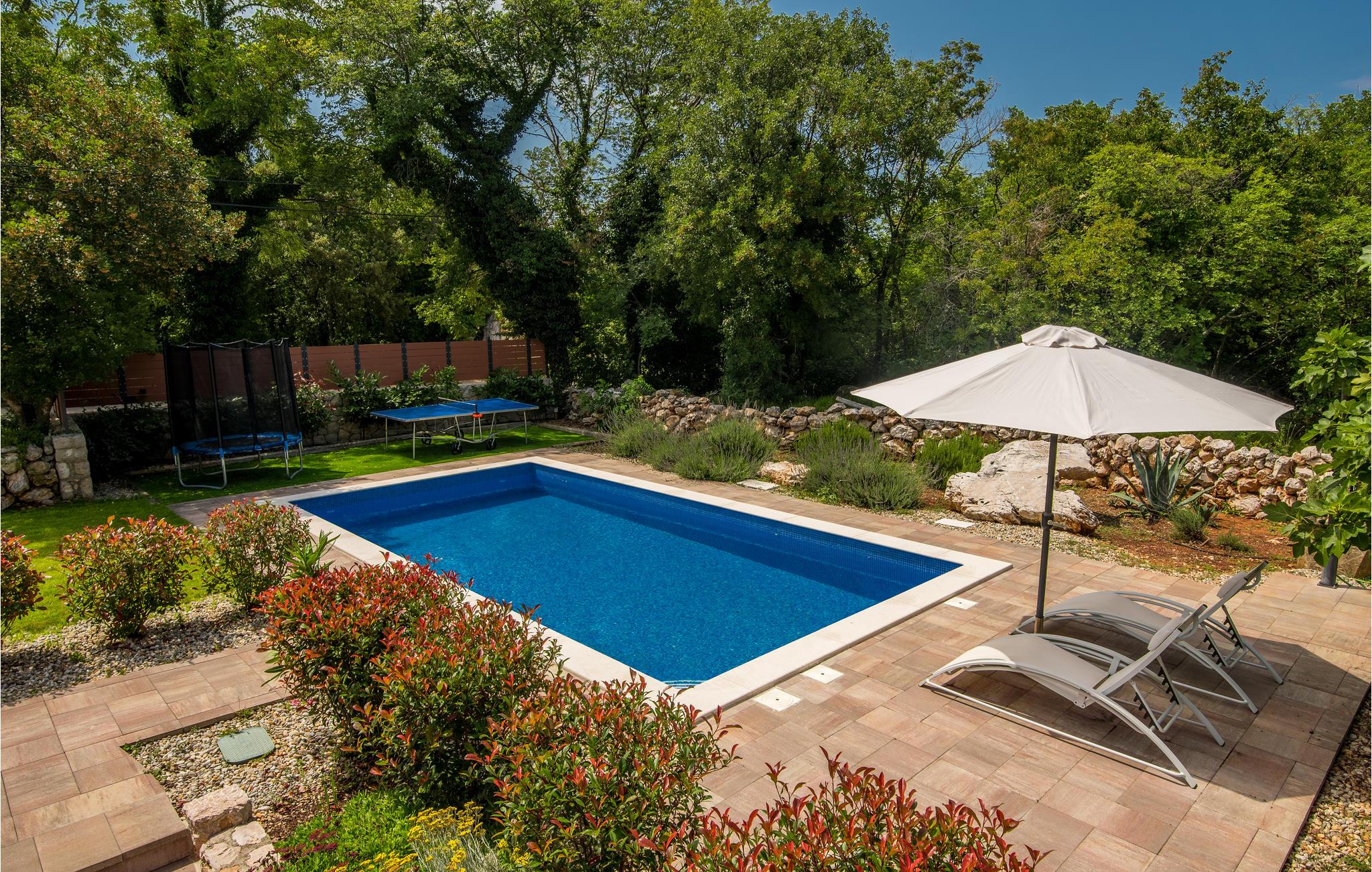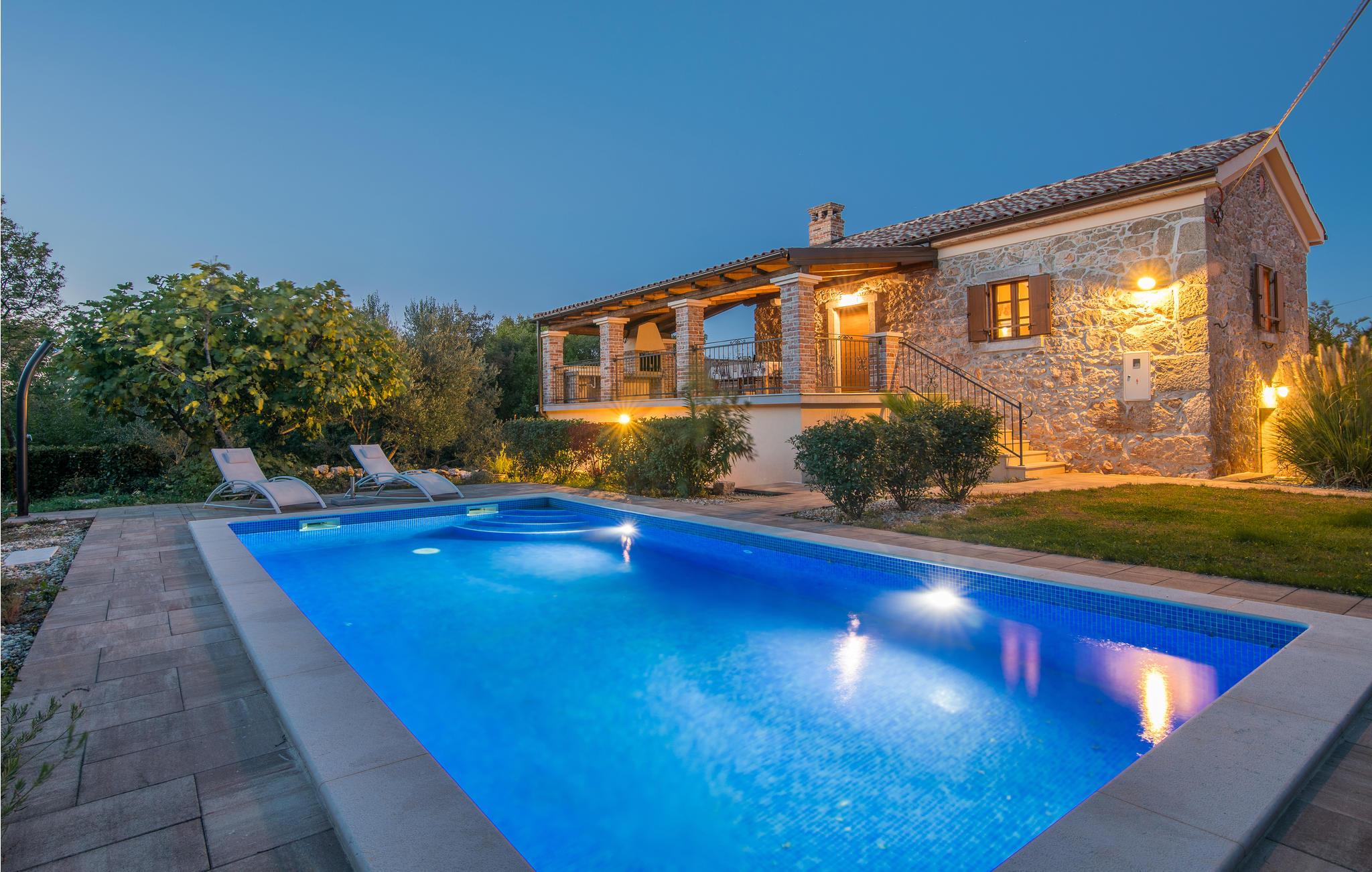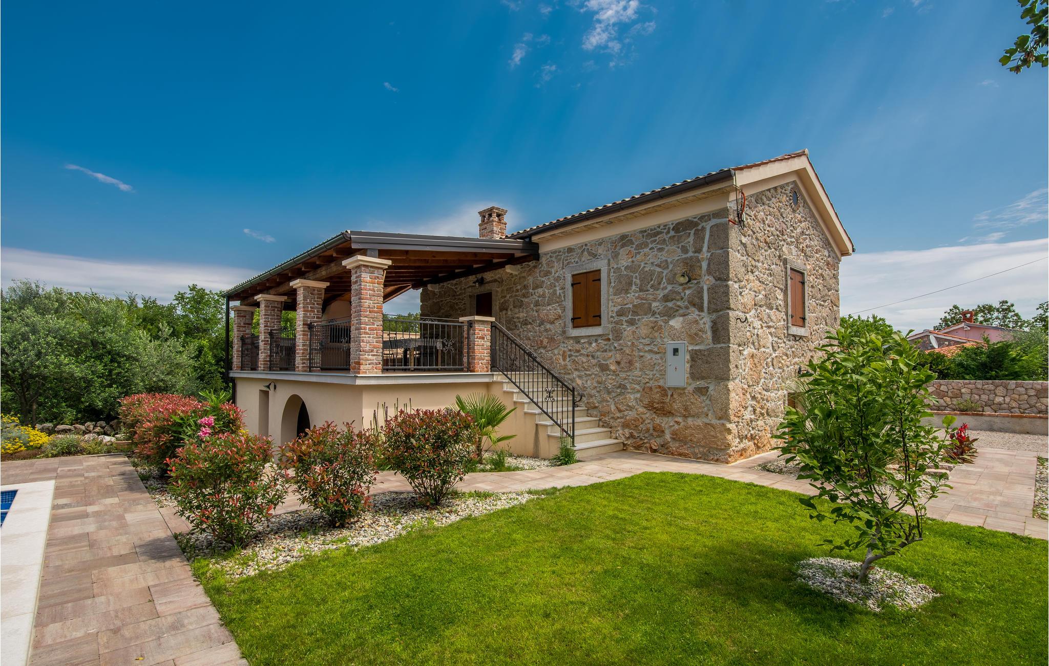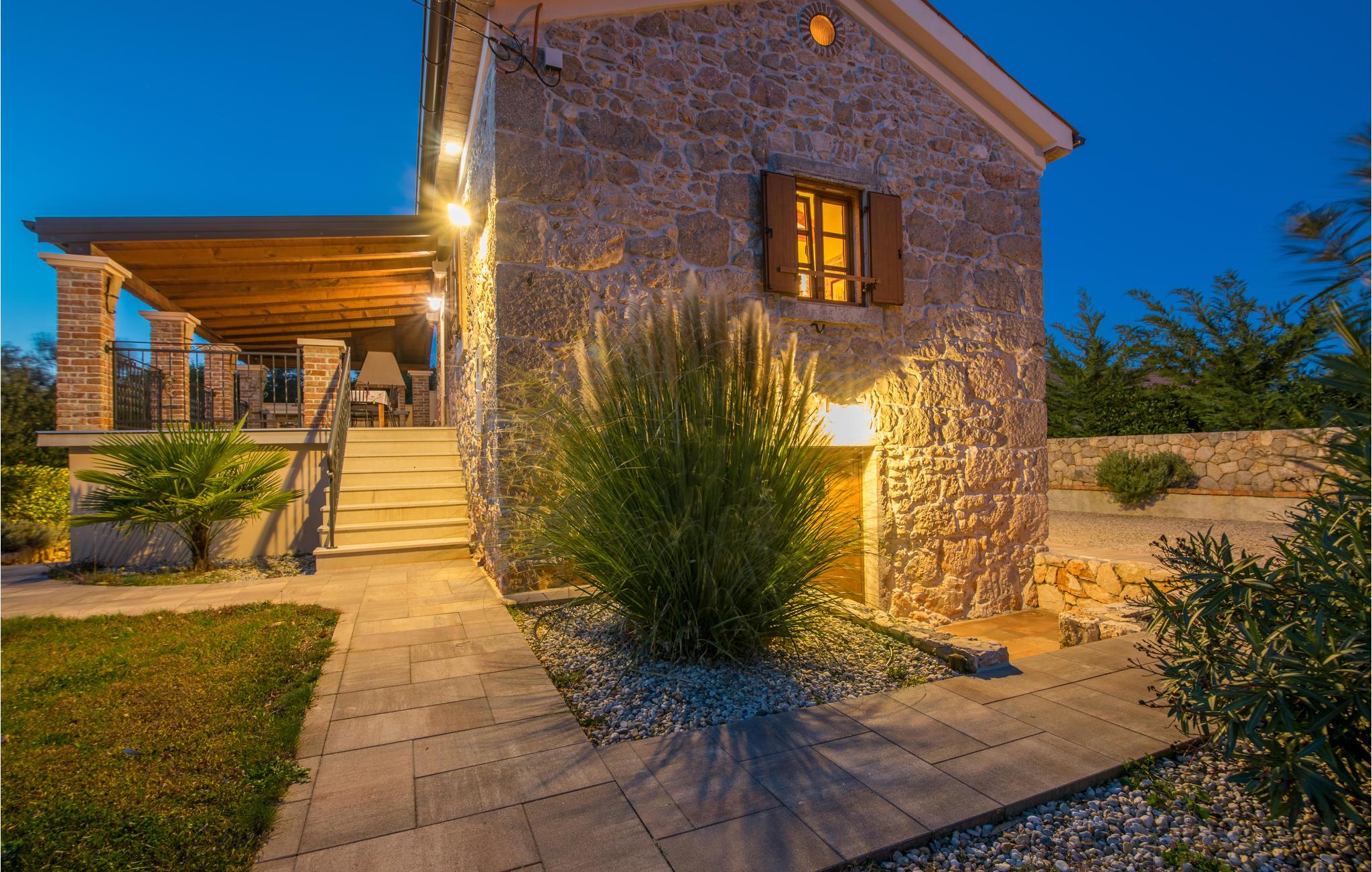 Dette skønne stenhus ligger i en lille landsby i det indre af Krk. Det er meget ekskvisit indrettet og byder på al den komfort, I kunne have brug for for at holde en afslappende ferie. I huset hersker der en behagelig og varm atmosfære. I stueetagen er der to soveværelser, det rummelige boligområde med udgang til den store og overdækkede terrasse indtager første salen. Terrassen inviterer til lækre aftensmåltider i dejlig selskab, mens I nyder udsigten over haven, poolen og jeres legende børn. I bil er I hurtigt i Šilo, Vrbnik, Malinska og byen Krk, hvor der om sommeren er mange kulturelle arrangementer såvel som et livligt natteliv. Opdag stranden med helbredende mudder i Klimno og bedårende gemte bugter på Krk.