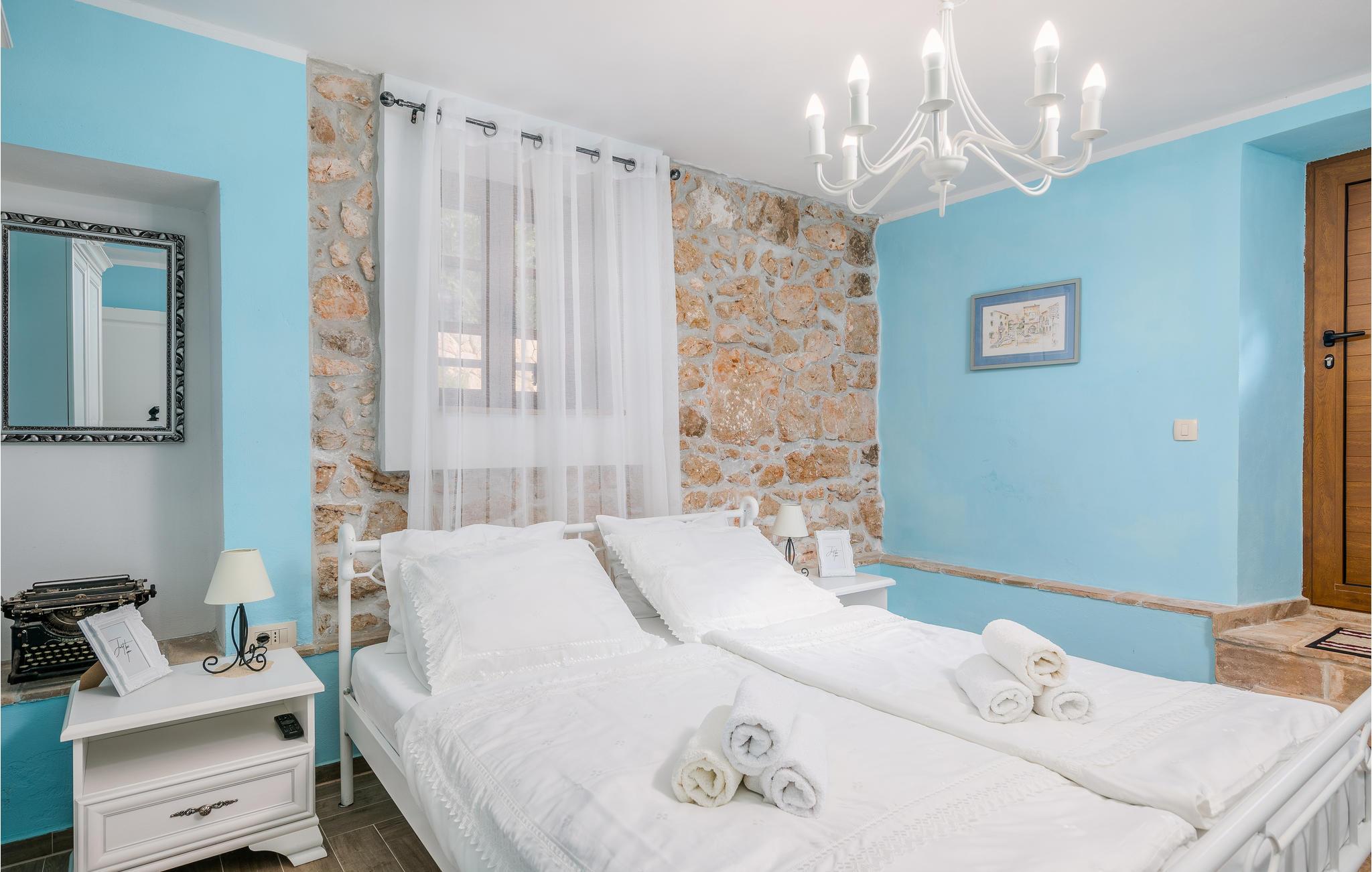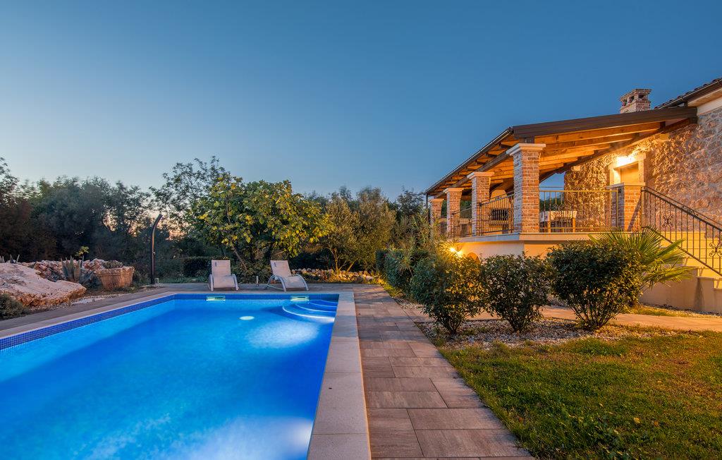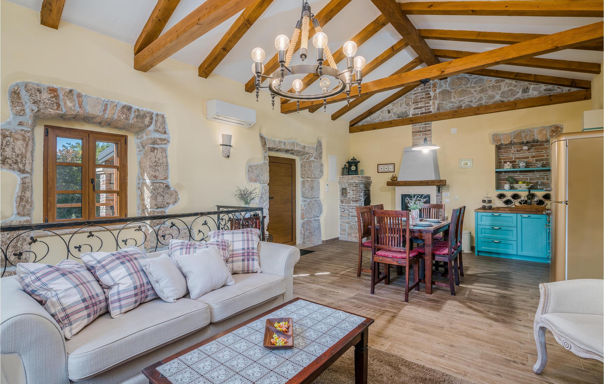 Dette skønne stenhus ligger i en lille landsby i det indre af Krk. Det er meget ekskvisit indrettet og byder på al den komfort, I kunne have brug for for at holde en afslappende ferie. I huset hersker der en behagelig og varm atmosfære. I stueetagen er der to soveværelser, det rummelige boligområde med udgang til den store og overdækkede terrasse indtager første salen. Terrassen inviterer til lækre aftensmåltider i dejlig selskab, mens I nyder udsigten over haven, poolen og jeres legende børn. I bil er I hurtigt i Šilo, Vrbnik, Malinska og byen Krk, hvor der om sommeren er mange kulturelle arrangementer såvel som et livligt natteliv. Opdag stranden med helbredende mudder i Klimno og bedårende gemte bugter på Krk.