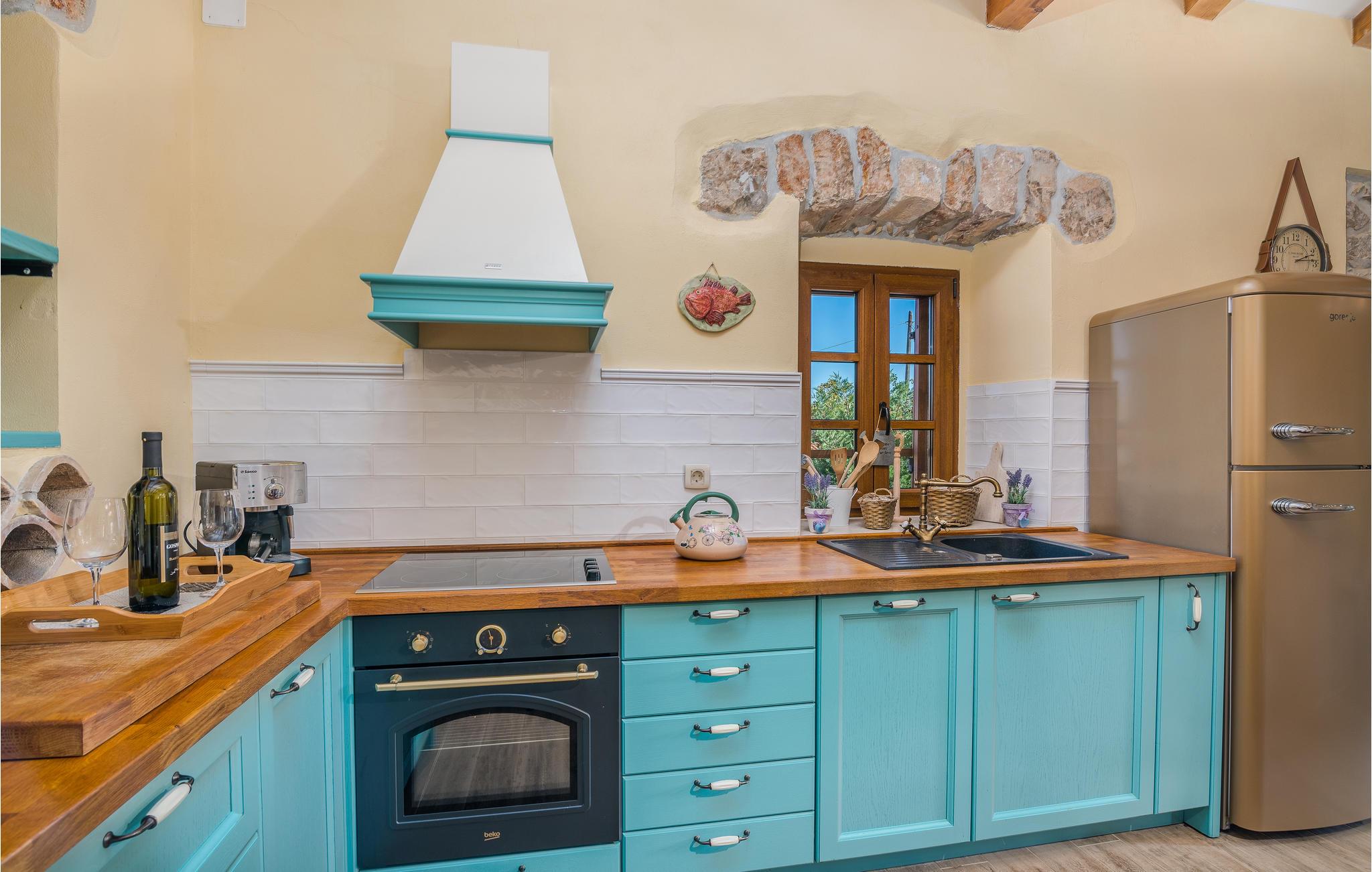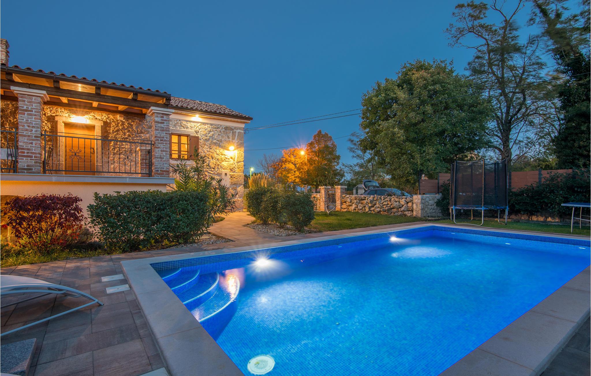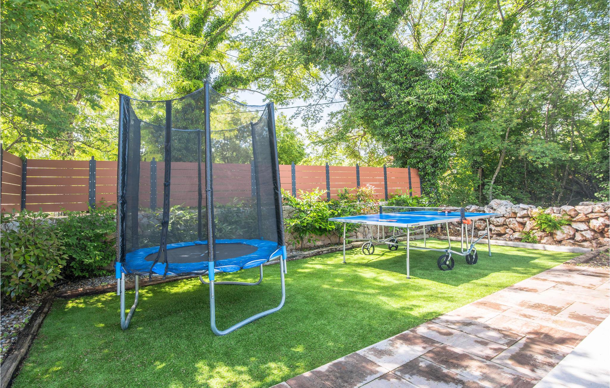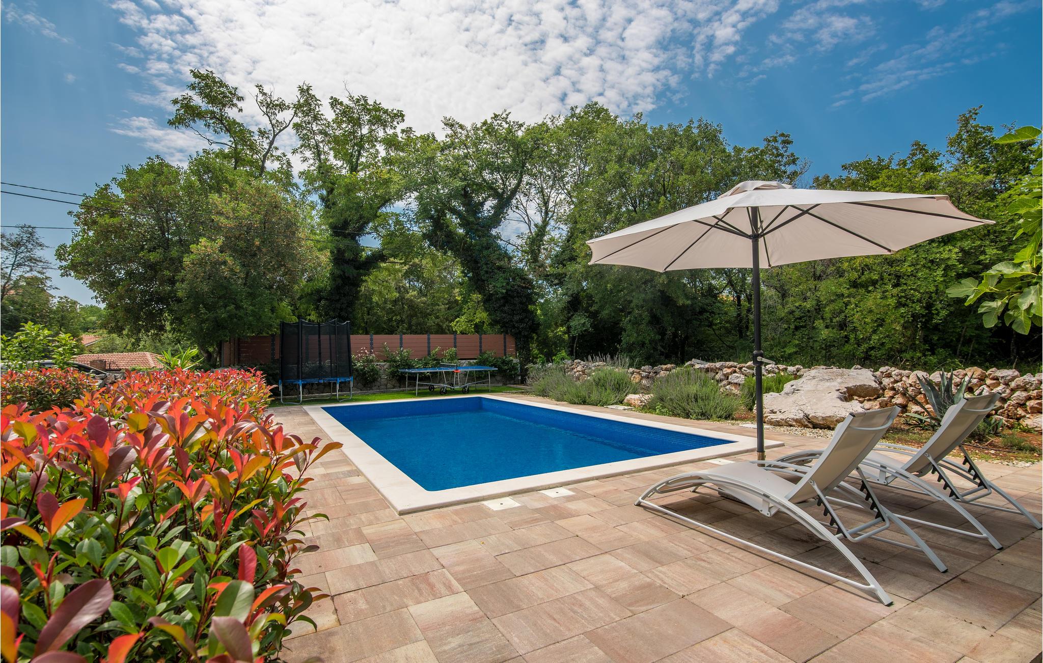 Dette skønne stenhus ligger i en lille landsby i det indre af Krk. Det er meget ekskvisit indrettet og byder på al den komfort, I kunne have brug for for at holde en afslappende ferie. I huset hersker der en behagelig og varm atmosfære. I stueetagen er der to soveværelser, det rummelige boligområde med udgang til den store og overdækkede terrasse indtager første salen. Terrassen inviterer til lækre aftensmåltider i dejlig selskab, mens I nyder udsigten over haven, poolen og jeres legende børn. I bil er I hurtigt i Šilo, Vrbnik, Malinska og byen Krk, hvor der om sommeren er mange kulturelle arrangementer såvel som et livligt natteliv. Opdag stranden med helbredende mudder i Klimno og bedårende gemte bugter på Krk.