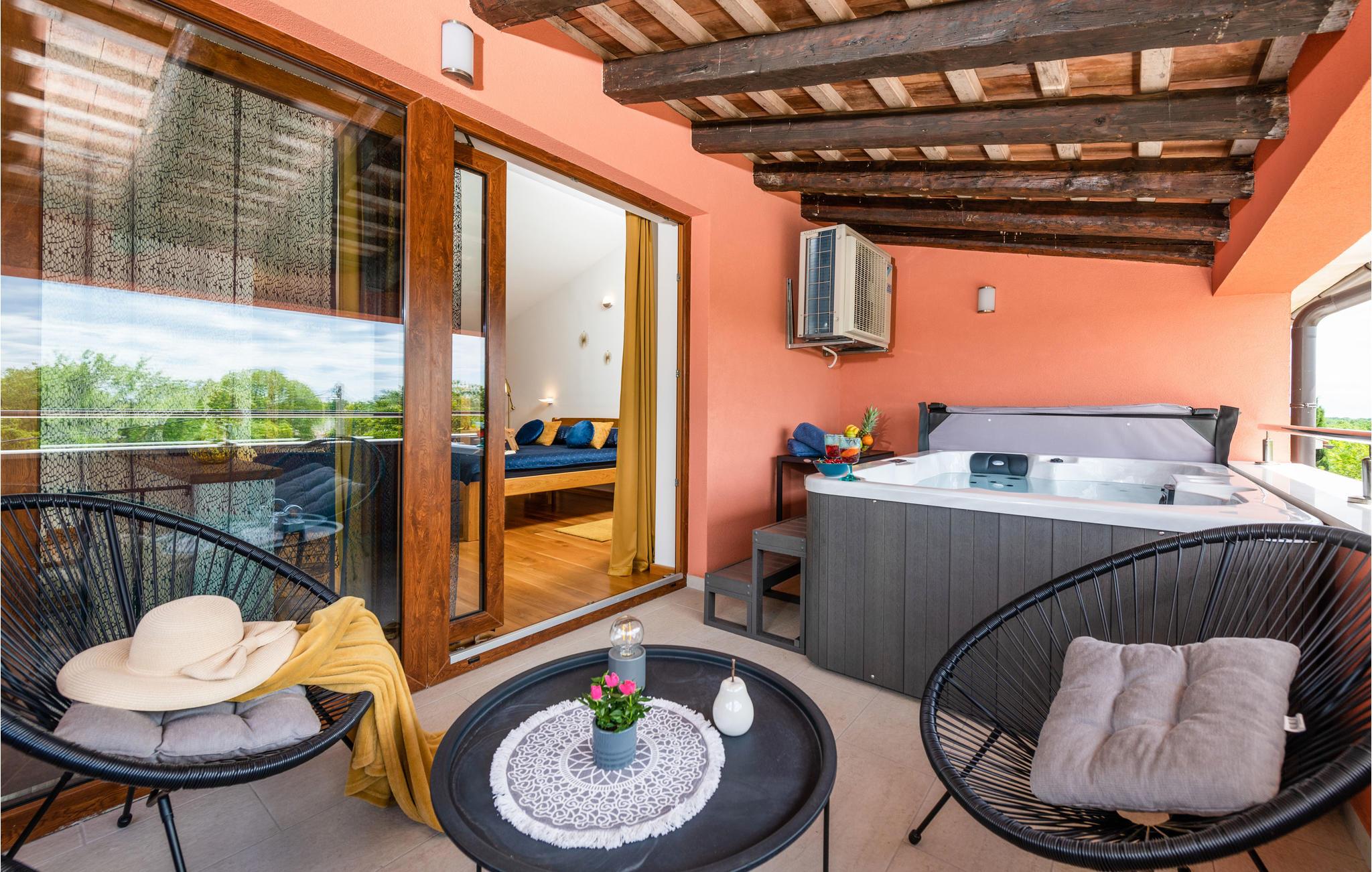 Rejs til dette skønne feriehus med familien eller et par venner. Huset strækker sig over tre etager og byder på smagfulde og farverige lokaler, der inviterer til at blive hængende. Find jer godt til rette på møblerne, spil kort og nyd saunaen og jacuzzien på øverste etage, hvorfra I har en fantastisk udsigt over det grønne landskab.
