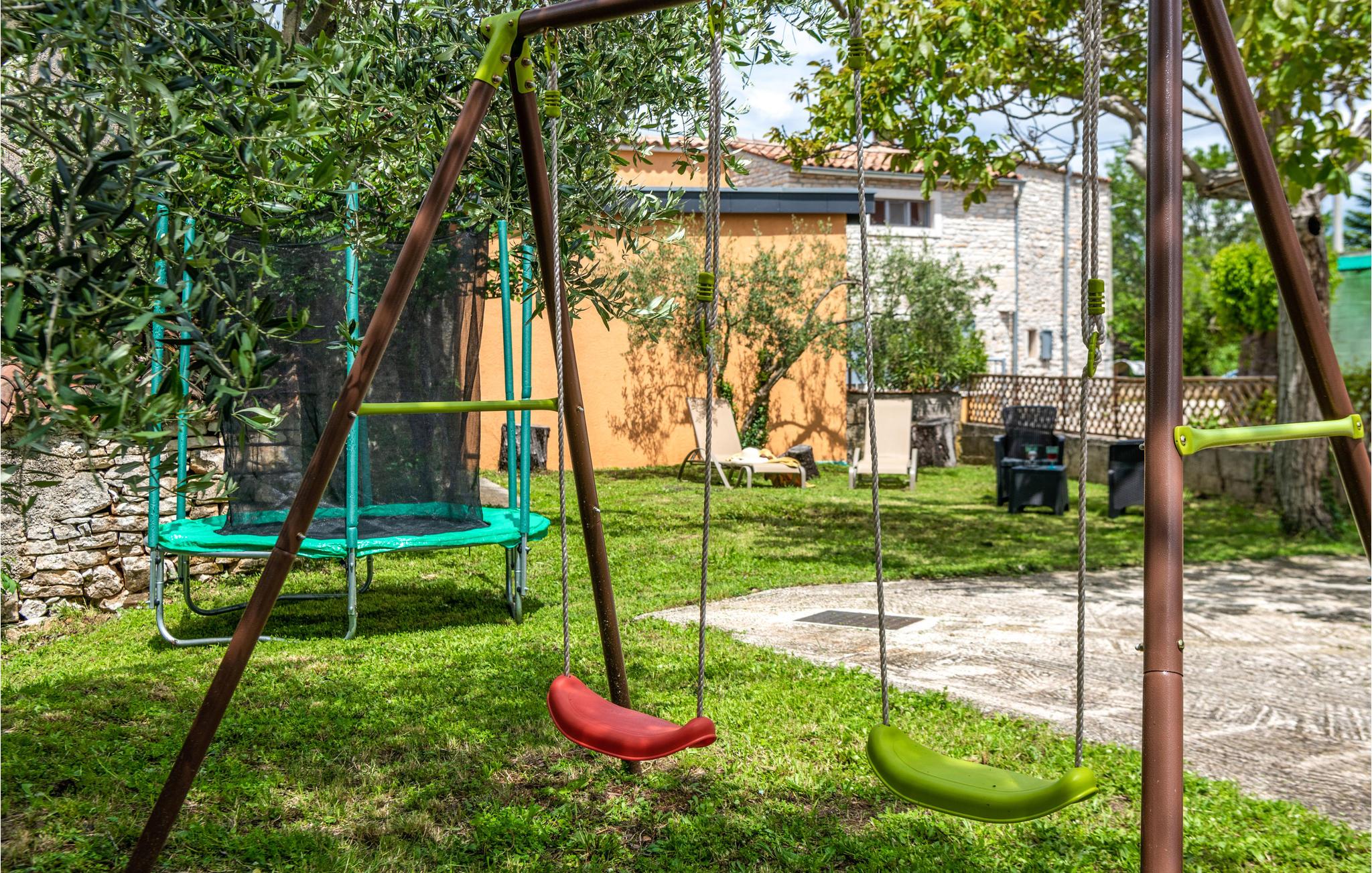 En smuk terrasse med en muret grill venter på jer i stueetagen. Nyd jeres grillretter udendørs og slap af i solen. børnene kan boltre sig og lege i haven og bruge de eksisterende børnefaciliteter.