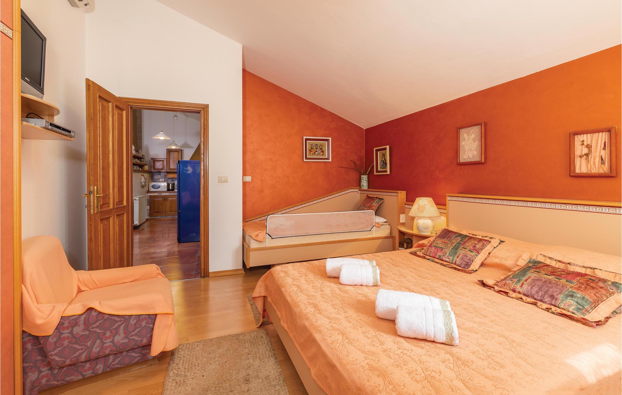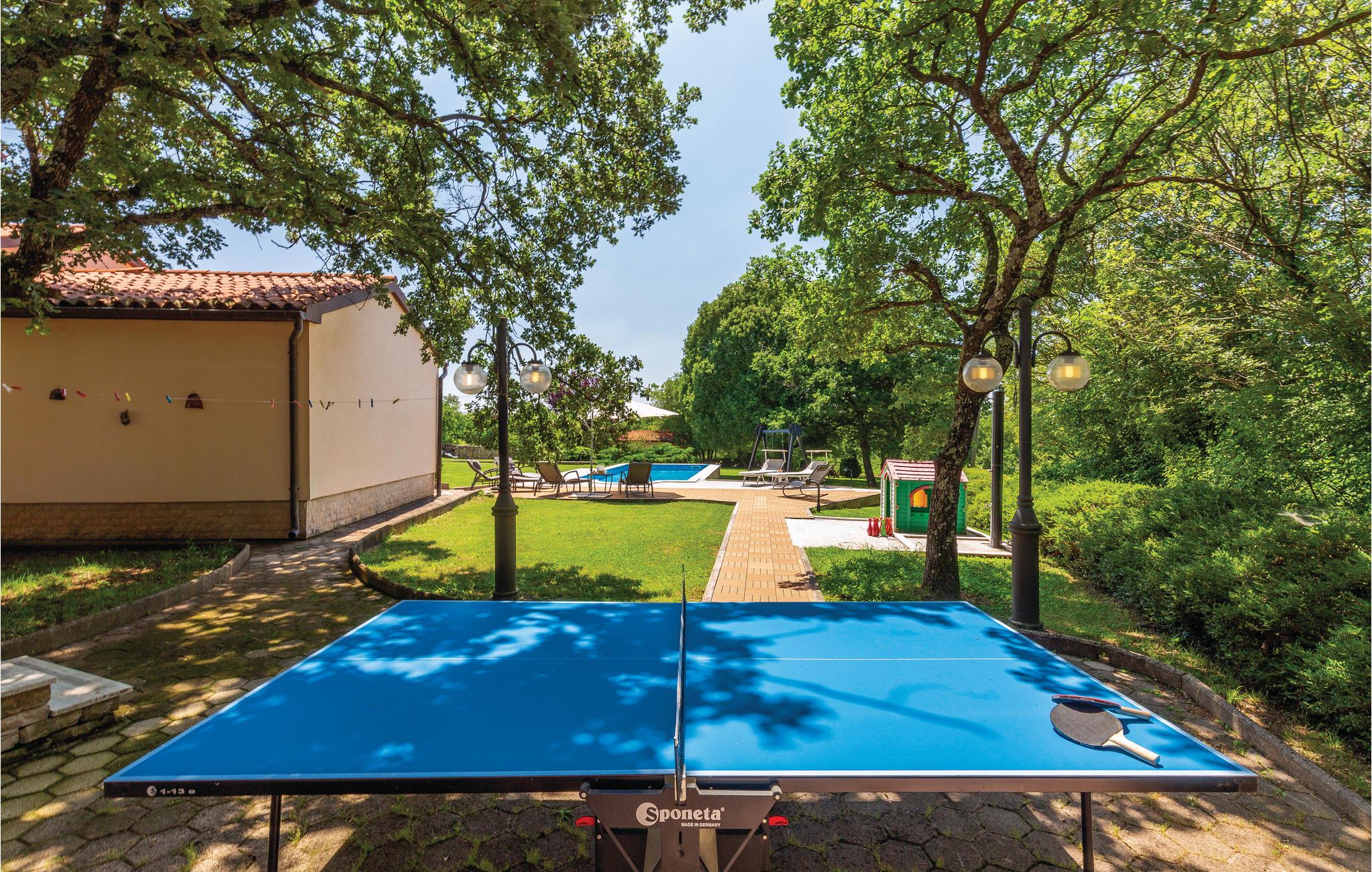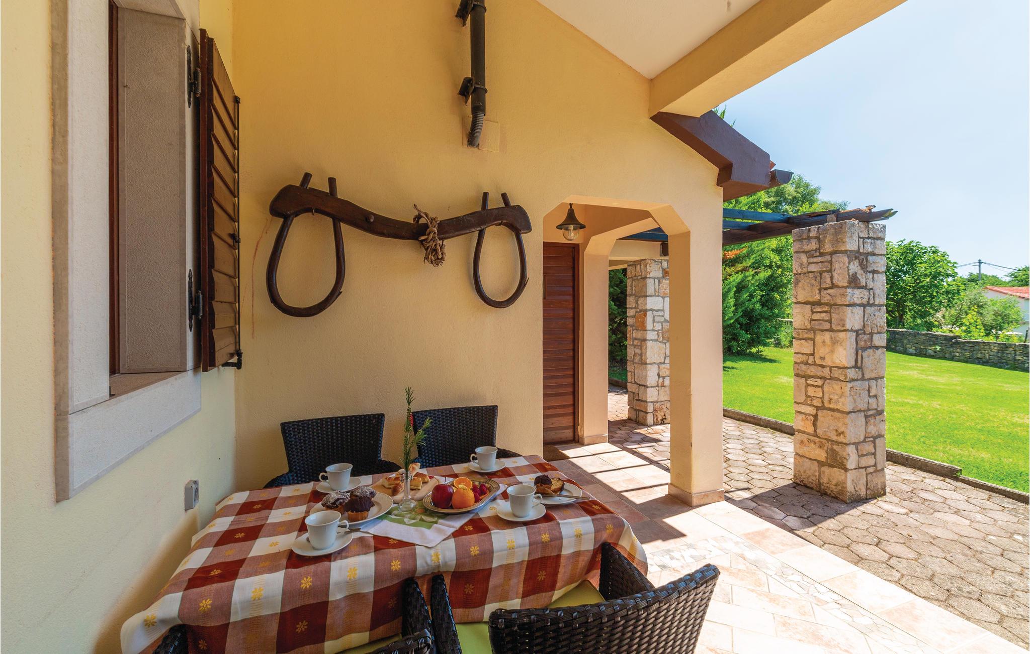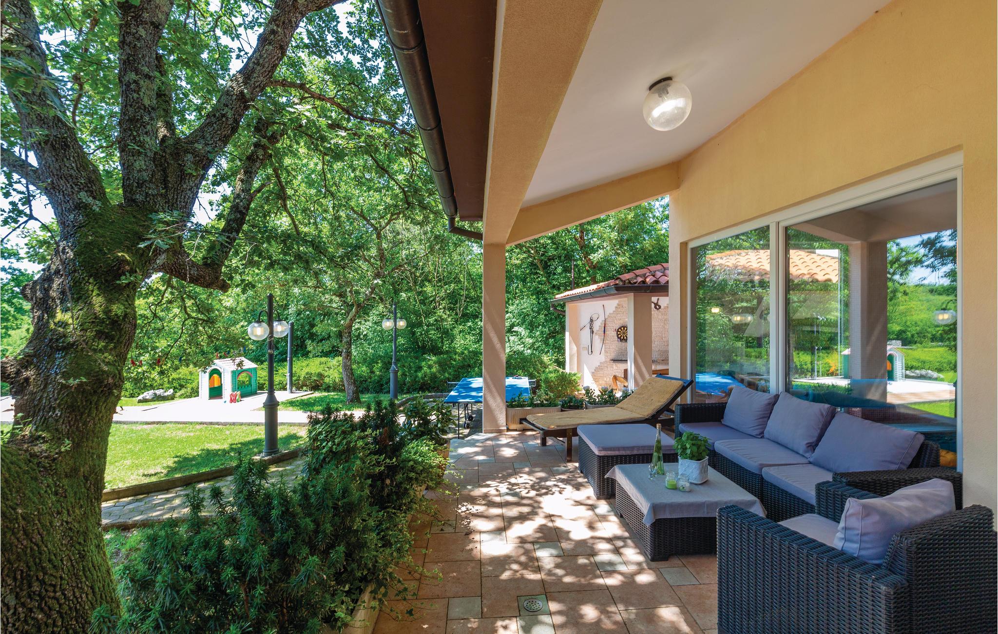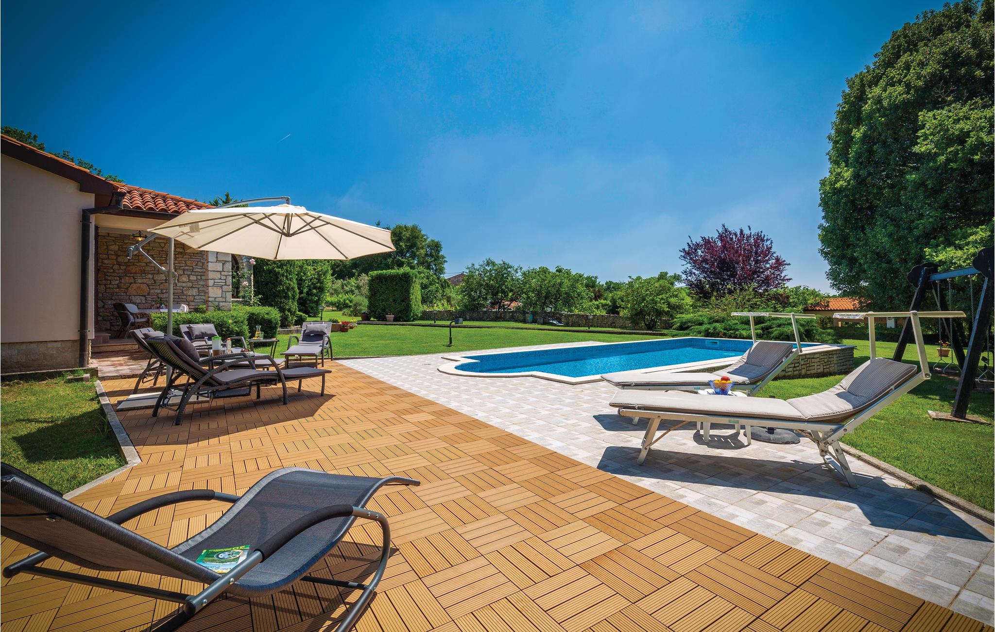 Moderne feriehus omgivet af herlig natur og en stor have i hvilken der er en dejlig pool. Det hyggeligt indrettede hus har meget at byde på både inde og ude. I huset er der tre soveværelser med hver sit tilhørende badeværelse, et veludstyret køkken med stenovn og et stort spisebord. Skal I slappe af, så prøv den opvarmede indendørs pool, spa med massagefunktion til 5 personer og saunaen med ekstra badeværelse. Er det en varm sommerdag er det nok den store pool udenfor der er mest tillokkende, her kan I køle jer af i det klare vand. Mens I nyder det afslappede liv, kan børnene gynge eller more sig i legehuset. Der er mulighed for at få trådløs internetopkobling, så I kan holde jer ajour med hvad der sker i verden og holde kontakt med familien og vennerne. På den overdækkede terrasse kan I nyde en god bog og udsigten over den smukke natur, eller I kan forsøge jer med det istriske køkken i det overdækkede sommerkøkken med muret grill. I en radius på bare 10 km er der mange muligheder for spændende aktiviteter i ferien. Hvad med at lære Istrien at kende fra firhjulet crosser eller fra hesteryg? Der er også mulighed for at tage en kajaktur og således opleve omgivelserne fra en anden vinkel. Huset er et godt udgangspunkt for cykel-og vandreture. Besøg nærliggende strande og bugter, og Labin med mange kunstgallerier og smuk venetiansk arkitektur. Her ligger også Rabac med de pragtfulde sandstrande og det krystalklare adriaterhav. Snup en kop kaffe og en velsmagende kage på promenaden. Nyd også husets dejlige udendørs pool. I S3 er der et lille tekøkken.