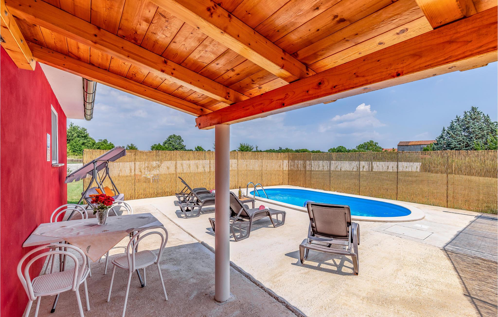 I den lille og rolige by Hrelici ligger dette praktisk indrettede feriehus med swimmingpool. Det rummer et soveværelse, badeværelse, køkken og stue. I haven står en grill, hvor det er nemt og lækkert at tilberede feriemaden. Det tager kun 20 minutter at køre til de nærmeste skønne strande i bil. Vi kan anbefale et besøg i naturpark Kap Kamenjak og sine vilde strande og besøge Pula med mange seværdigheder fra romertiden, især det smukke amfiteater. Smag på områdets lækre traditionsrige måltider på en af de mange restauranter eller taverner.