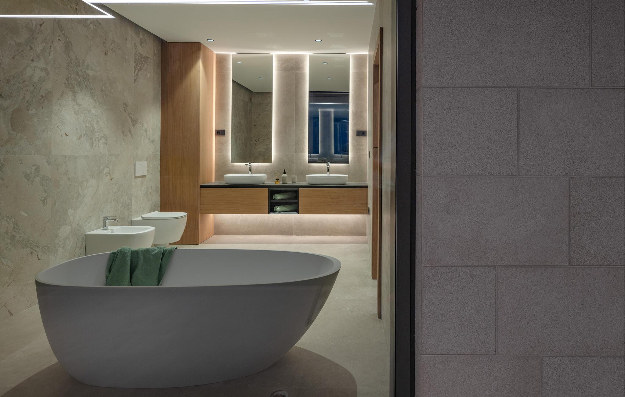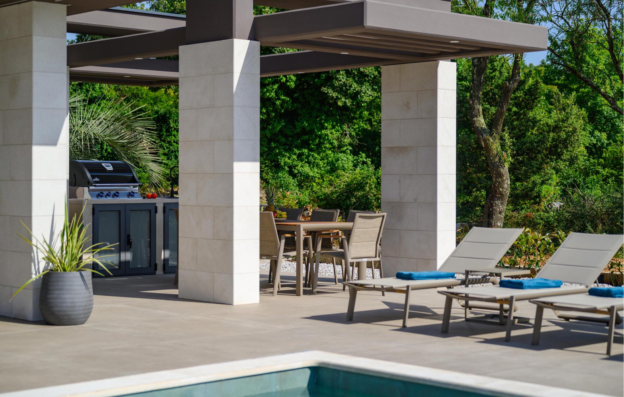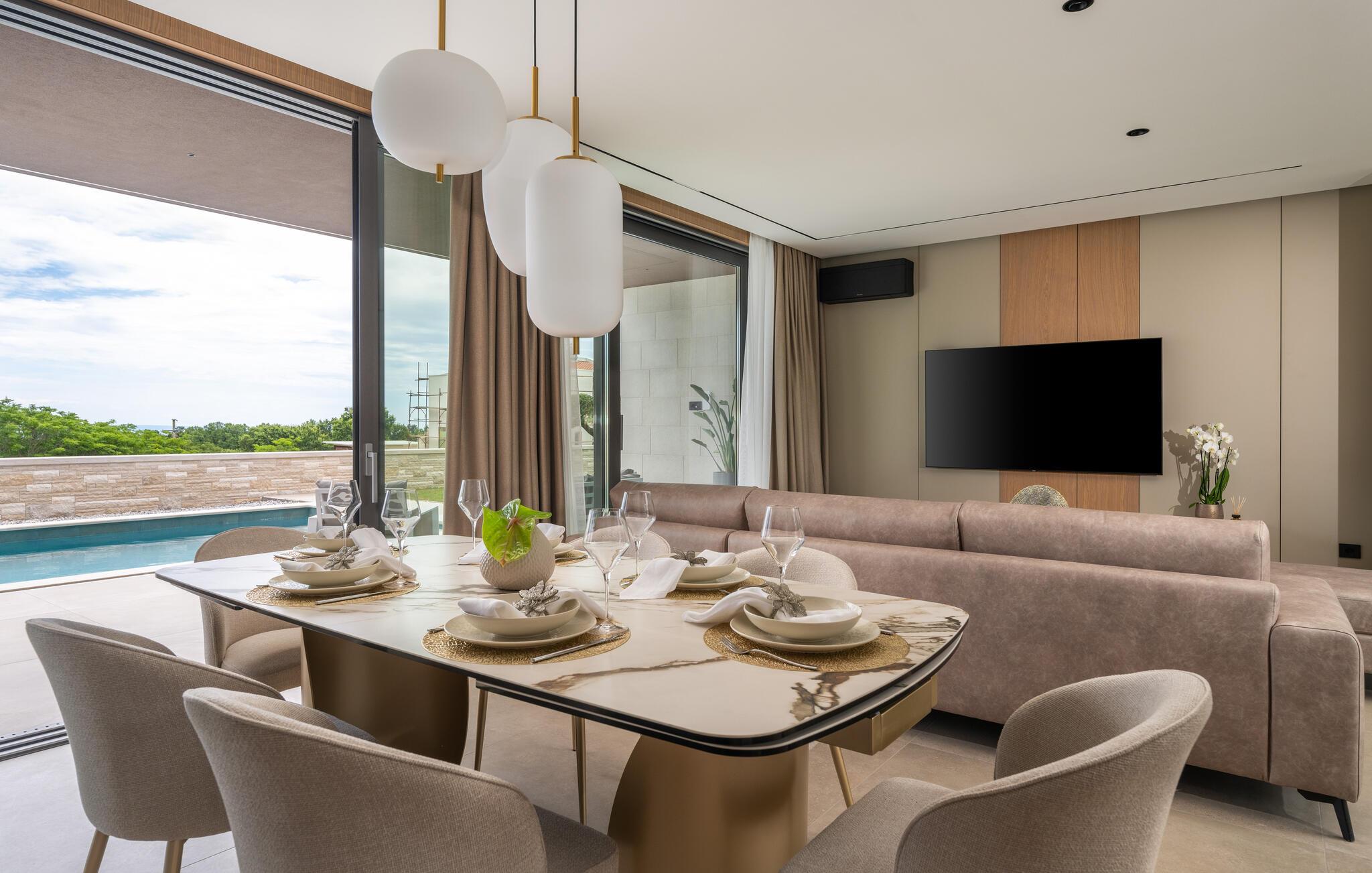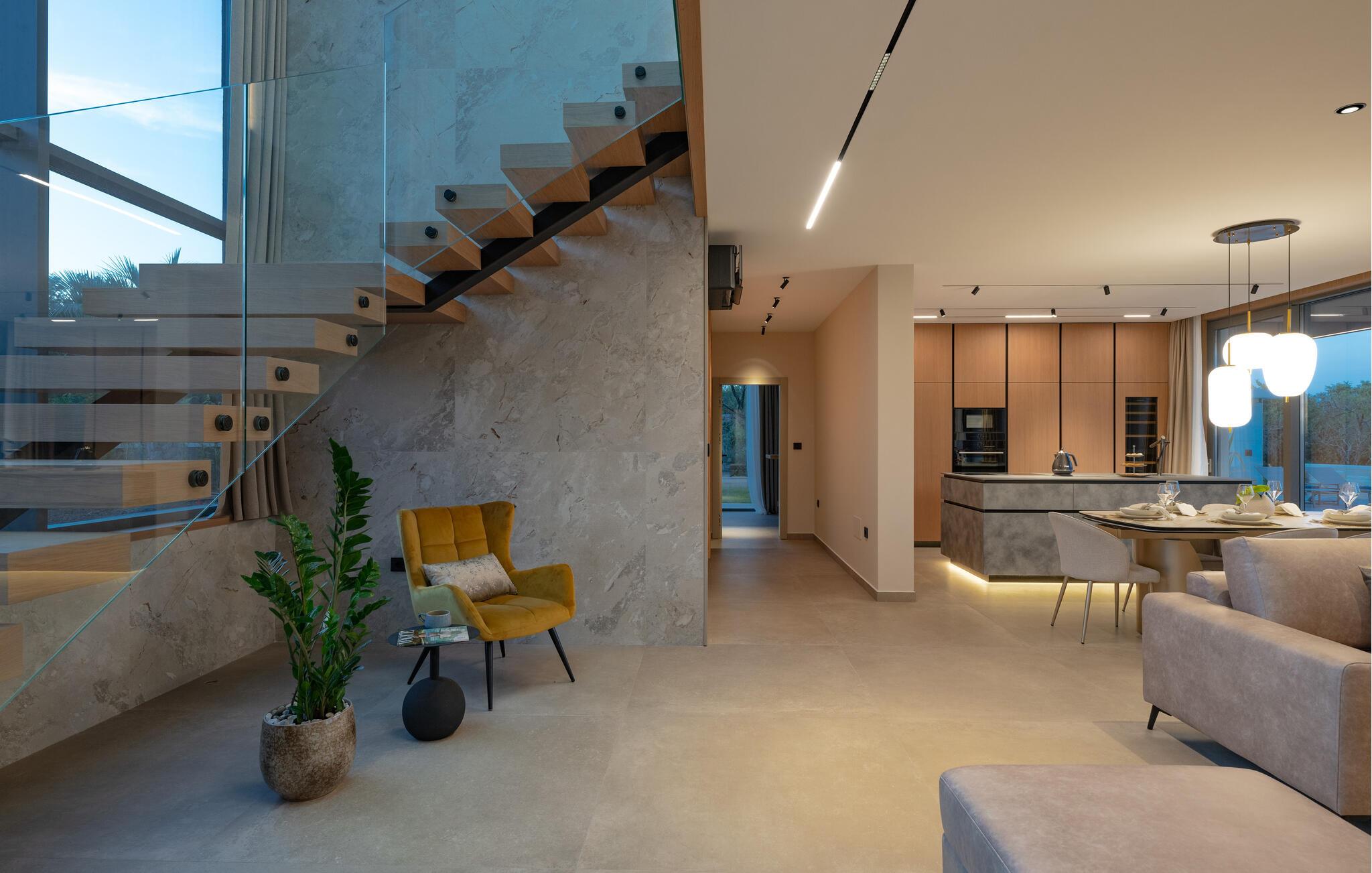 Nyd den stilfulde atmosfære i dette eksklusive designerhus. Den åbne, lysfyldte arkitektur skaber en harmonisk følelse af at bo, mens I kan fremtrylle middelhavsspecialiteter i det ultramoderne køkken. Forkæl jer selv med kulinariske lækkerier ved det elegante spisebord eller gør jer godt tilpas på det rummelige sofaområde, mens I streamer en film eller lytter til musik.