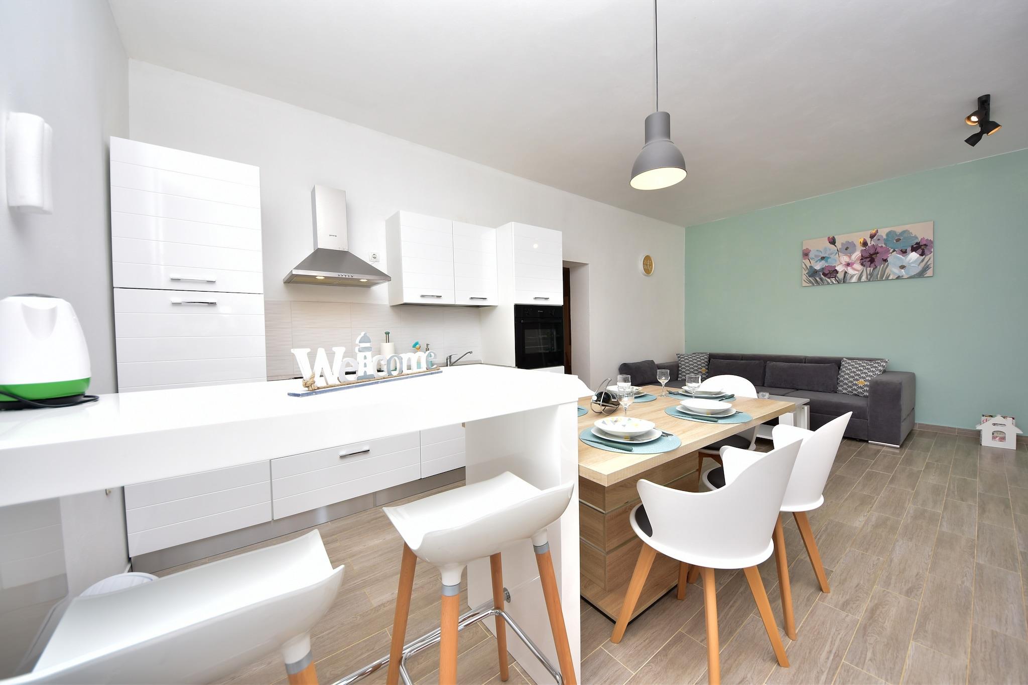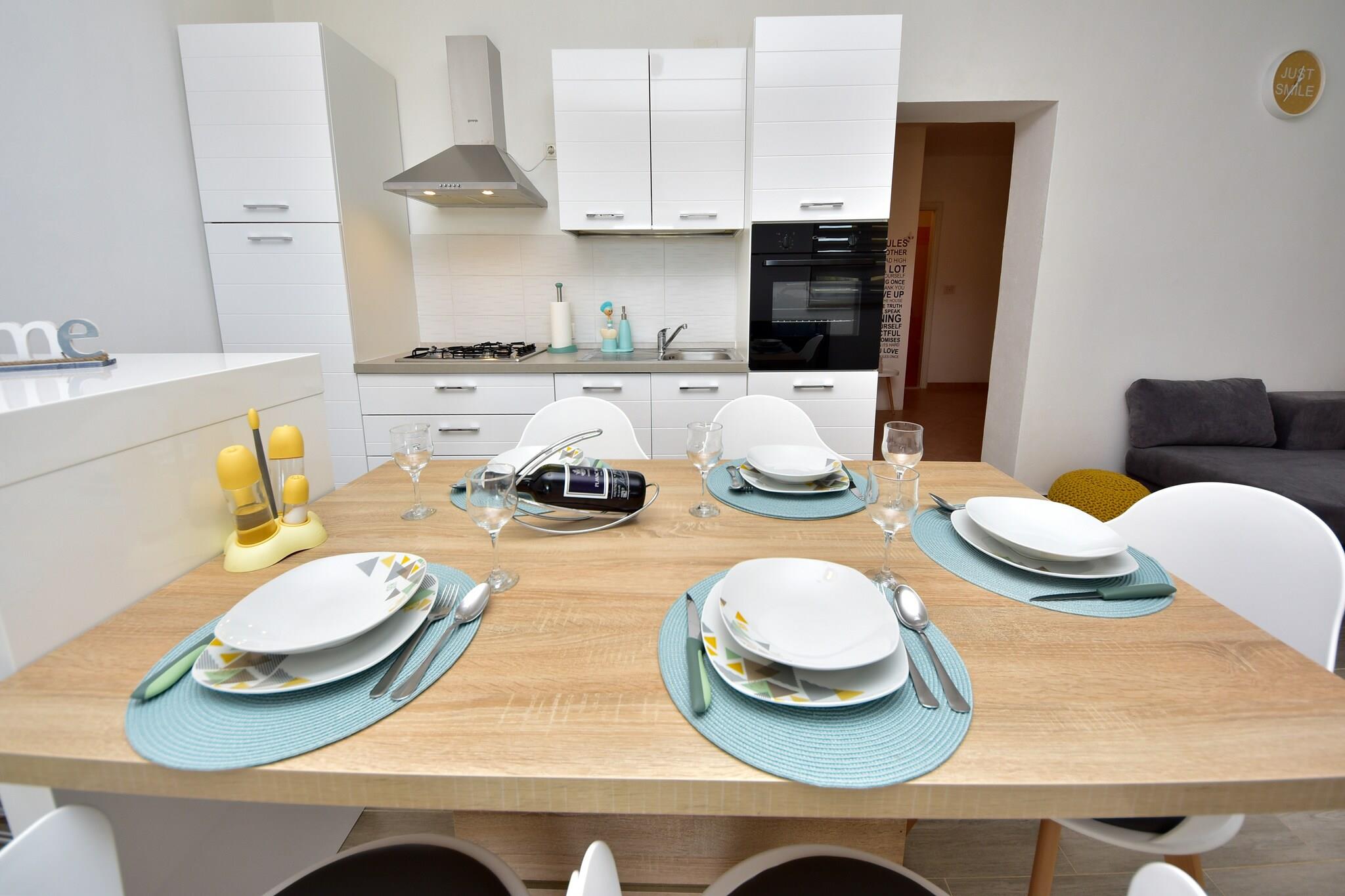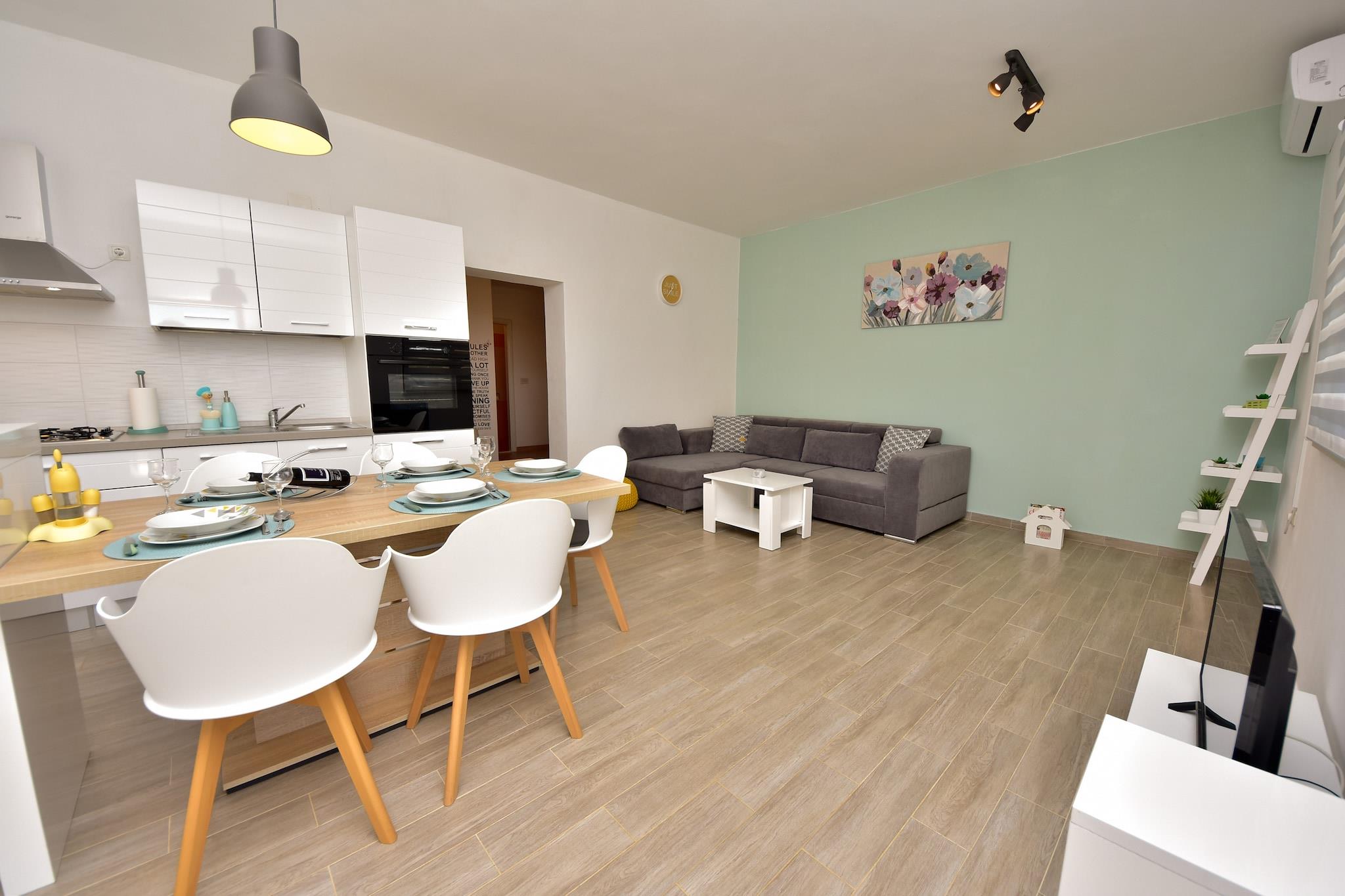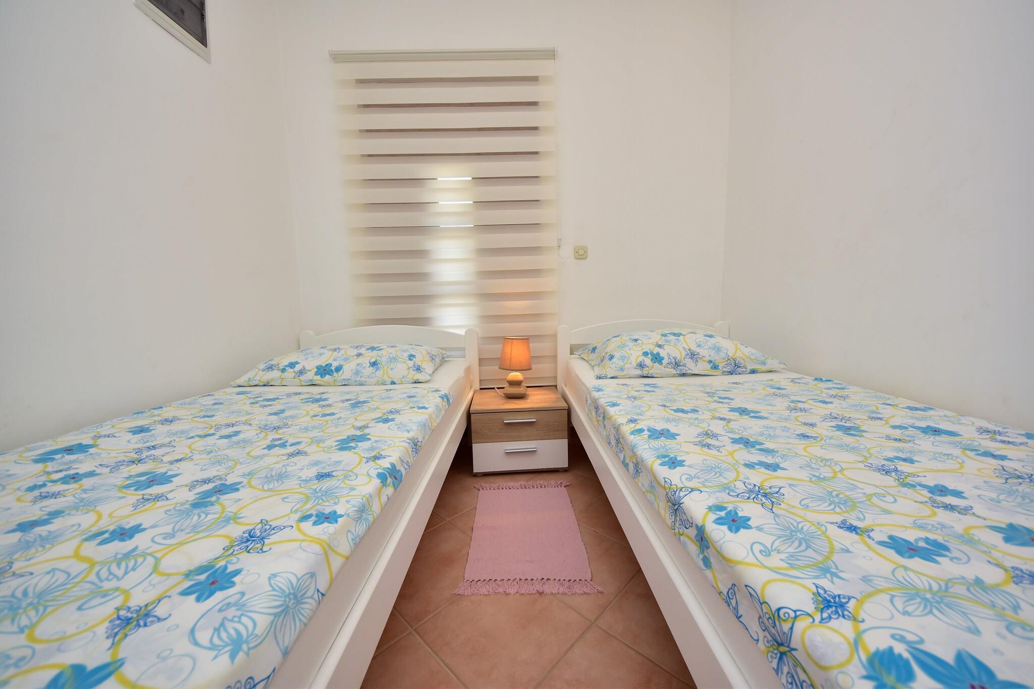 Denne rummelige lejlighed ligger i Krusevo og tilbyder et behageligt ophold for op til 6 gæster. Kun 50 meter fra havet og en kort gåtur fra byens centrum, restauranter og almindelige forsyninger, er det perfekt placeret for bekvemmelighed og afslapning. Den private overdækkede terrasse og den fælles oplyste have giver gode udendørsrum til at slappe af. Indvendigt har lejligheden et åbent køkken fuldt udstyret med moderne apparater, herunder en kaffemaskine, ovn, mikroovn og opvaskemaskine. Stuen/spisestuen har aircondition, en dobbelt sovesofa, et fladskærms-satellit-tv og plads til seks. To soveværelser omfatter en køjeseng og to enkeltsenge, med et badeværelse med bruser og hårtørrer. Til underholdning tilbyder ejendommen en trampolin, rutsjebane, bordtennis, dart, gyngestativ og cykler. Gæsterne kan også nyde grillfaciliteter og fælles adgang til vaskemaskine. Parkering er tilgængelig på stedet, og gratis WiFi holder dig forbundet under hele dit ophold. Lufthavnen ligger 35 km derfra, og turistservice er inden for 4 km