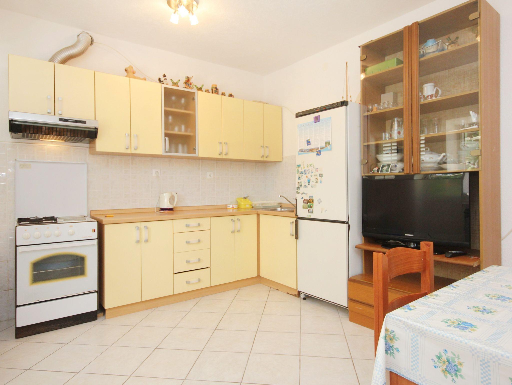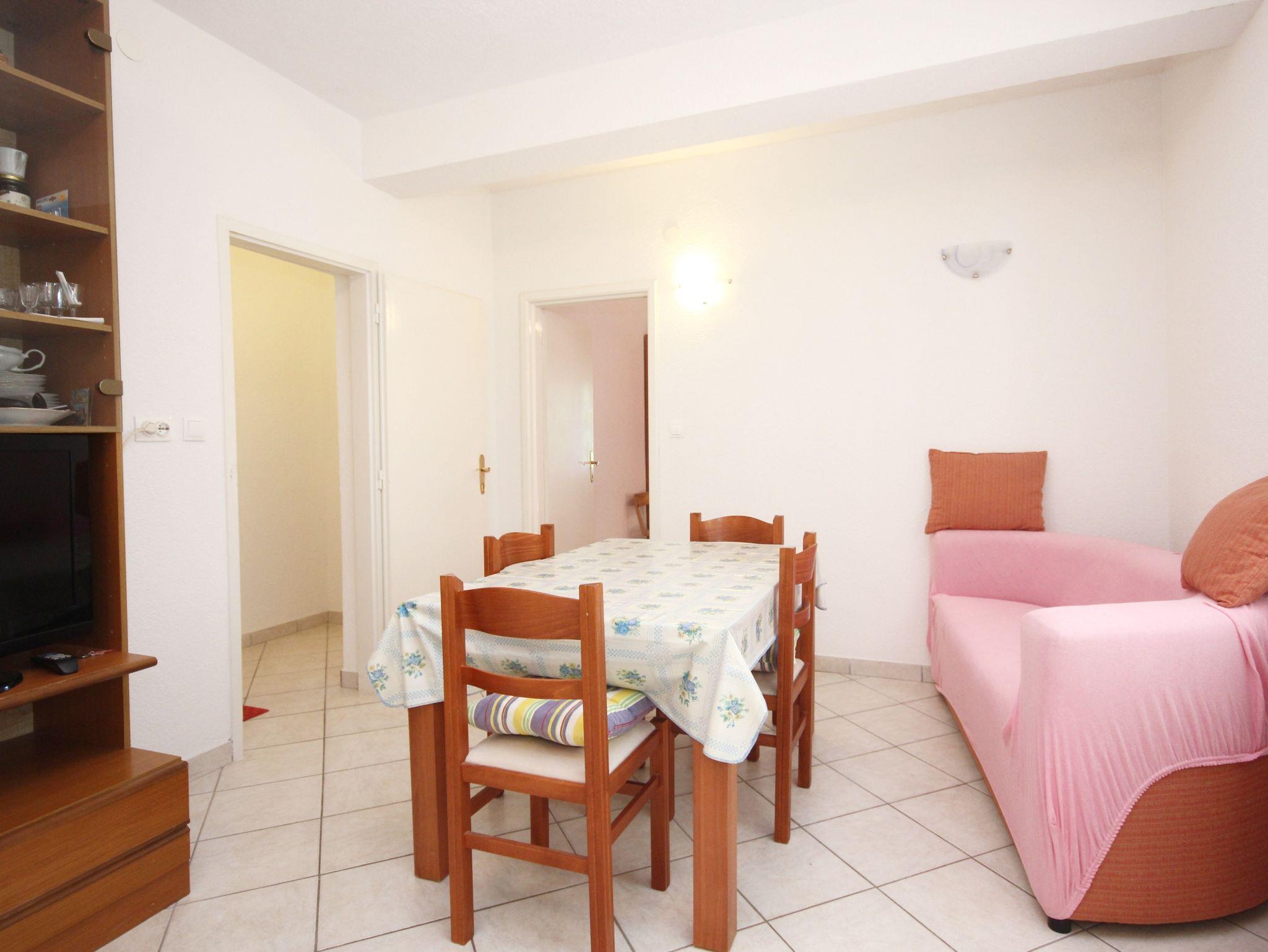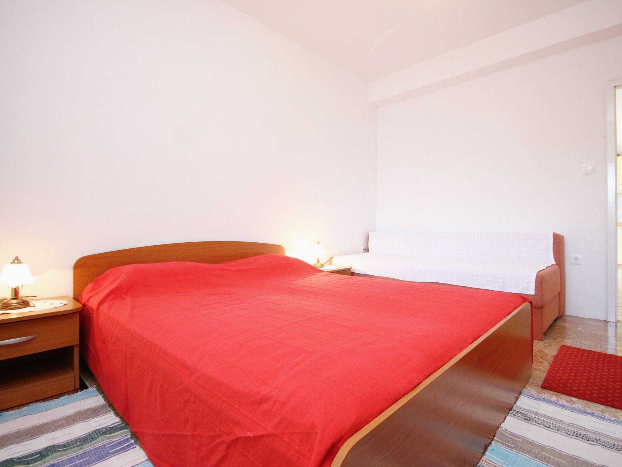 Ferienwohnung bietet Platz für 5 Gäste. Die Betten sind in Schlafzimmern, die es 2 gibt, innerhalb einer Gesamtfläche von 50m2, angeordnet. Die Gäste haben eine eigene Terrasse zur Verfügung, auf der sie in warmen Sommernächten genießen können. Das Apartment bietet Meerblick. Es ist erlaubt, Speisen auf dem Gemeinschafts-Grill vorzubereiten. In der Unterkunftseinheit besteht die Möglichkeit des Mitbringens von Haustieren gegen Aufpreis. IM PREIS INBEGRIFFEN: Kurtaxe, Endreinigung, Klimatisierung, Parkplatz, Internet, Bügeleisen. VERBINDLICHE ZUSÄTZLICHE KOSTEN: Aufzahlung für Kurzaufenthalte (prozentualer Zuschlag pro Nächtigungsanzahl: 30% - 1, 20% - 2, 10% - 3). UNVERBINDLICHE ZUSÄTZLICHE KOSTEN: Haustiere (5,00 € pro Nacht). Die Verfügbarkeit zusätzlicher Dienstleistungen in Ihrem reservierten Termin und die Preise derselben (falls nicht aufgeführt) müssen im Voraus überprüft werden. Zusätzliche Dienstleistungen die in der Zahlungsaufforderung nicht aufgeführt sind werden direkt beim Vermieter bezahlt, angenommen der Gast nutzt auch diese.