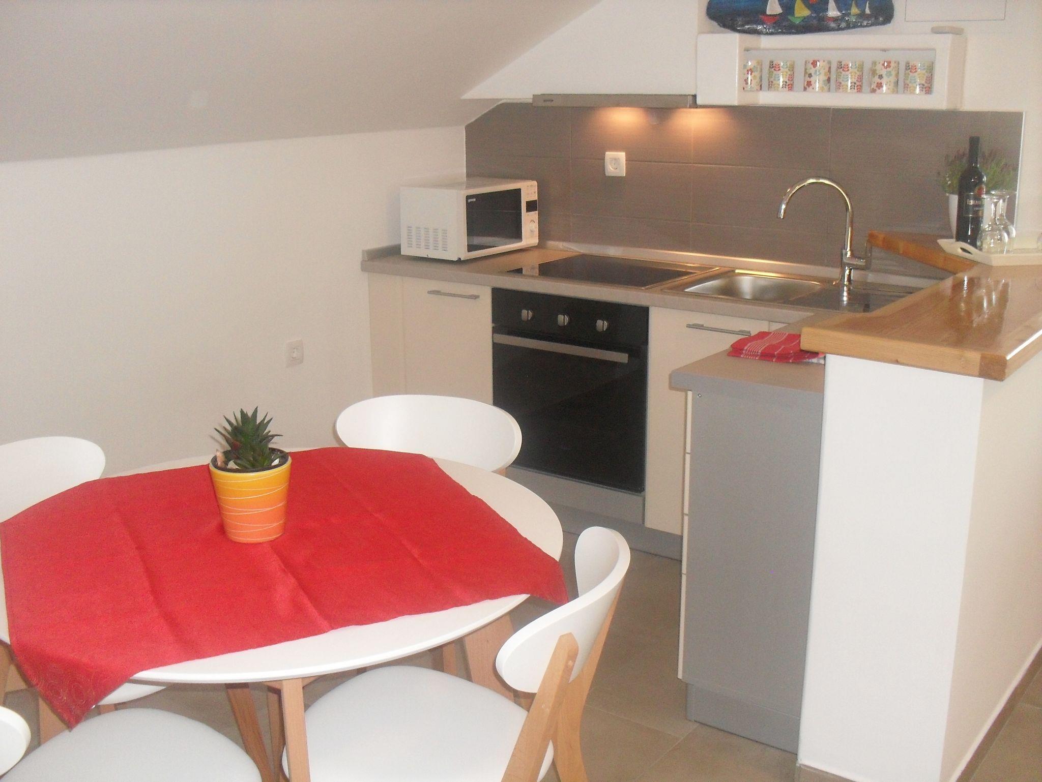 Ferienwohnung bietet Platz für 4 Gäste. Die Betten sind in Schlafzimmern, die es 1 gibt, und in Wohnzimmer, innerhalb einer Gesamtfläche von 43m2, angeordnet. Die Gäste haben eine eigene Terrasse zur Verfügung, auf der sie in warmen Sommernächten genießen können. Das Apartment bietet Meerblick. Für vollen Genuss und Entspannung gibt es einen privaten Grill für Gäste dieser Unterkunft. In der Unterkunftseinheit besteht die Möglichkeit des Mitbringens von Haustieren, und die Dienstleistung ist im Preis der Unterkunft enthalten. IM PREIS INBEGRIFFEN: Kurtaxe, Endreinigung, Klimatisierung, Parkplatz, Internet, Haustiere, Bügeleisen, Bügelbrett, Föhn, tragbarer Grill, Liegestühle. VERBINDLICHE ZUSÄTZLICHE KOSTEN: Aufzahlung für Kurzaufenthalte (prozentualer Zuschlag pro Nächtigungsanzahl: 30% - 1, 20% - 2, 10% - 3). Die Verfügbarkeit zusätzlicher Dienstleistungen in Ihrem reservierten Termin und die Preise derselben (falls nicht aufgeführt) müssen im Voraus überprüft werden. Zusätzliche Dienstleistungen die in der Zahlungsaufforderung nicht aufgeführt sind werden direkt beim Vermieter bezahlt, angenommen der Gast nutzt auch diese. Ermäßigung auf den Grundpreis: Gratistag 14=13 (bei einem Aufenthalt von 14 Tagen oder mehr erhalten Sie einen Gratistag für den Aufenthalt bis 31.12.26).