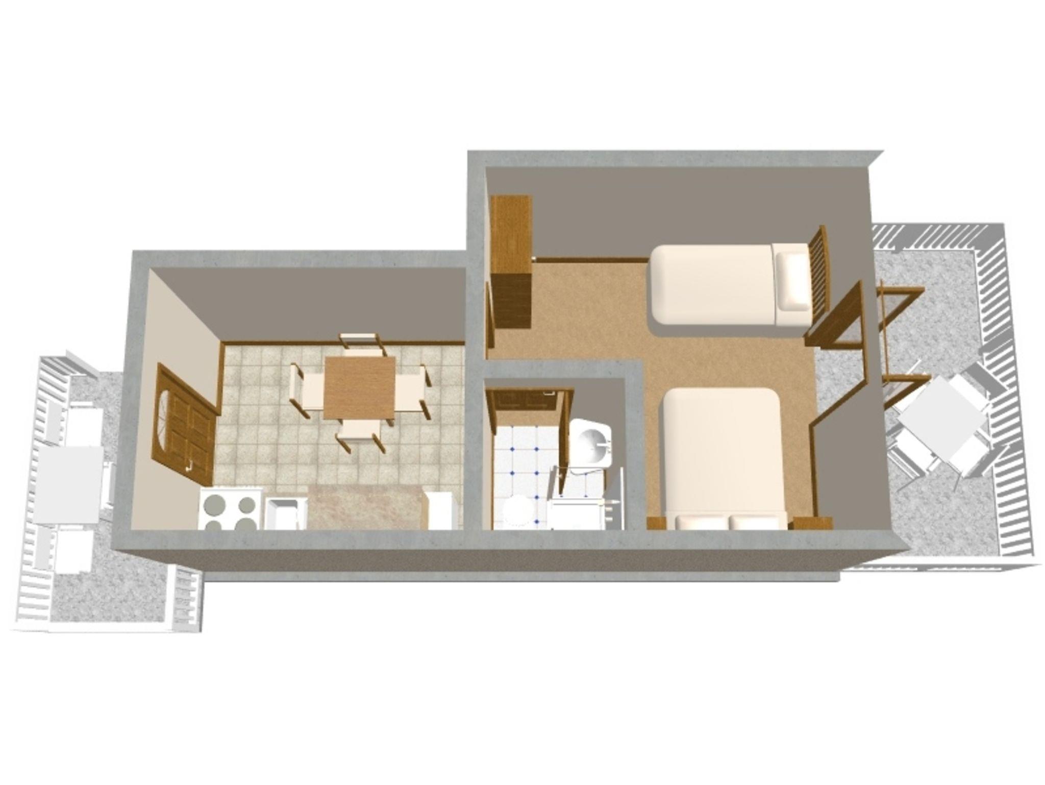 Ferienwohnung bietet Platz für 3 Gäste. Die Betten sind in Schlafzimmern, die es 1 gibt, innerhalb einer Gesamtfläche von 23m2, angeordnet. Die Gäste haben eine eigene Terrasse zur Verfügung, auf der sie in warmen Sommernächten genießen können. Das Apartment bietet Meerblick. Es ist erlaubt, Speisen auf dem Gemeinschafts-Grill vorzubereiten. Während ihres Aufenthalts können Gäste das gemeinsam zur Nutzung stehende Schwimmbad benutzen. In der Unterkunftseinheit besteht die Möglichkeit des Mitbringens von Haustieren gegen Aufpreis. IM PREIS INBEGRIFFEN: Kurtaxe, Endreinigung, Klimatisierung, Pool, Parkplatz, Internet, Bootsanlegeplatz. VERBINDLICHE ZUSÄTZLICHE KOSTEN: Aufzahlung für Kurzaufenthalte (prozentualer Zuschlag pro Nächtigungsanzahl: 30% - 1, 20% - 2, 10% - 3). UNVERBINDLICHE ZUSÄTZLICHE KOSTEN: Wäschewaschen (3,00 € Waschen), Haustiere (5,00 € pro Nacht), Fahrrad (7,00 € täglich (pro Stück)). Die Verfügbarkeit zusätzlicher Dienstleistungen in Ihrem reservierten Termin und die Preise derselben (falls nicht aufgeführt) müssen im Voraus überprüft werden. Zusätzliche Dienstleistungen die in der Zahlungsaufforderung nicht aufgeführt sind werden direkt beim Vermieter bezahlt, angenommen der Gast nutzt auch diese. Ermäßigung auf den Grundpreis: Gratistag 14=13 (bei einem Aufenthalt von 14 Tagen oder mehr erhalten Sie einen Gratistag für den Aufenthalt bis 31.12.26).