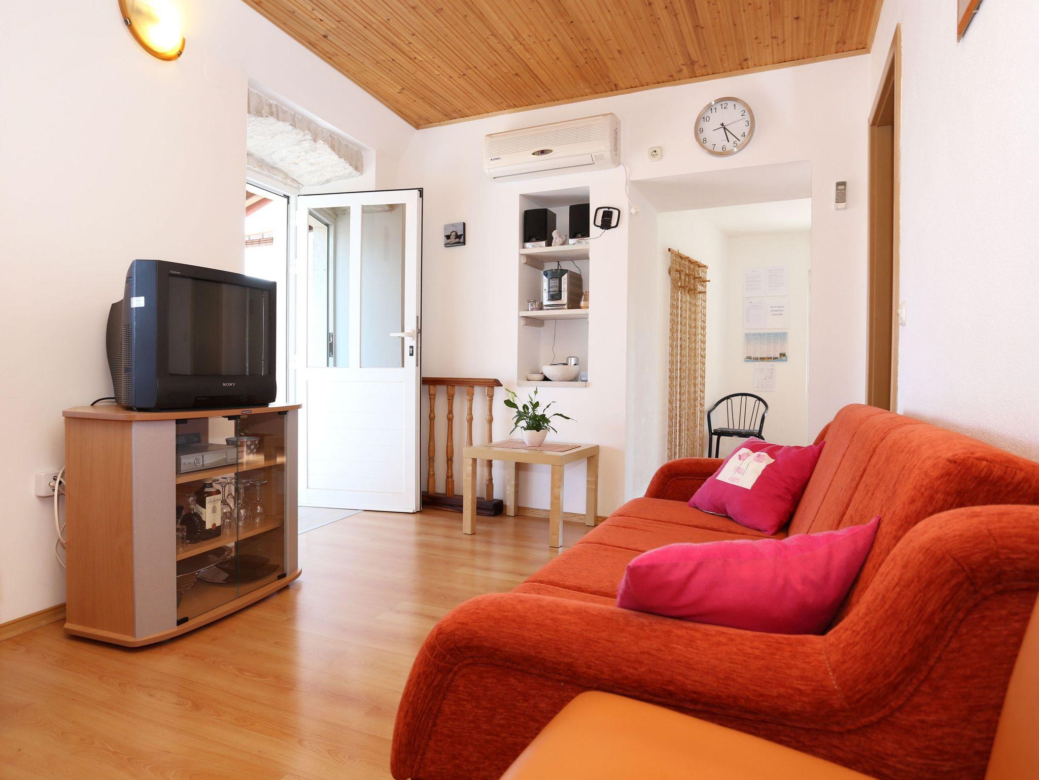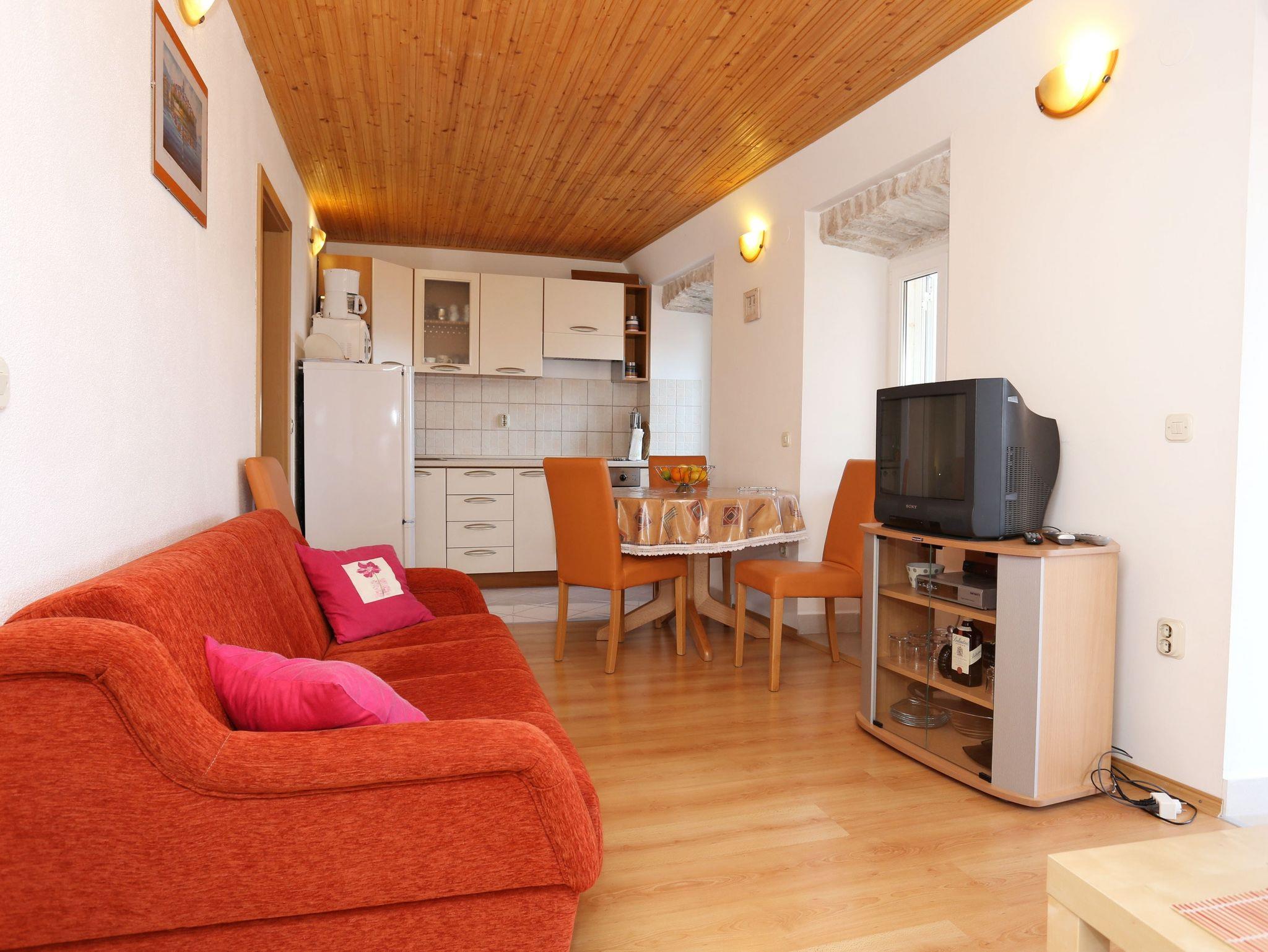 Ferienwohnung bietet Platz für 4 Gäste. Die Betten sind in Schlafzimmern, die es 2 gibt, innerhalb einer Gesamtfläche von 51m2, angeordnet. Die Gäste haben eine eigene Terrasse zur Verfügung, auf der sie in warmen Sommernächten genießen können. Das Apartment bietet Meerblick. Für vollen Genuss und Entspannung gibt es einen privaten Grill für Gäste dieser Unterkunft. Während ihres Aufenthalts können sich Gäste im privaten Schwimmbad entspannen. In der Unterkunftseinheit besteht die Möglichkeit des Mitbringens von Haustieren, und die Dienstleistung ist im Preis der Unterkunft enthalten. IM PREIS INBEGRIFFEN: Kurtaxe, Endreinigung, Klimatisierung, Pool, Parkplatz, Internet, Haustiere, Bügeleisen, Bügelbrett, Föhn, Sonnenschirm, Liegestühle, 1 Bett für Kinder (im Preis enthalten). Die Verfügbarkeit zusätzlicher Dienstleistungen in Ihrem reservierten Termin und die Preise derselben (falls nicht aufgeführt) müssen im Voraus überprüft werden. Zusätzliche Dienstleistungen die in der Zahlungsaufforderung nicht aufgeführt sind werden direkt beim Vermieter bezahlt, angenommen der Gast nutzt auch diese.