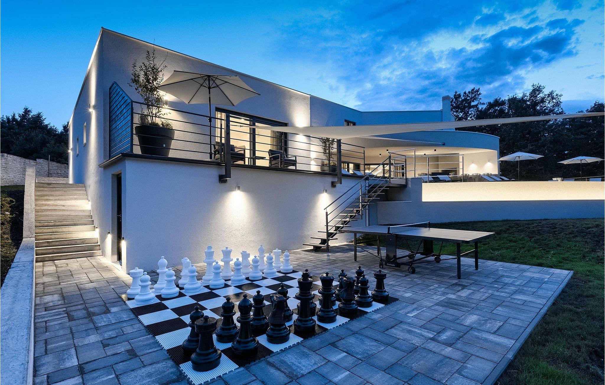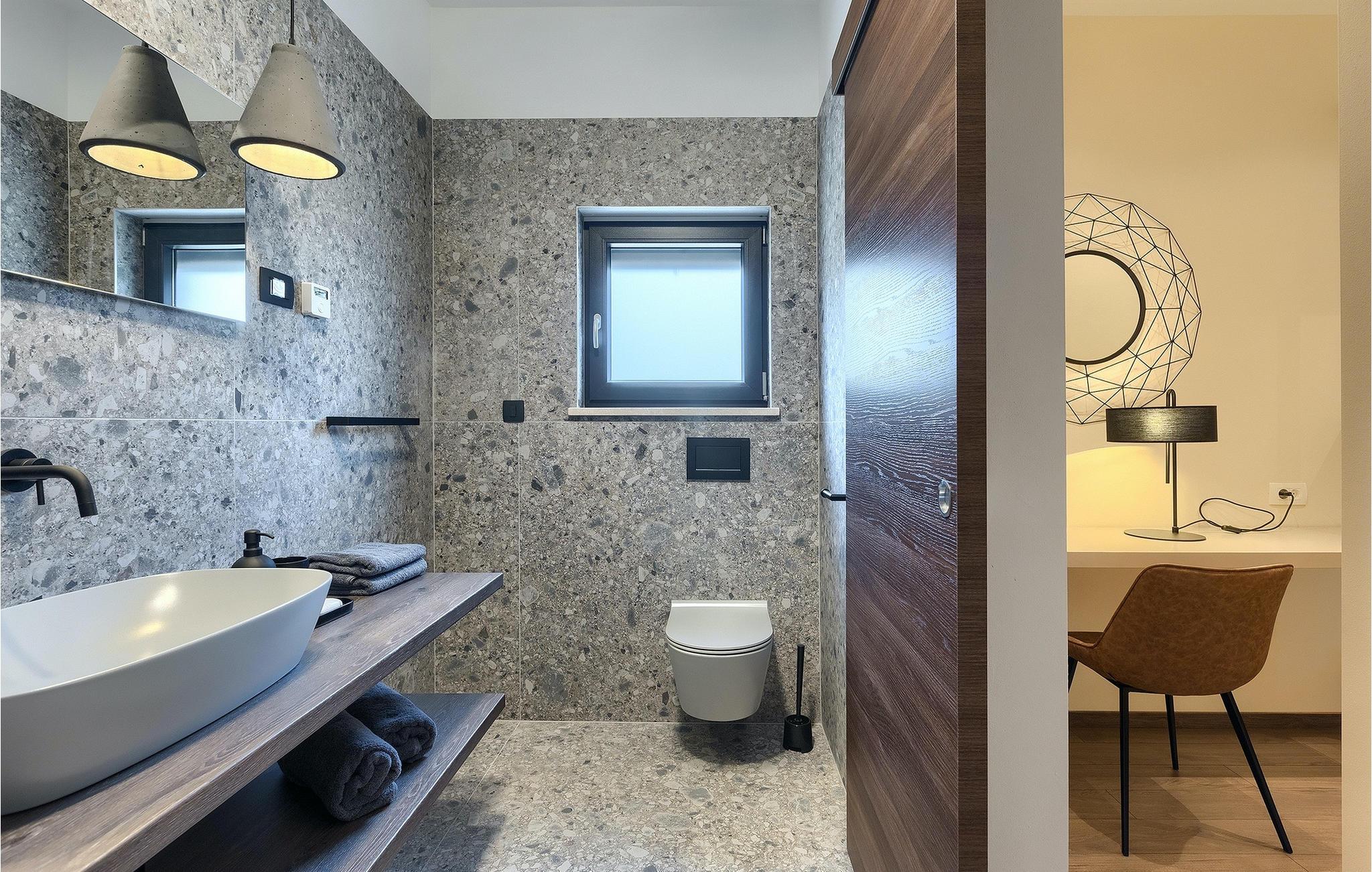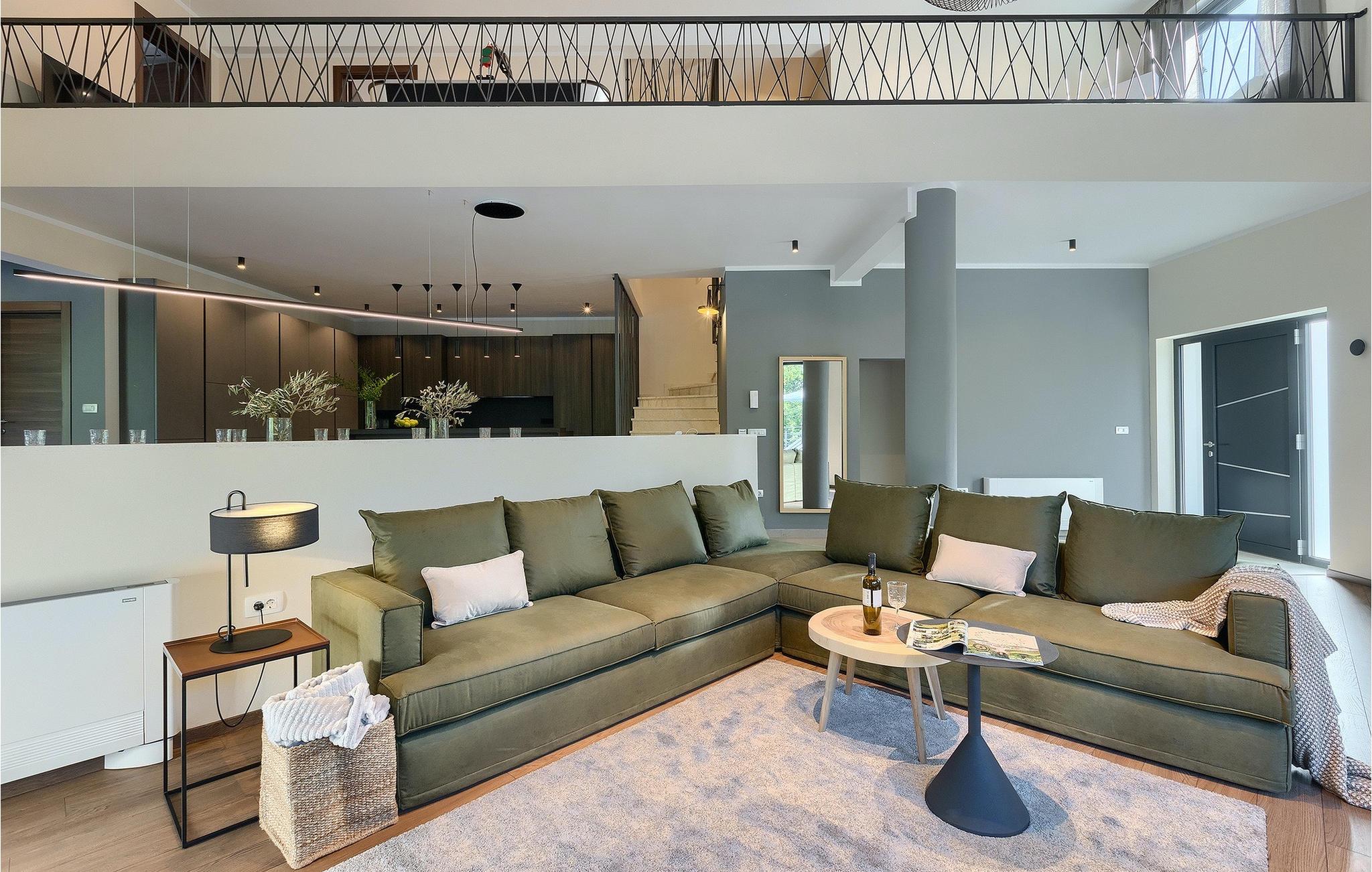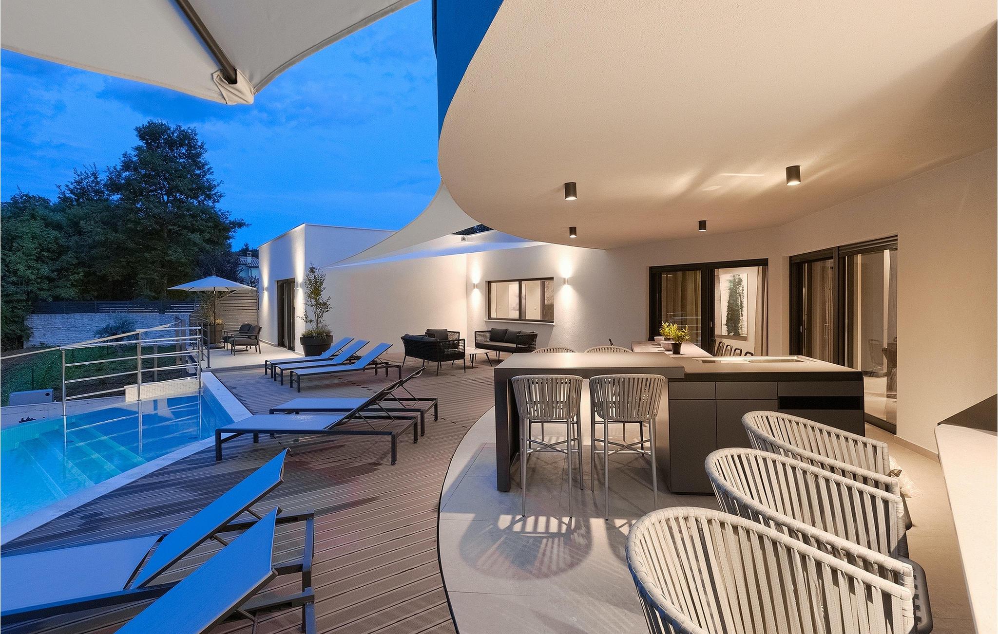 Die fantastische Luxusvilla Viktor Tireli liegt in dem kleinen Ort Krsan, in der Nähe der Stadt Labin. Die Villa ist von einem Wald umgeben, in dem Sie spazieren gehen und die Vorteile dieser ruhigen Lage genießen können. Der Außenbereich ist komplett eingezäunt und bietet Ihnen absolute Privatsphäre. Alles ist in einem sehr familienfreundlichen Stil gehalten, so dass jeder seine eigene Entspannungszone hat. Vor der Villa befindet sich ein 60 m2 großer Pool, in dem Sie sich an warmen Sommertagen erfrischen oder einfach auf den bequemen Sonnenliegen entspannen und die Aussicht auf die Natur genießen können. Für die Jüngsten gibt es einen Kinderspielplatz mit Rutsche, Schaukel, Kletterturm und vielen anderen Einrichtungen. Außerdem stehen Ihnen Fahrräder zur Verfügung, um die weitere Umgebung zu erkunden. Die Terrasse ist der perfekte Ort für ein Familientreffen, wo Sie köstliche Mahlzeiten auf dem Holzkohlegrill zubereiten und im Freien genießen können. Mit einer Gesamtwohnfläche von 526 Quadratmetern bietet die Villa Platz für bis zu 14 Personen und eine liebevolle Inneneinrichtung. Das Erdgeschoss besteht aus einem Wohnbereich, einer modernen und voll ausgestatteten Küche, einem Essbereich, einem Gäste-WC und 5 Schlafzimmern. Im Obergeschoss befinden sich neben dem Wohnbereich mit TV und Playstation 4 auch zwei weitere Schlafzimmer. Alle Schlafzimmer verfügen über ein Doppelbett, Klimaanlage, TV und ein eigenes Bad mit Dusche. Diese einzigartige Villa ist für Familien und Gruppen geeignet, also verpassen Sie diese Gelegenheit nicht und buchen Sie Ihren Traumurlaub gleich jetzt!Dieses Anwesen befindet sich in einem kleinen Weiler im östlichen Teil Istriens. Die ganze Regon Istrien ist leicht erreichbar und verfügt über ein ausgezeichnetes, verkehrsarmes Straßennetz. Sie werden zweifellos von der Tatsache, dass der nächste Strand nur 5 km entfernt ist, begeistert sein, da die istrische Halbinsel „Terra Magic” an der warmen Adria liegt. Die Küste mit den großen Touristenzentren Labin und Rabac, sowie der Flughafen Pula sind nur wenige Autominuten entfernt. Auf seinem Hügel oberhalb der magischen Kvarner-Küste thronend, ist Labin das historische und administrative Zentrum Ostistriens. Das Gebiet ist ein Paradies für Kunst- und Geschichtsfreunde mit seinem reichen kulturellen und architektonischen Erbe. Die steilen, gewundenen Gässchen der Altstadt bieten gut erhaltene historische Paläste, zahlreiche Kunstgalerien und –studios, sowie verschiedene Festivals der Jazz- und klassischen Musik in den Sommermonaten. Die Stadt verfügt über einige hervorragende Fischrestaurants, mit köstlichen lokalen Produkten, sowie gemütliche Cafés, wo Sie die entspannte Atmosphäre genießen können. Der Küstenort von Labin ist Rabac, ehemaliges Fischerdorf, heute ein beliebtes Touristenziel, umgeben von einer Vielfalt an traumhaften Kiesstränden.