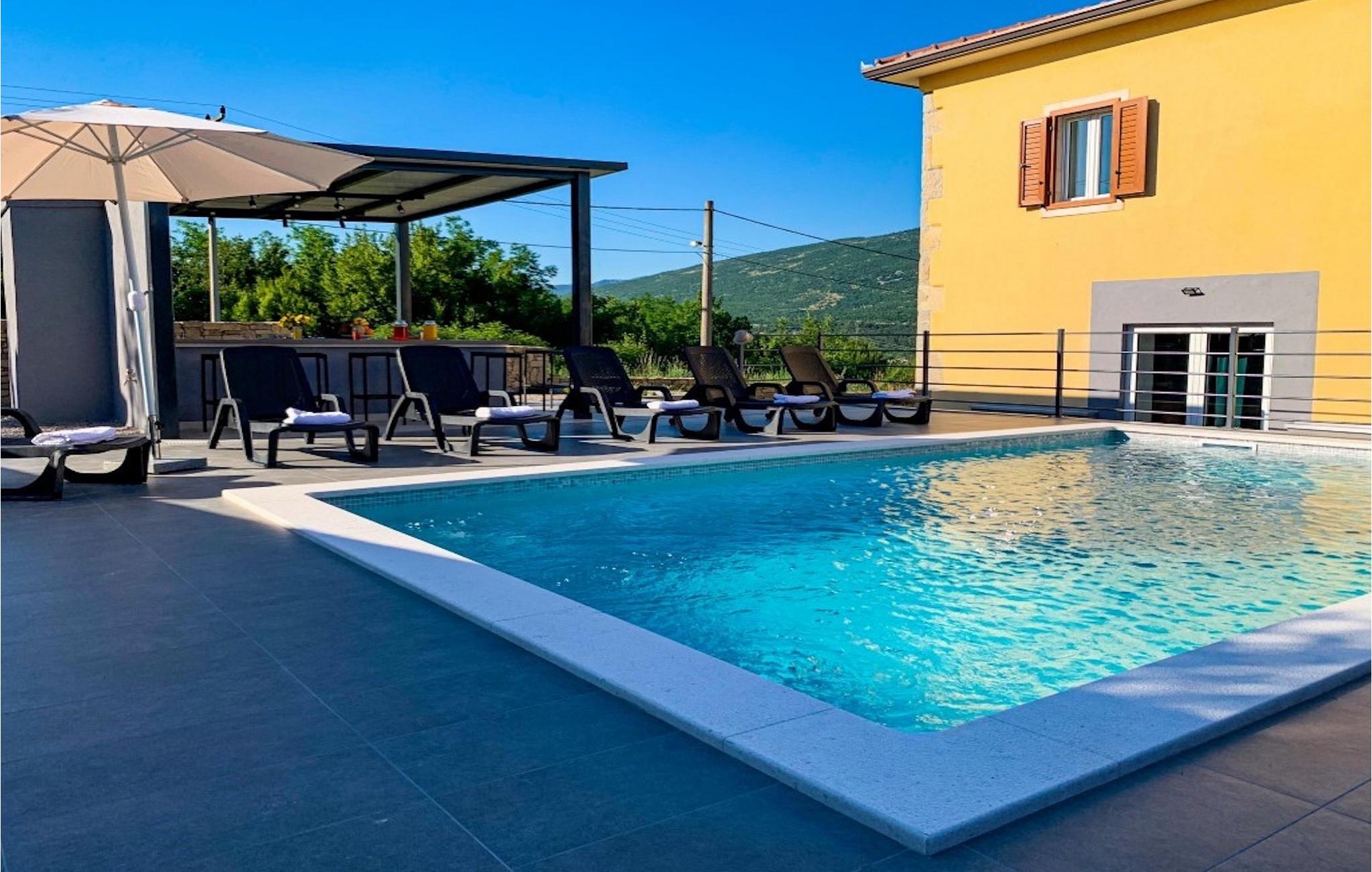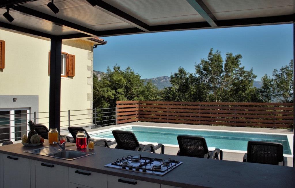Det bedste ved denne villa er absolut dens udendørs område med en vidunderlig pool. Der vil du også blive forbløffet over et veludstyret udekøkken med komfur, køleskab, kulgrill og spiseplads til 8. Slap af i poolen, læn dig tilbage i en af liggestolene under en parasol, nyd en kold drik og få mest muligt ud af din velfortjente ferieVilla Telma ligger i den lille landsby Kostrcani i den østlige del af Istrien-halvøen. Populære turistmål Labin og Rabac ligger kun en kort køretur væk. Labin, en charmerende by på en bakketop, inviterer dig til at gå en tur gennem de dejlige brostensbelagte gader i centrum og nyde et vidunderligt måltid i en af de mange restauranter. Rabac er en lille by, der er bedst kendt for sine smukke strande og et sandt must for alle ivrige strandgængere. De, der søger fred og ro, vil blive glade for at høre, at omgivelserne i villaen er perfekte til gåture i naturen. Hvis du gerne vil holde dig aktiv på din ferie, er der talrige cykelruter i nærheden. Denne del af Istrien giver dig mulighed for at nyde den fantastiske kombination af bjergskovsnatur med udsigt over det blå Adriaterhav.