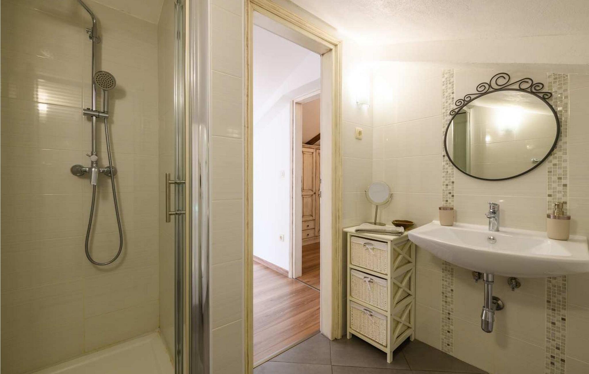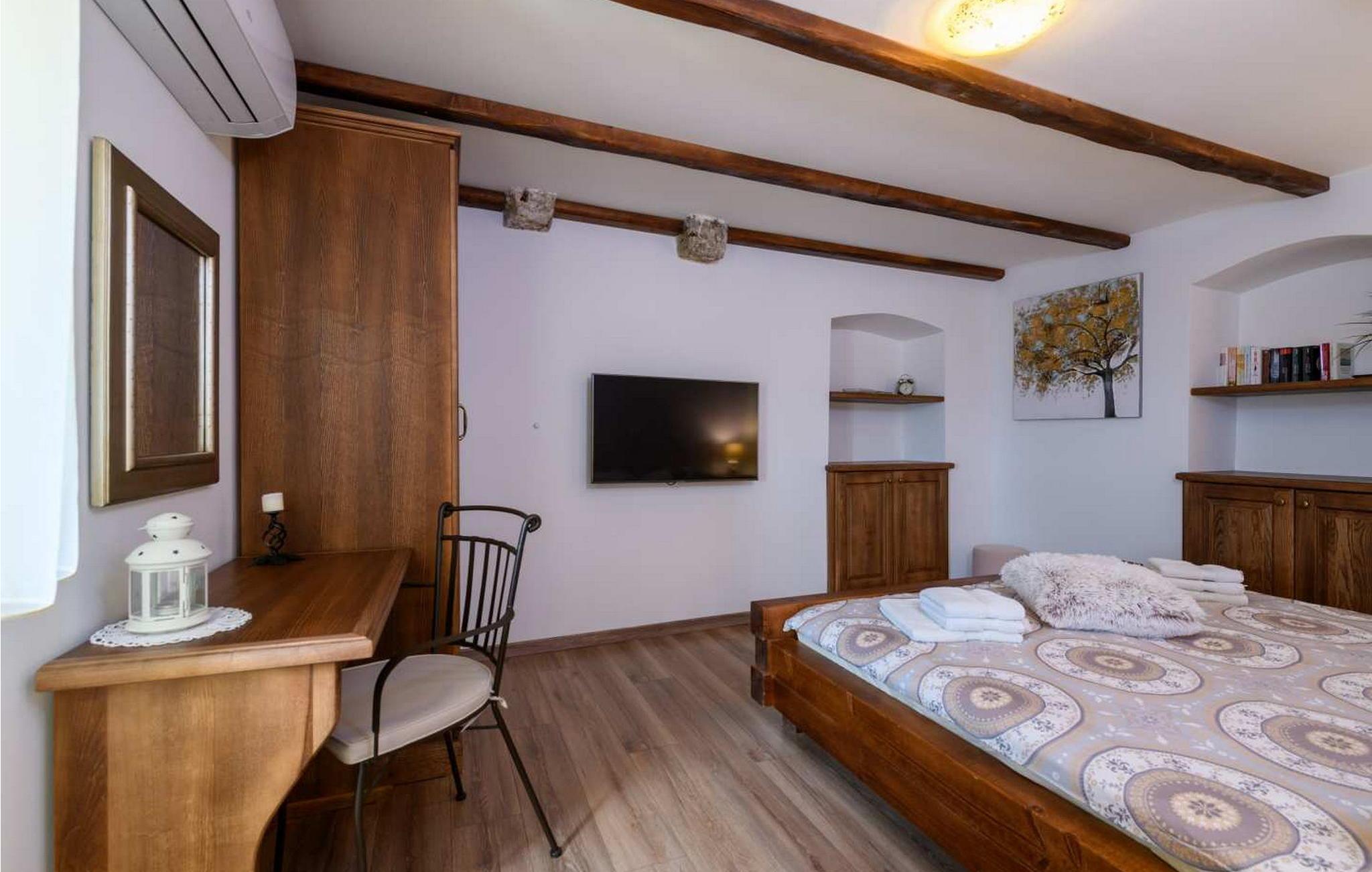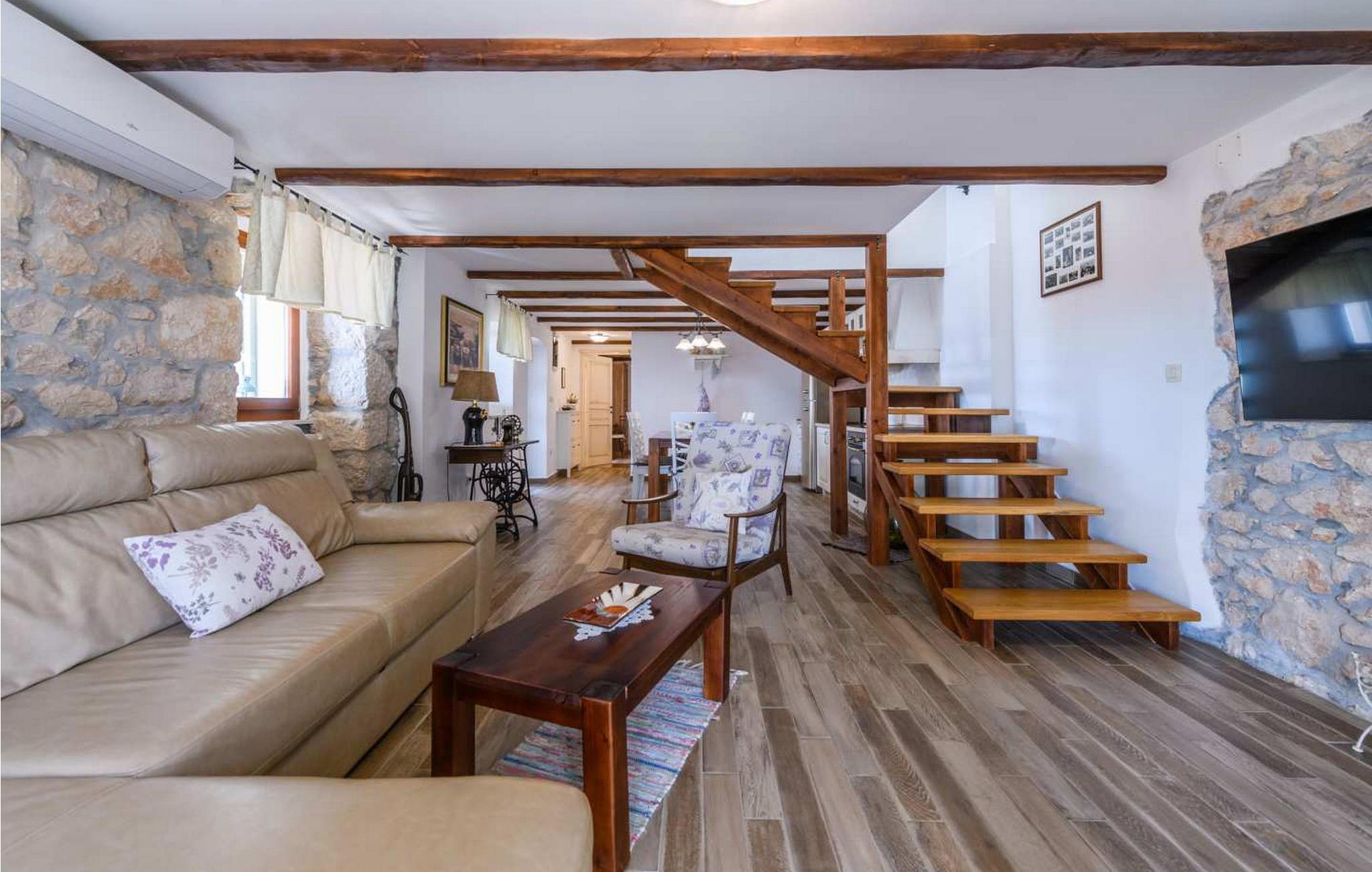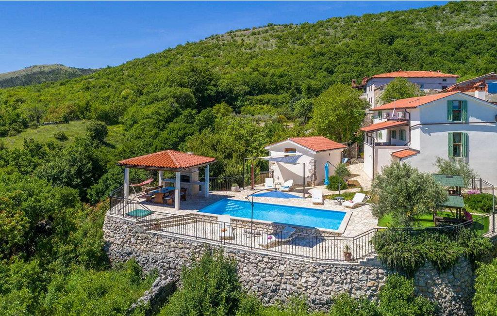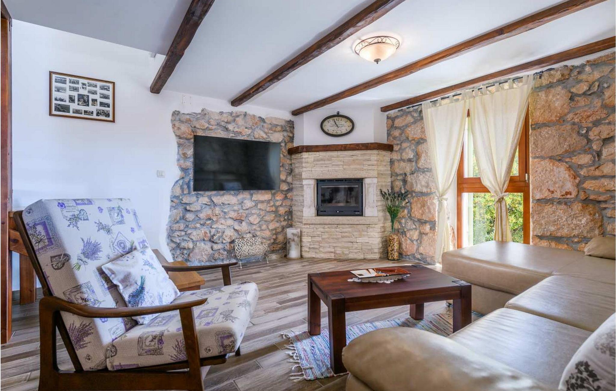 Villa Country Lady er et vidunderligt renoveret gammelt stenhus beliggende i den lille og rolige landsby Kamenjari, hvorfra du kan nyde en smuk panoramaudsigt over havet og de nærliggende øer. I selve landsbyen er der kun ét beboet hus, så det er et ideelt sted for en rolig familieferie. På omkring 5 km afstand ligger byen Brsec, hvor en af de 10 smukkeste strande i Kroatien ligger, der er også en nærmeste butik og en restaurant. Kun 1,5 km længere er havnen Brestova, ideel til daglige ture til øen Cres eller Losinj. Villa er bygget 1820 og renoveret i 2017. På indhegnet grund på 1000 kvm er der en pool på 32 kvm med havvand, overdækket terrasse med grill og spisebord til udendørs spisning, 6 liggestole og 2 parasoller, legeplads for de yngste t. ved siden af poolen, og endnu en legeplads med badmintonbane, fodboldmål og bordtennis. Der er tre parkeringspladser ved siden af huset. Villa på 200 kvm i tre etager i to bygninger. I stueetagen af hovedhuset er en rummelig "konoba" med udstyret køkken og pejs, stort bord med bænke, et separat toilet. Denne del af huset har en separat indgang. På første sal er der en smuk baladur (typisk lille terrasse ved indgangen) med opholdsområde med havudsigt, fuldt udstyret køkken med spisebord, stue med siddesæt og pejs, soveværelse med dobbeltseng og bad/toilet i gangen. På anden sal (loftsrum) er der soveværelse med to enkeltsenge som kan slås sammen, bad/toilet på gangen og soveværelse med dobbeltseng og eget bad/toilet. I det lille hus ved poolen, som har separat indgang, er der endnu et dobbeltværelse med bad/toilet. Feriehuset har unikke detaljer, der giver dette hus en særlig charme. Bemærk venligst, at denne ejendom ikke accepterer ungdomsgrupper eller polterabends. En ungdomsgruppe på denne ejendom er en gruppe bestående af personer på 26 år eller derunder. Book ikke denne ejendom, hvis du er en ungdomsgruppe eller et polterabend, da din reservation vil blive afvist efter booking, hvilket kan omfatte ved ankomst til ejendommen eller under dit ophold, og du vil ikke blive refunderet.