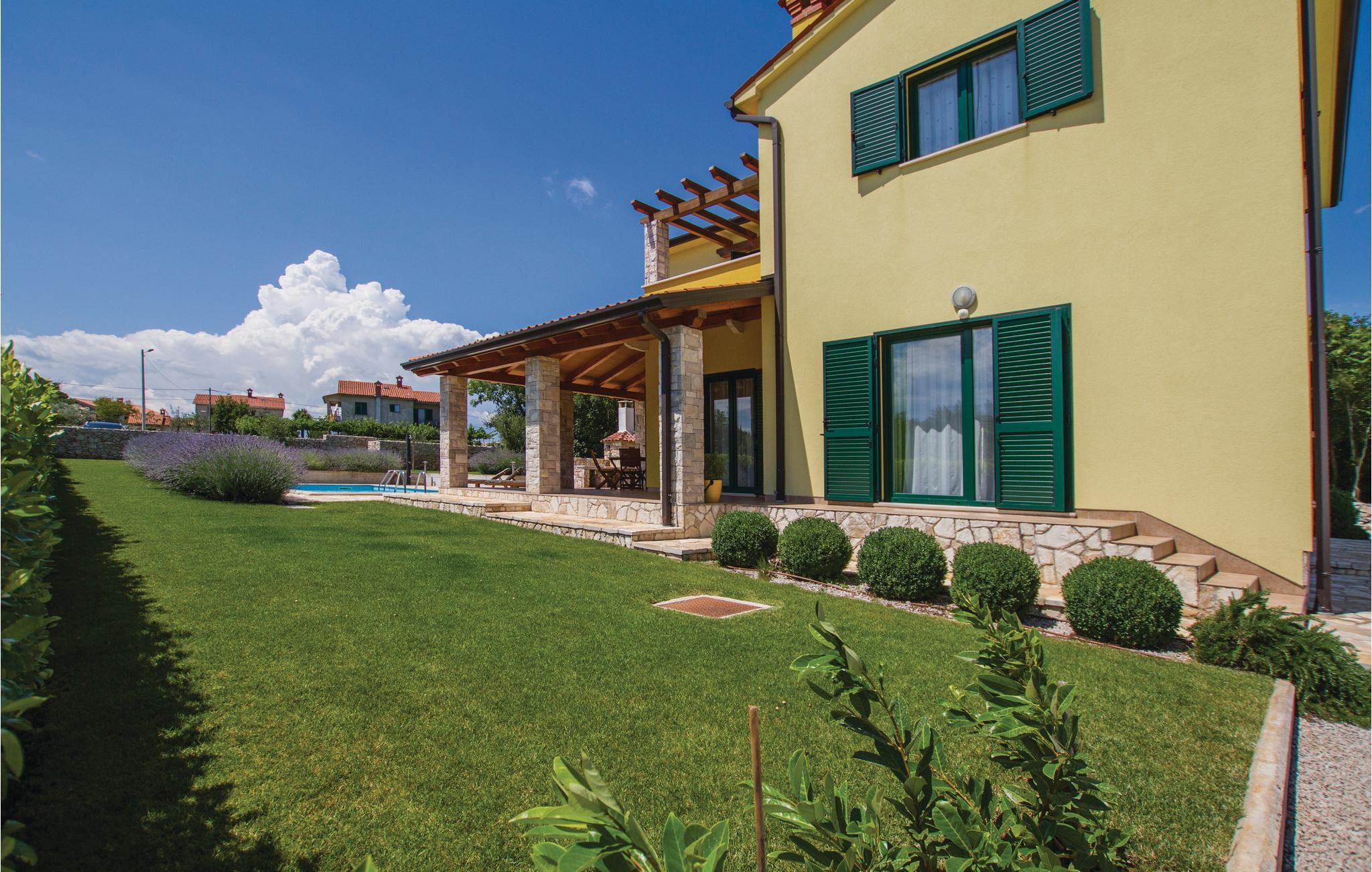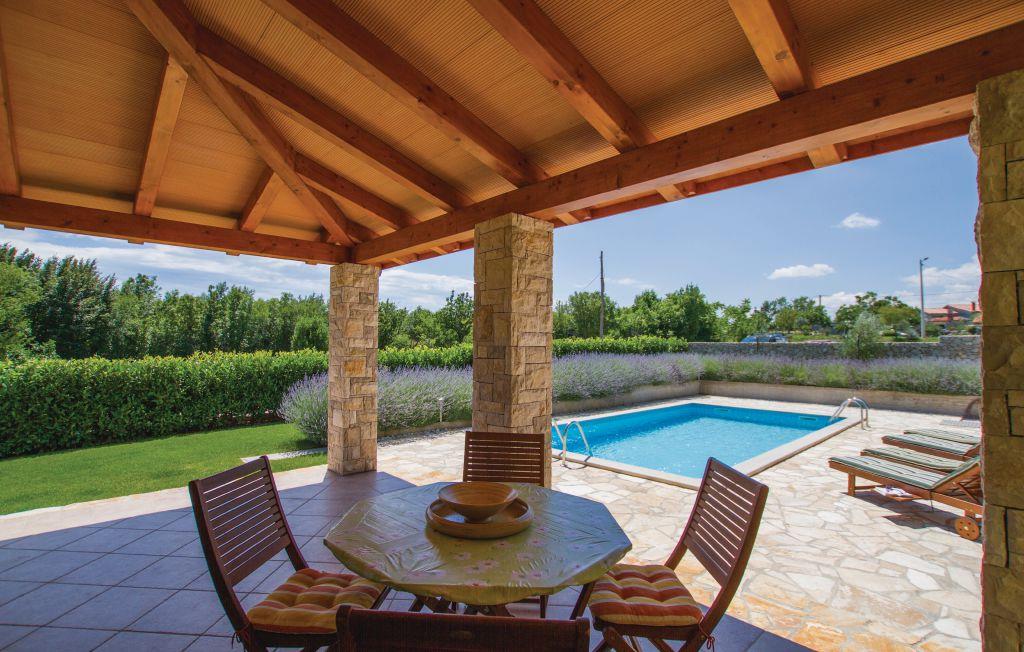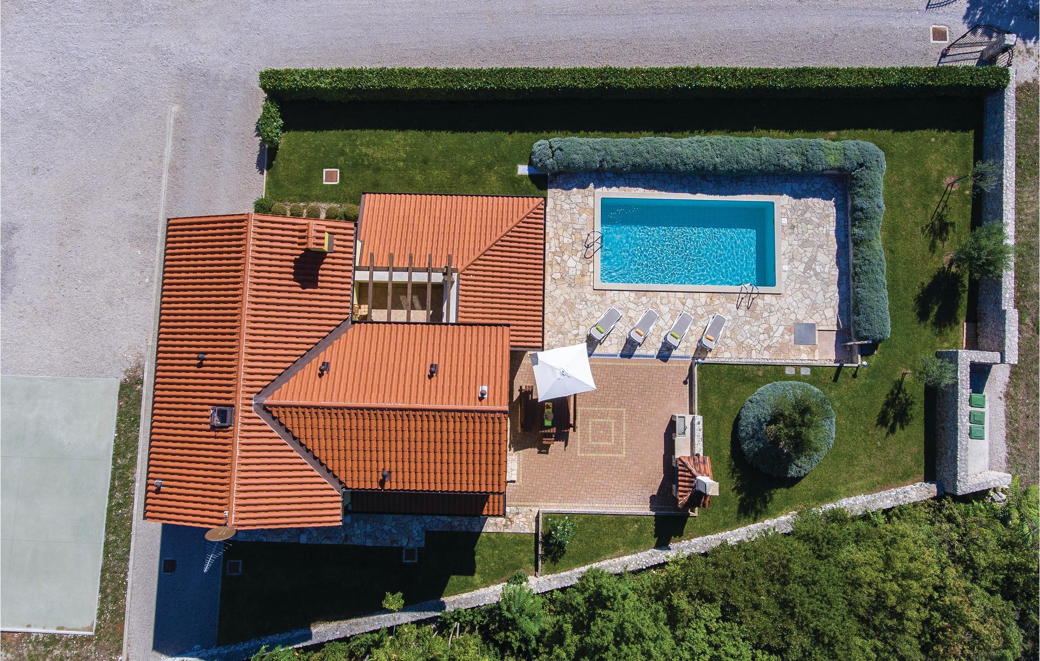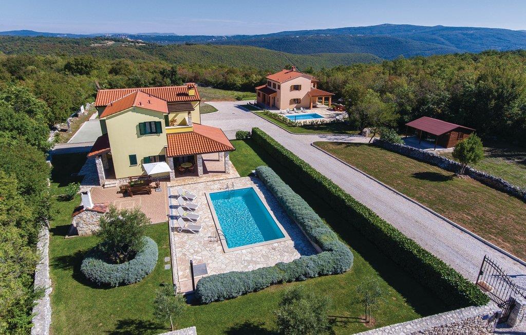 Dejligt feriehus på en stor grund, der er delt med huset CIO009. Husene deler indkørsel, basketballbane og en plæne hvor I kan spille badminton, volleyball og fodbold og hvor der er en legeplads. Husene ligger dog ikke tæt på hinanden og er adskilt af en grøn hæk, så I har god privatsfære, oplagt til en ferie af to familier eller grupper af venner. I haven er der en overdækket terrasse til hyggelige timer i skyggen. Her er også en udendørs pool, ideel til en forfriskende dukkert på de varme sommerdage. Værelserne er meget moderne og funktionelt indrettet samt med behagelige møbler. Her bor I i byen Kunj, kun 8 km fra byen Labin. Den middelalderlige by er også kendt som kunstnernes by. Besøg de lokale restauranter og smag på de lækre traditionelle retter og lokale vine. I kan også besøge den nærliggende by Rabac, der har mange smukke strande.