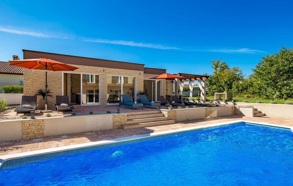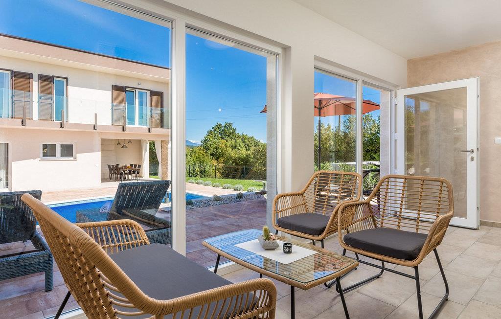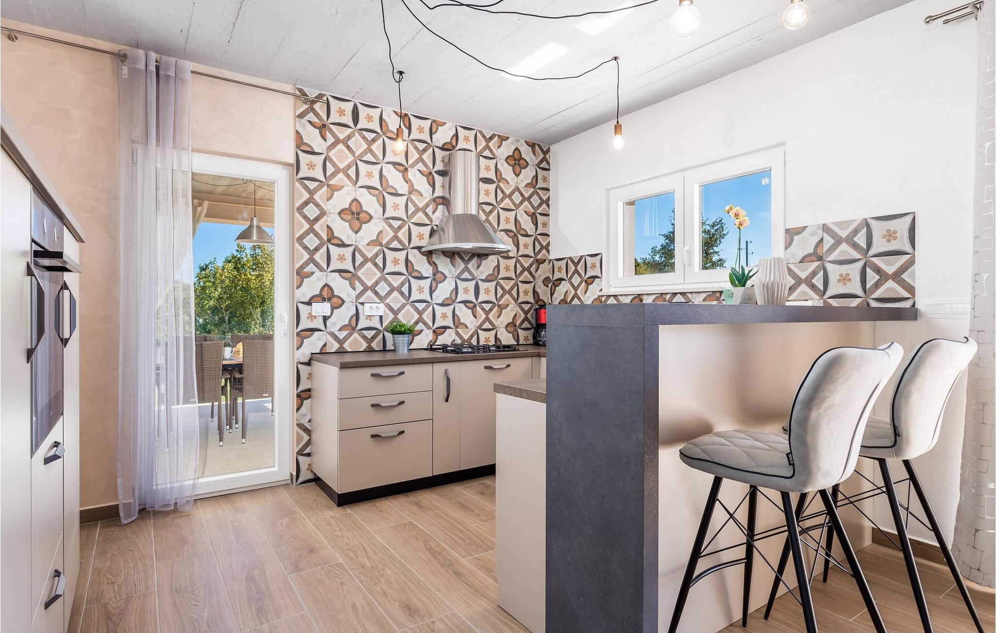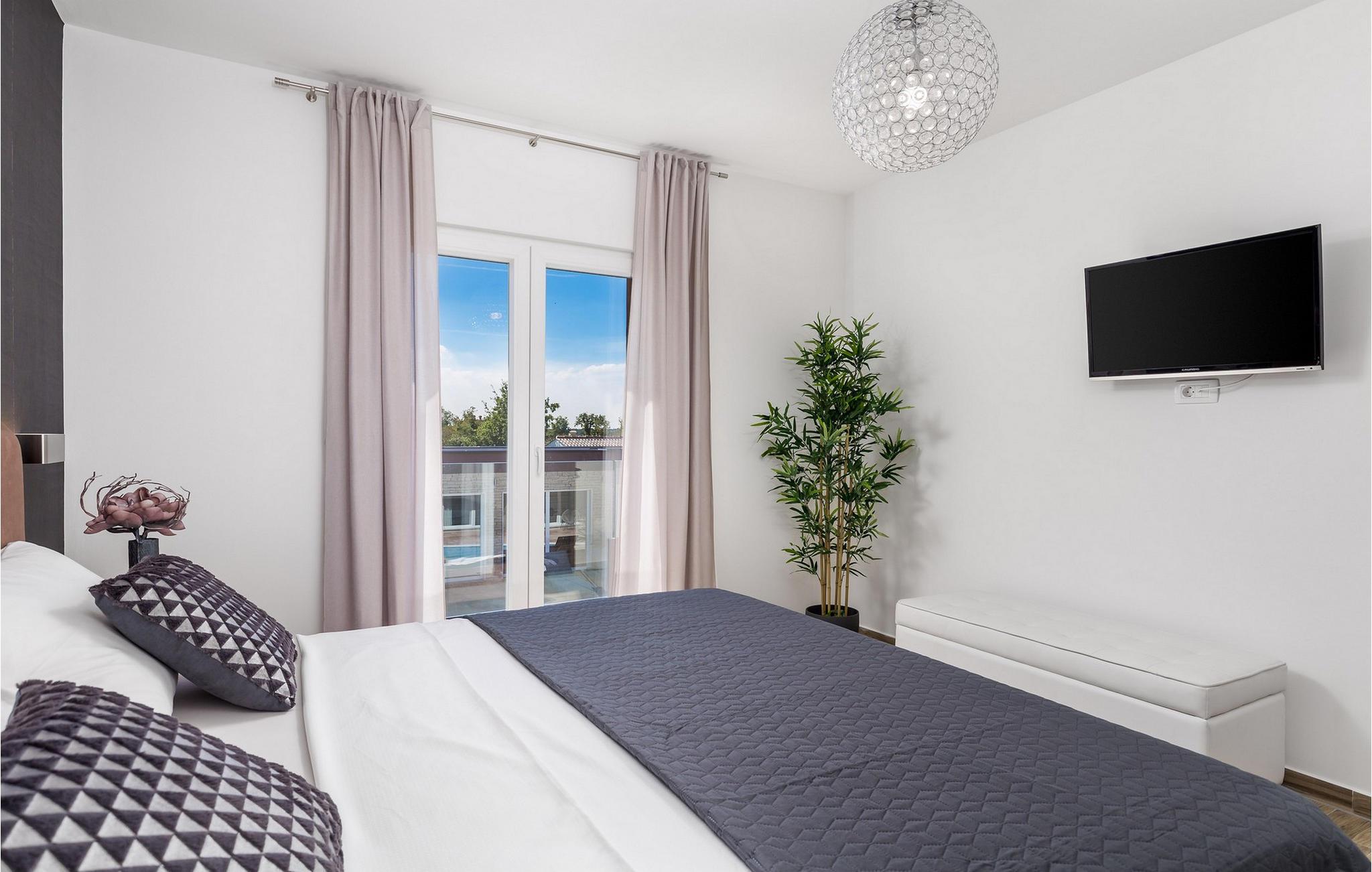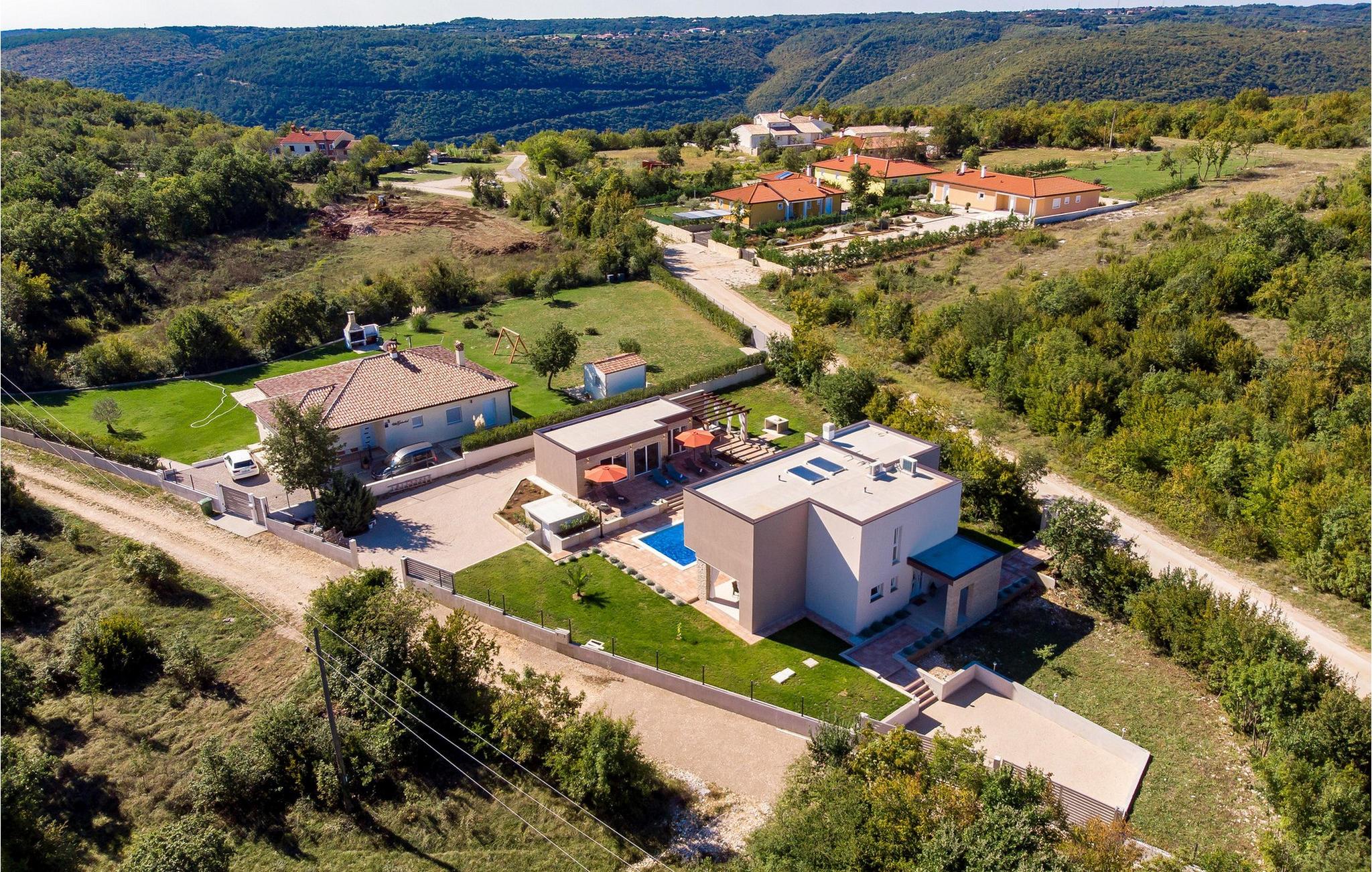 Luxury Villa Kunj ligger i landsbyen Kunj i Istrien. Villa Kunj er det rigtige valg for alle, der ønsker at tilbringe deres ferie i fred og afslapning, mens de nyder det fuldstændige privatliv og luksus i denne smukke villa. Indkvarteringskapacitet for maksimalt 6 personer, den fuldt klimatiserede Villa Kunj har i alt 208 m2 og er indrettet i rustik-moderne stil. Omgivet af uberørt natur og fortryllende grønne områder, tilbyder denne villa dig alt, hvad du nogensinde har drømt om. Ovenpå er der 3 soveværelser med tre dobbeltsenge (180x200) og 3 badeværelser med bruser. I villaens stueetage er der opholdsstue med sofa, kærlighedsstol, lænestol og tv. Det smukt indrettede køkken har alt hvad du behøver for at tilberede dine foretrukne og lækreste måltider, såsom køkkenredskaber, ovn, brødrister, kaffemaskine og vinkøleskab. Køkkenet indeholder også en lille bar med 2 siddepladser. Nær køkkenet er der en spisestue med et bord med plads til 6 og ved siden af er der udgang til den udendørs terrasse. Som ekstraudstyr er der vaskemaskine, tørretumbler og strygejern og villaen har separat toilet. For en ægte følelse af luksus vil du blive overrasket over saunaen, fitnesscentret og jacuzzien, der ligger overfor villaen i en separat bygning og deles ved poolen. Rejser du med børn, kan du bruge foderautomaten og barnesengen. Poolen er på 38 m², og du kan køle af i fuldstændig fred om dagen og om natten. Der er også 6 liggestole omgivet af en åben have og plads nok til, at børn kan lege, og børn kan også more sig på gyngerne. Kul- eller træudendørsgrillen er placeret ved siden af det overdækkede udendørs spisebord med 6 sæder. Du kan benytte 4 private parkeringspladser i gården. Kunj er et lille sted ikke langt fra byen Labin og den istriske kyst med smukke strande og klart hav. Halvøen Istrien byder på mange attraktioner og faciliteter, der er værd at besøge og prøve. Smukke landskaber og solrigt middelhavsklima vil tilbyde dig sjove og interessante dagsture med din familie eller vennegruppe. I byen Labin skal du sørge for at besøge Labin-minen, som tidligere var en vigtig gren af Labin-regionen. Sjov og luksusferie er garanteret! Velkommen til Villa Kunj! Bemærk venligst, at denne ejendom ikke accepterer ungdomsgrupper eller polterabends. En ungdomsgruppe i denne ejendom består af personer under 30 år. Book ikke denne ejendom, hvis du er en ungdomsgruppe eller polterabend, da din reservation vil blive afvist efter reservationen, hvilket også kan være tilfældet ved ankomst til overnatningsstedet eller under dit ophold, og du vil ikke modtage en refusion.