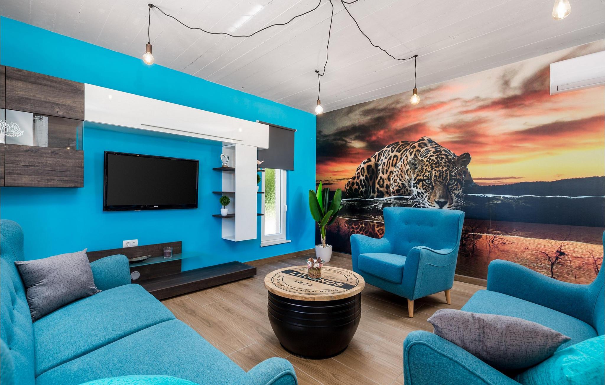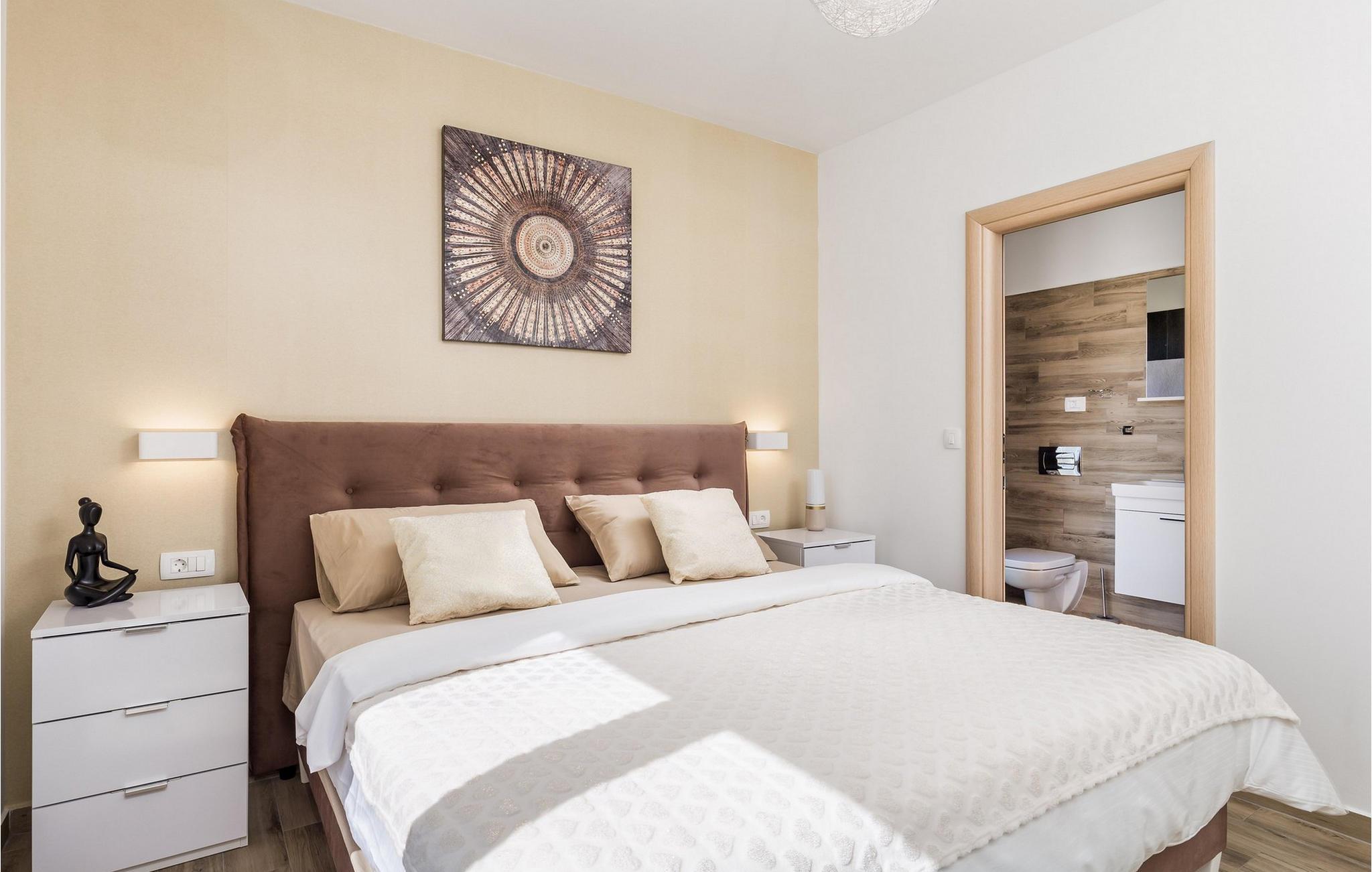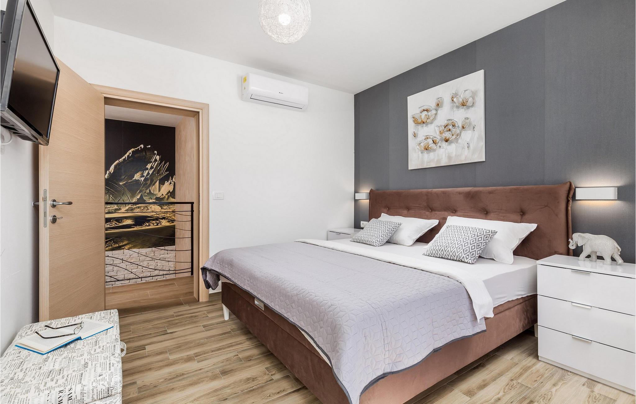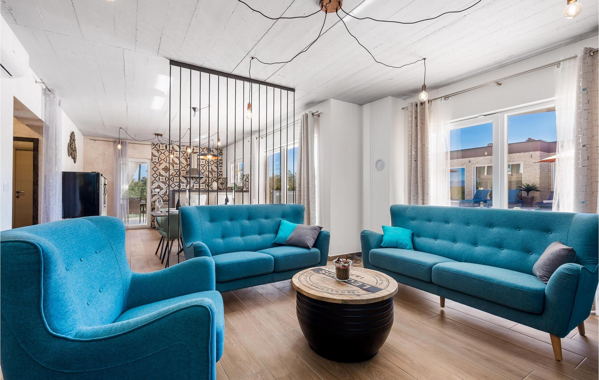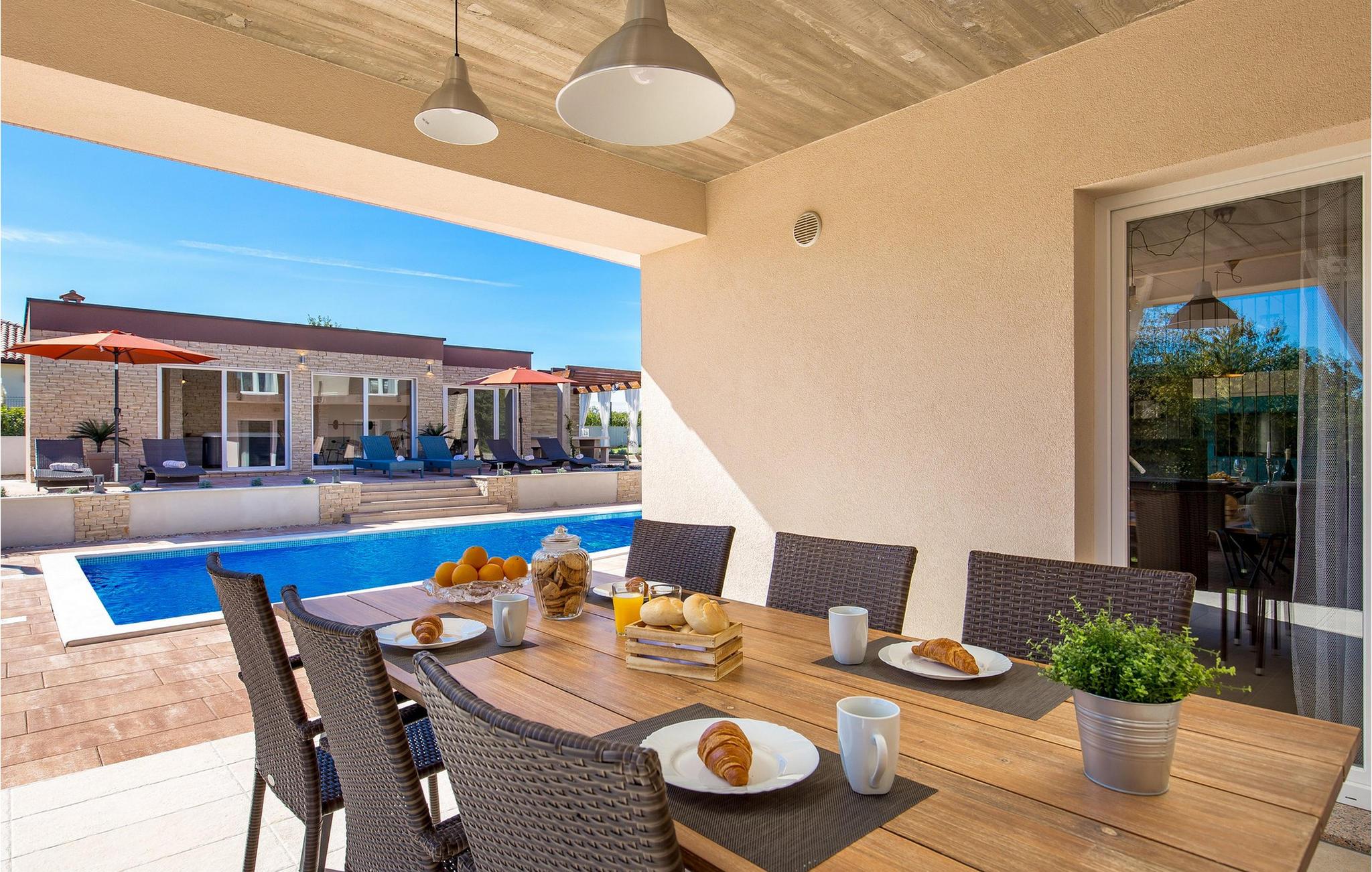 Luxury Villa Kunj ligger i landsbyen Kunj i Istrien. Villa Kunj er det rigtige valg for alle, der ønsker at tilbringe deres ferie i fred og afslapning, mens de nyder det fuldstændige privatliv og luksus i denne smukke villa. Indkvarteringskapacitet for maksimalt 6 personer, den fuldt klimatiserede Villa Kunj har i alt 208 m2 og er indrettet i rustik-moderne stil. Omgivet af uberørt natur og fortryllende grønne områder, tilbyder denne villa dig alt, hvad du nogensinde har drømt om. Ovenpå er der 3 soveværelser med tre dobbeltsenge (180x200) og 3 badeværelser med bruser. I villaens stueetage er der opholdsstue med sofa, kærlighedsstol, lænestol og tv. Det smukt indrettede køkken har alt hvad du behøver for at tilberede dine foretrukne og lækreste måltider, såsom køkkenredskaber, ovn, brødrister, kaffemaskine og vinkøleskab. Køkkenet indeholder også en lille bar med 2 siddepladser. Nær køkkenet er der en spisestue med et bord med plads til 6 og ved siden af er der udgang til den udendørs terrasse. Som ekstraudstyr er der vaskemaskine, tørretumbler og strygejern og villaen har separat toilet. For en ægte følelse af luksus vil du blive overrasket over saunaen, fitnesscentret og jacuzzien, der ligger overfor villaen i en separat bygning og deles ved poolen. Rejser du med børn, kan du bruge foderautomaten og barnesengen. Poolen er på 38 m², og du kan køle af i fuldstændig fred om dagen og om natten. Der er også 6 liggestole omgivet af en åben have og plads nok til, at børn kan lege, og børn kan også more sig på gyngerne. Kul- eller træudendørsgrillen er placeret ved siden af det overdækkede udendørs spisebord med 6 sæder. Du kan benytte 4 private parkeringspladser i gården. Kunj er et lille sted ikke langt fra byen Labin og den istriske kyst med smukke strande og klart hav. Halvøen Istrien byder på mange attraktioner og faciliteter, der er værd at besøge og prøve. Smukke landskaber og solrigt middelhavsklima vil tilbyde dig sjove og interessante dagsture med din familie eller vennegruppe. I byen Labin skal du sørge for at besøge Labin-minen, som tidligere var en vigtig gren af Labin-regionen. Sjov og luksusferie er garanteret! Velkommen til Villa Kunj! Bemærk venligst, at denne ejendom ikke accepterer ungdomsgrupper eller polterabends. En ungdomsgruppe i denne ejendom består af personer under 30 år. Book ikke denne ejendom, hvis du er en ungdomsgruppe eller polterabend, da din reservation vil blive afvist efter reservationen, hvilket også kan være tilfældet ved ankomst til overnatningsstedet eller under dit ophold, og du vil ikke modtage en refusion.