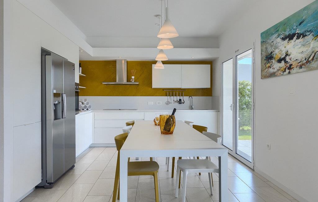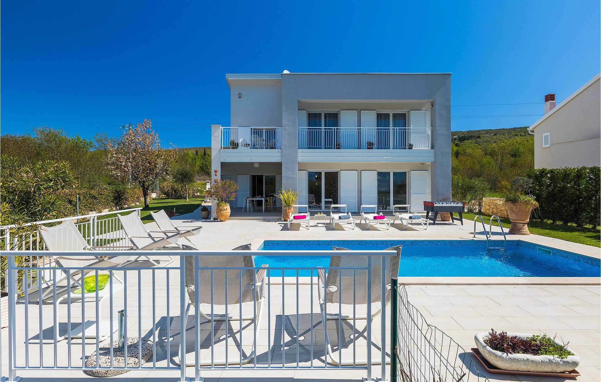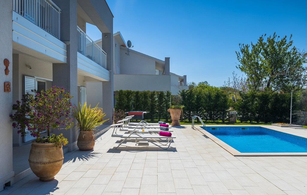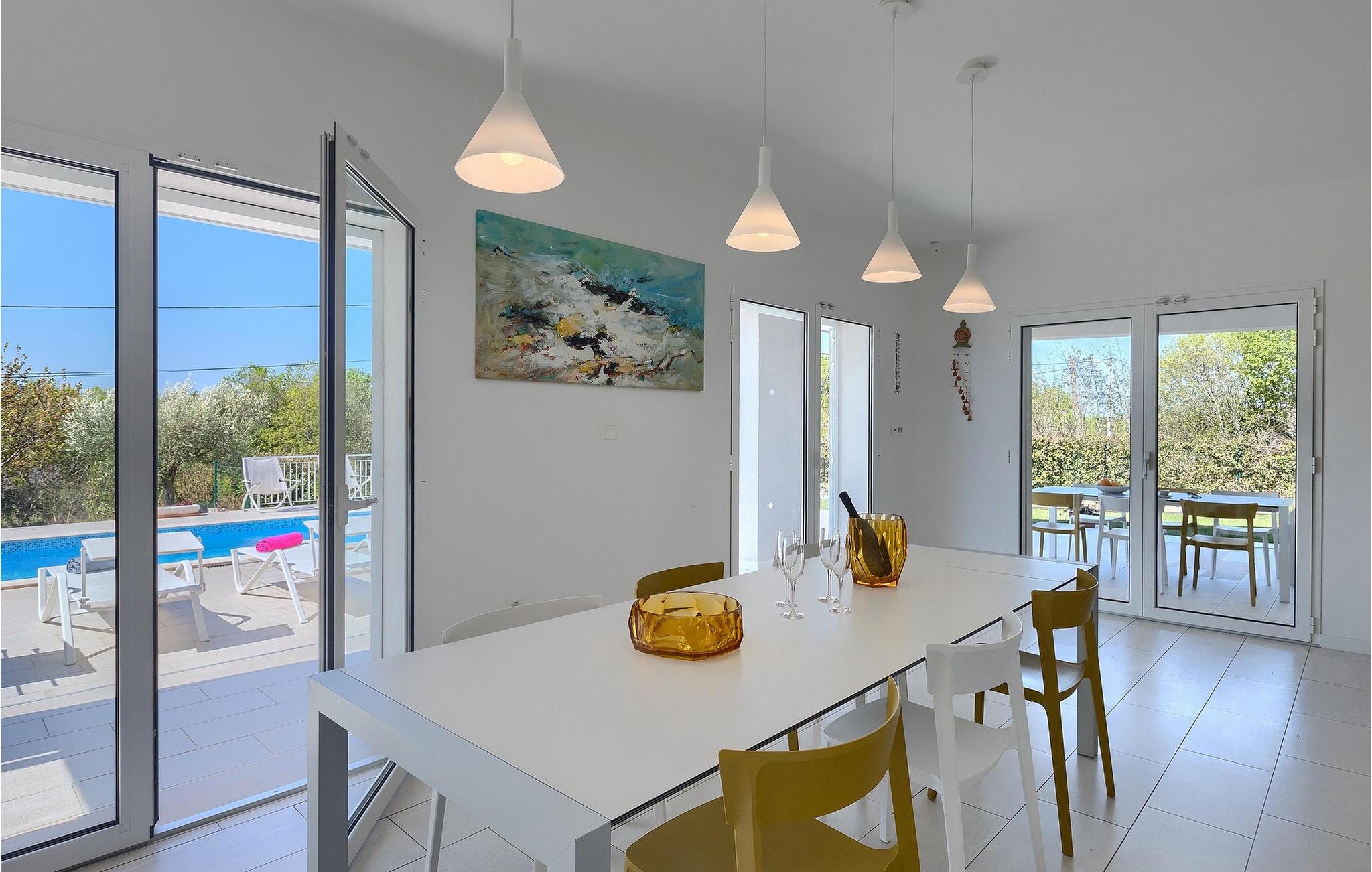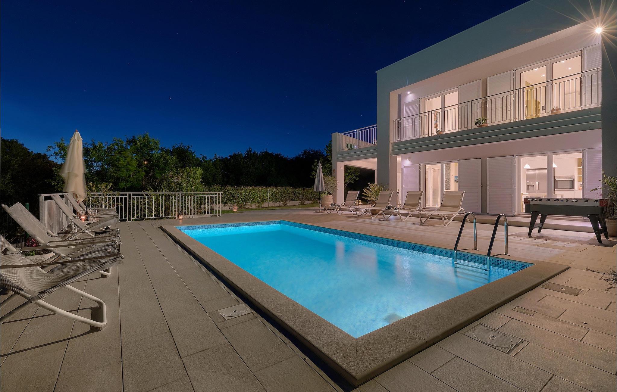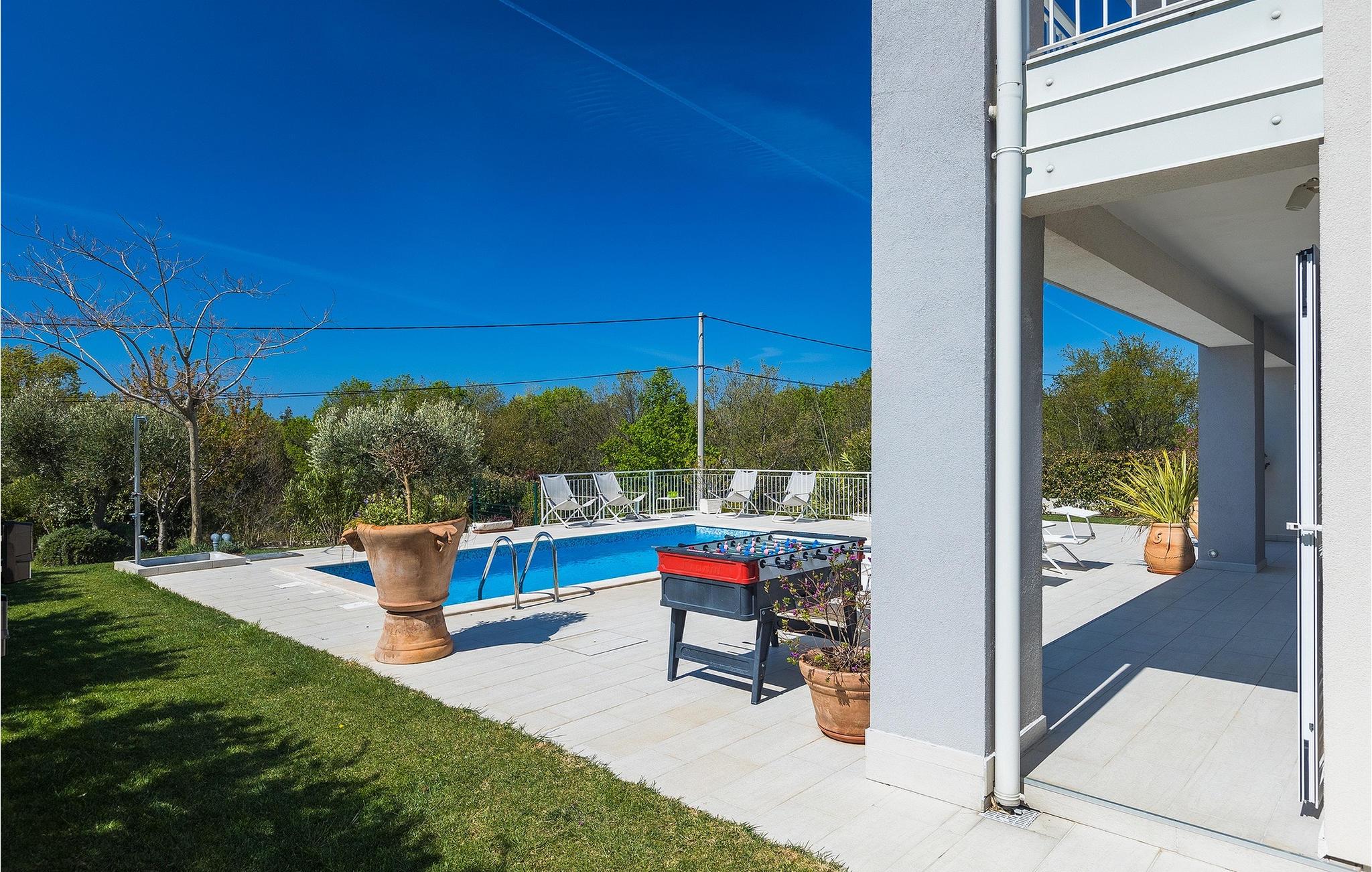 Wunderschöne Villa Debora verfügt über 4 Schlafzimmer und befindet sich im östlichen Teil der Halbinsel Istrien befindet. Sie ist nur ca. 4 km vom Meer entfernt. Die Villa mit ihrem grünen Garten und privatem Pool liegt in einem ruhigen Dorf und ist von idyllischer Natur umgeben. Gemütliche Sonnenliegen neben dem Pool und eine Außenterrasse, auf der Sie Ihre Mahlzeiten zubereiten und genießen können, warten nur darauf, dass Sie hier Ihren Urlaub beginnen! Tischfußball auf der Terrasse neben dem Pool steht Ihnen für mehr Spaß während Ihres Aufenthaltes zur Verfügung, ebenso ein kleiner Fußballplatz und ein Kinderspielplatz, die mit der benachbarten Villa geteilt werden. Die Villa bietet ideale Unterkunft für bis zu 9 Gäste in 4 Schlafzimmern mit jeweils eigenem Badezimmer. Das Erdgeschoss dieser stilvollen Villa besteht aus einer völlig ausgestatteten Küche, einem gemütlichen Wohnzimmer und einem Schlafzimmer mit Badezimmer. In der oberen Etage befinden sich die anderen 3 Schlafzimmer mit Bäder. Die schönen sonnigen Balkone mit herrlichem Blick auf die Natur und das Meer werden sicherlich einer Ihrer Lieblingsorte für Ihren Morgenkaffee oder zum Frühstücken sein. Das Interieur der Villa ist stilvoll und mit Liebe zum Detail eingerichtet, während zugleich sicher gestellt wird, dass Sie alles haben, was Sie für einen wirklich erholsamen Urlaub benötigen.Sveti Lovrec Labinski ist ein kleines Dorf im östlichen Teil Istriens, nur wenige Fahrminuten von der Küste entfernt. Es ist der perfekte Ausgangspunkt für Tagesausflüge zu den berühmten Städte Pula, Opatija und Labin-Rabac. Labin ist das historische und administrative Zentrum von Ost-Istrien. Das Gebiet ist ein Paradies für Geschichts- und Kunstliebhaber mit seinem reichen kulturellen und architektonischen Erbe. In den steilen, gewundenen Gassen der Altstadt befinden sich gut erhaltene historische Paläste, zahlreiche Kunstgalerien und Ateliers. In den Sommermonaten finden verschiedene Jazz- und Klassikfestivals statt. Die Stadt bietet mehrere ausgezeichnete Fischrestaurants, mit vielen lokalen Produkten im Angebot, sowie viele gemütliche Cafés, ideal zum Genießen der entspannten Atmosphäre. Labins Badeort ist Rabac, einst ein Fischerdorf und heute ein beliebtes Touristenziel, umgeben von himmlischen Kiesstränden. Die Ostküste Istriens bietet eine Vielfalt von Stränden und kristallklarem Meer. Die unberührte Küste enthüllt ruhige Buchten mit sanften Kieselsteinen und Felsen, umgeben von immergrünen Wäldern. Mit seinen zahlreichen Küsten- und Waldwegen, ist dieses Gebiet ideal für Mountainbiking, lange entspannende Wanderungen, Reiten, aber auch als Ausgangspunkt für Ausflüge, um das magische Istrien zu entdecken.