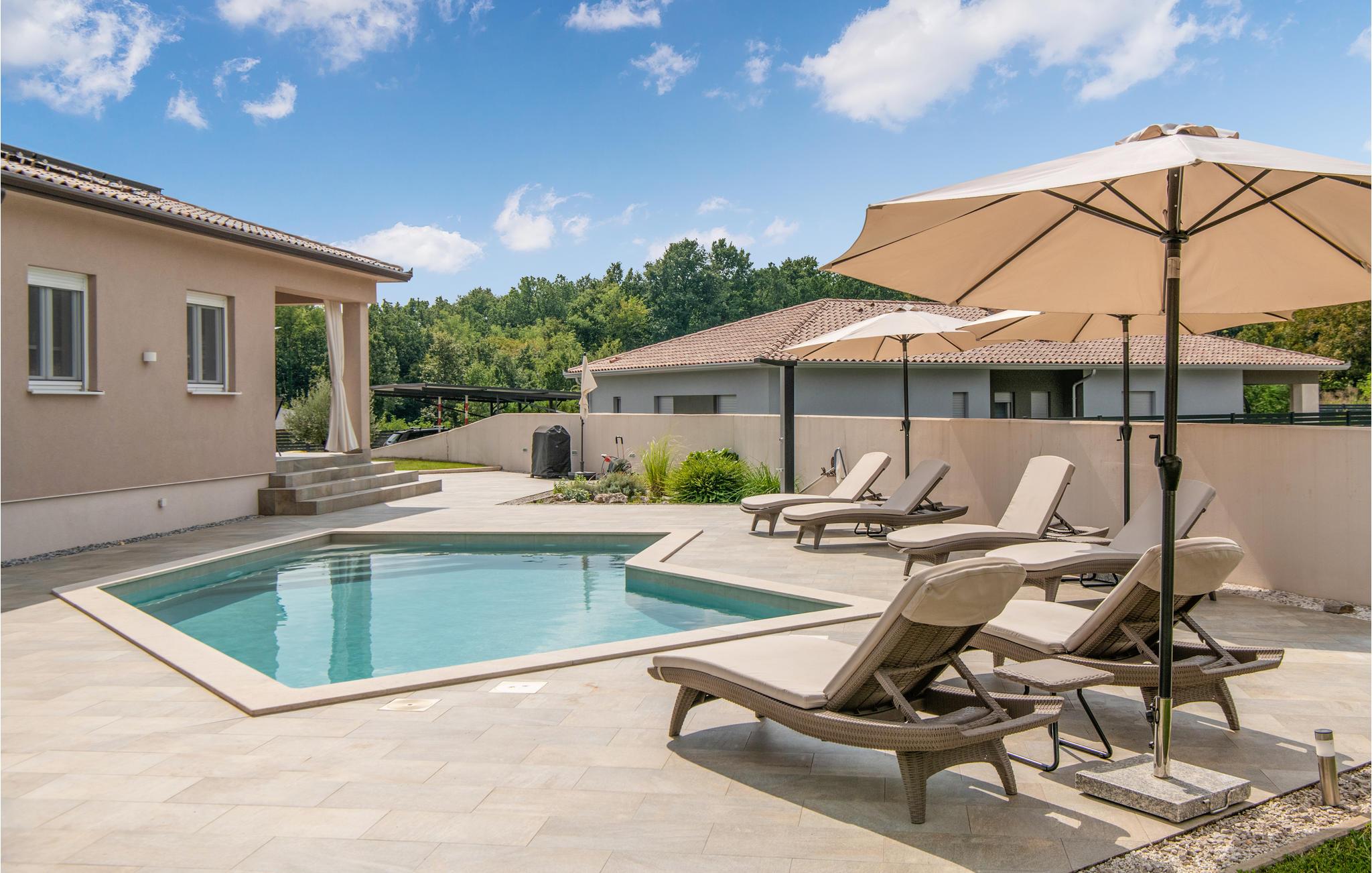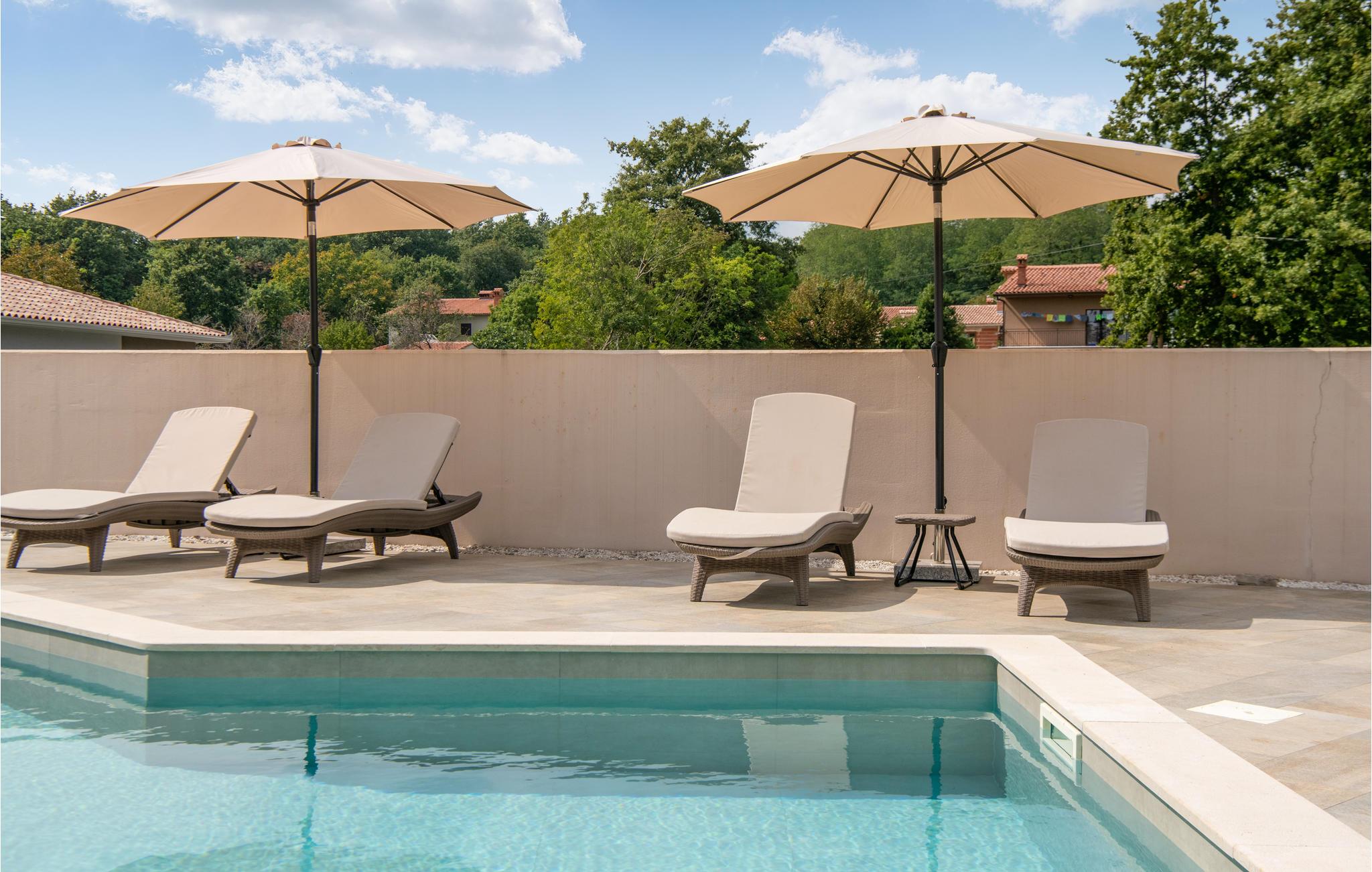 Dette skønne feriehus ligger i den lille landsby Marceljani, tæt på to af Istriens smukkeste udflugtsmål. Det maleriske Labin, der ligger på toppen af en høj, og Rabac byen med nogle af regionens smukkeste strande. Huset har tre soveværelser, to badeværelser, toilet, køkkenalrum, en overdækket terrasse samt pool, hvor I helt sikkert kommer til at opholde jer mange timer. I det nærliggende Labin vil der hen over sommeren være flere underholdningsarrangementer, som er værd at besøge. Dagsudflugter til Pula og Nationalparken på Brijuni øen eller Rovinj skal den nysgerrige feriegæst heller ikke snyde sig selv for.