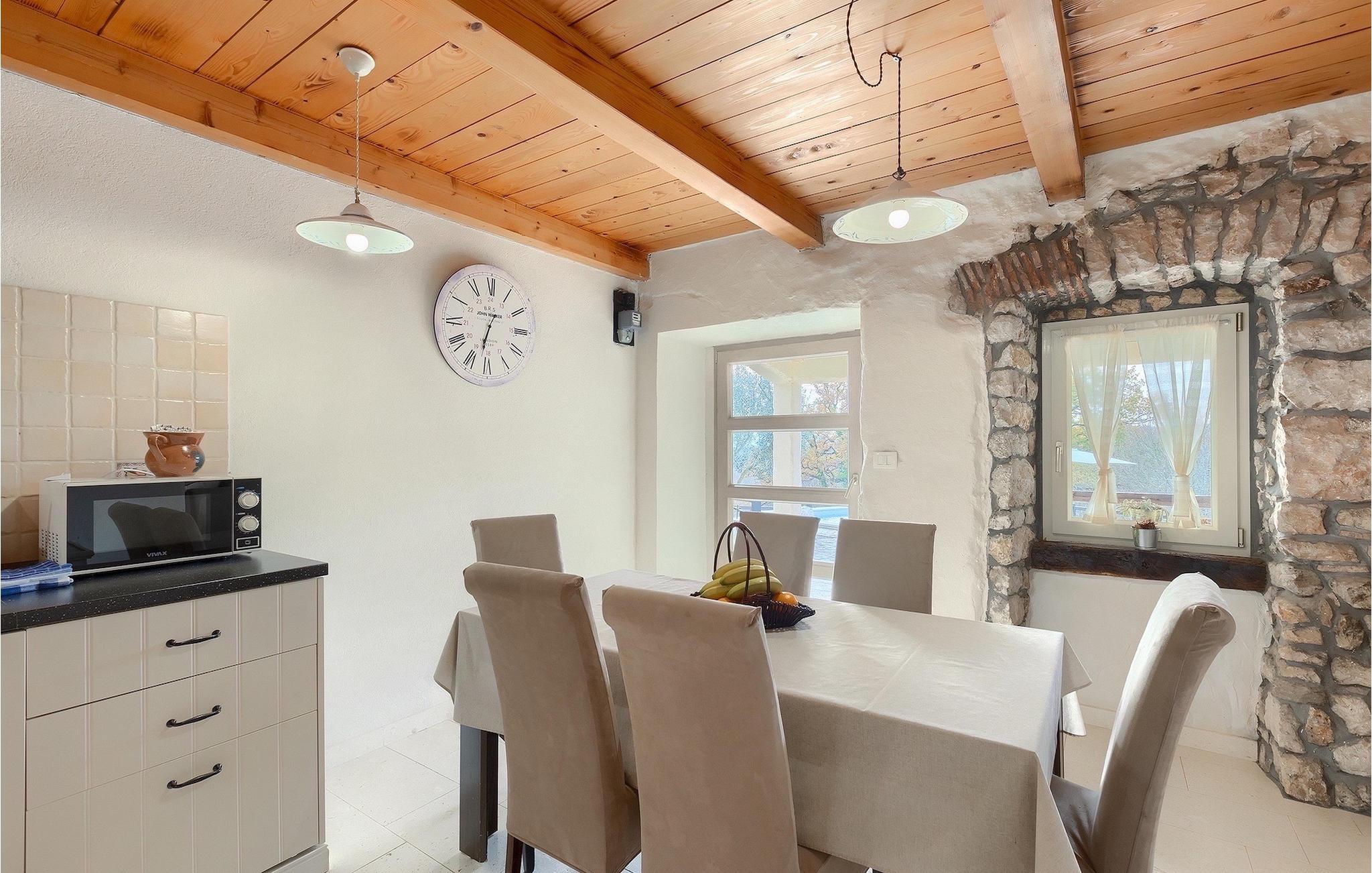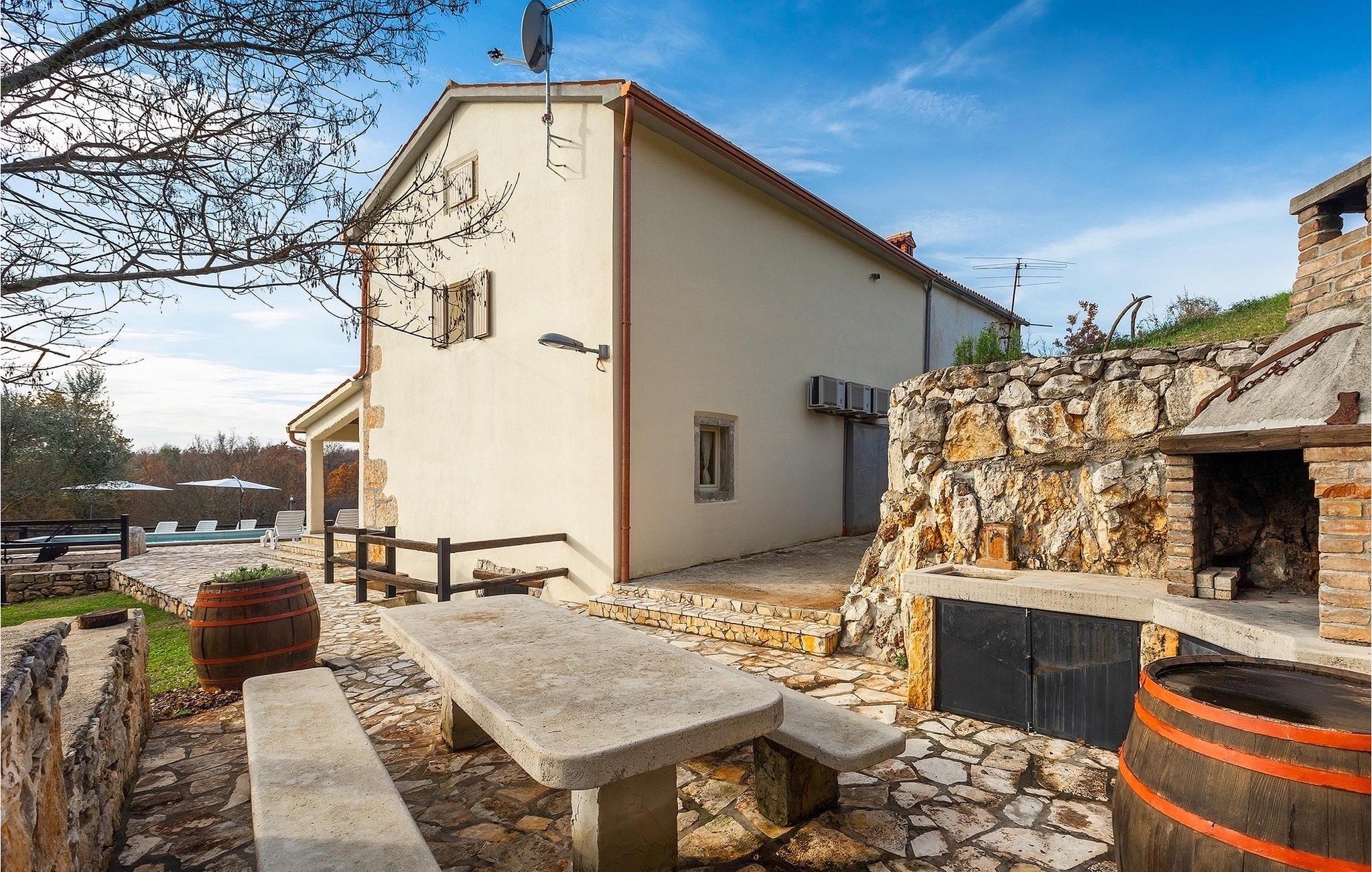 Villa Octingenti er det perfekte valg, hvis du leder efter en malerisk villa omgivet af idyllisk landskab, væk fra folkemængderne. Ferievillaen kan rumme op til 4+2 personer i 2 soveværelser, hvilket gør den ideel til en familie- eller parferie. En swimmingpool og liggestole er til rådighed for en uforglemmelig ferie. Slap af med en drink eller en god bog i den varme istriske sol. Den overdækkede terrasse i umiddelbar nærhed af poolen beskytter dig mod den stærke sol og giver plads til at nyde. Der er også en grill, så du kan forkæle dine kære. Den istriske charme strækker sig gennem hele villaen. I stueetagen er der opholdsstue med udgang til udearealet, fuldt udstyret køkken med spiseplads og separat toilet. På første sal er der 2 soveværelser med hvert sit badeværelse. Book Villa Octingenti til din næste ferie. Vi er sikre på, at du får en afslappende ferie og glemmer hverdagens stress og jag. Villa Octingenti ligger midt i det smukke bakkede landskab i Istrien og tilbyder et godt udgangspunkt for at udforske denne uberørte region. I nærheden ligger byen Labin, kendt som en kunstnerby. Besøg den gamle bydel, som ligger på en bakke, hvorfra du har en fortryllende udsigt over kysten og Kvarner-øerne. Ikke langt fra Labin ligger det populære turistcenter Rabac. En lille fiskerby, der med tiden har udviklet sig til en populær sommerdestination. Smukke strande, klart hav og et fremragende gastronomisk tilbud præger den lille by. For alle naturelskere og aktive feriegæster anbefaler vi at besøge Ucka Naturpark. Hvis du vil udforske det omkringliggende område, så besøg Opatija eller Pula, to smukke turistbyer ved kysten, udsmykket med en rig historie og kulturarv.