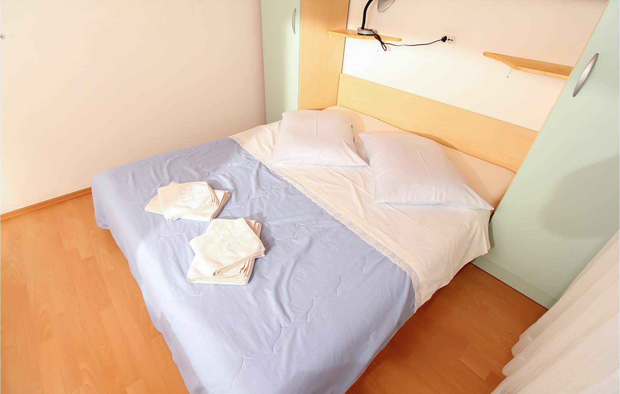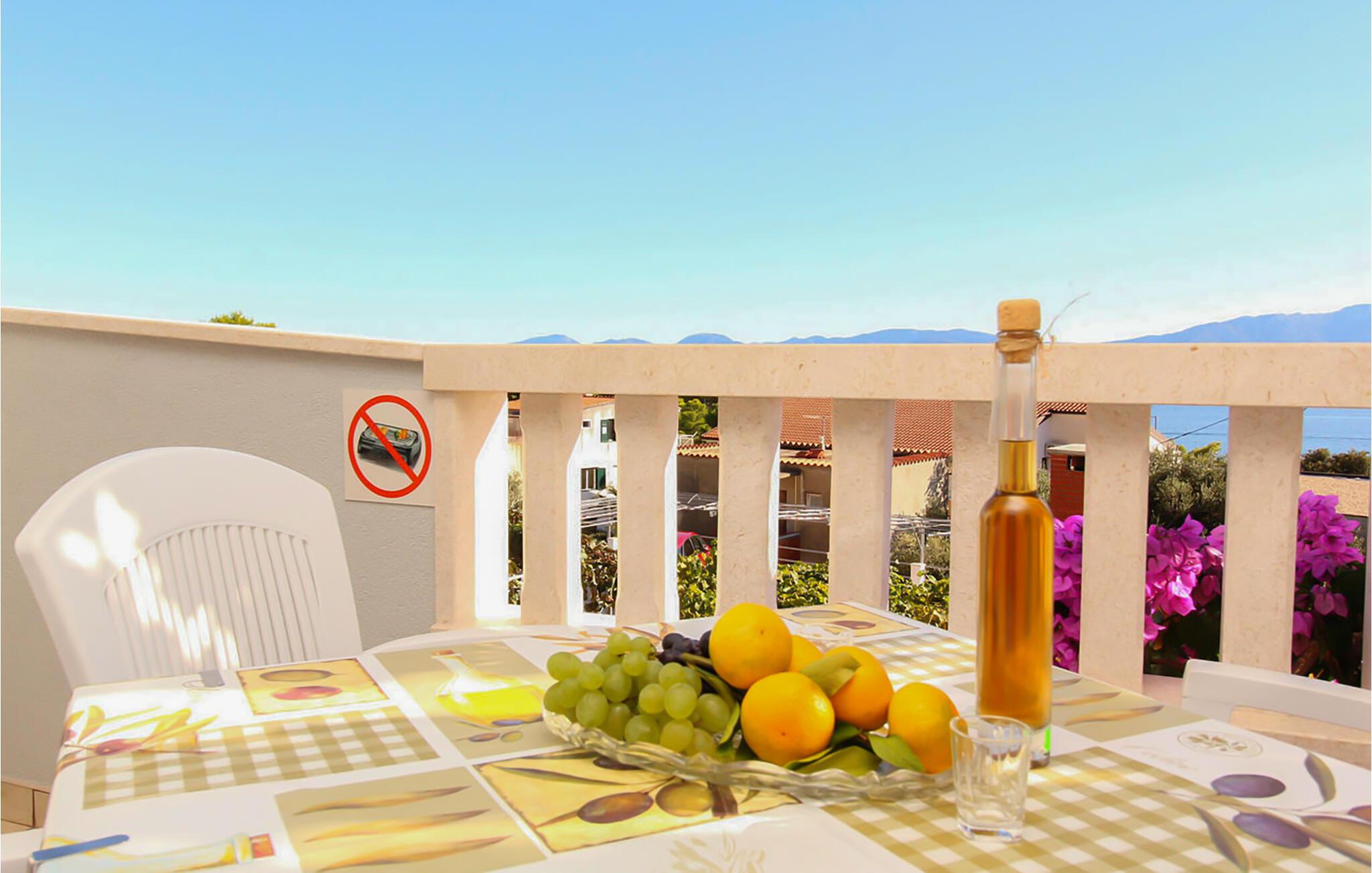Denne lyse og praktisk indrettede lejlighed ligger kun få skridt fra en dejlig stenstrand og tilbyder et komfortabelt tilflugtssted, hvor I kan lægge hverdagen bag jer i intim samvær. Forkæl hinanden med middelhavsretter, planlæg jeres aktiviteter over afslappede måltider og find jer til rette efter en begivenhedsrig dag med en bog eller et brætspil.