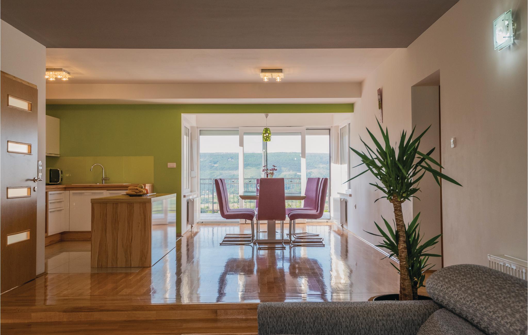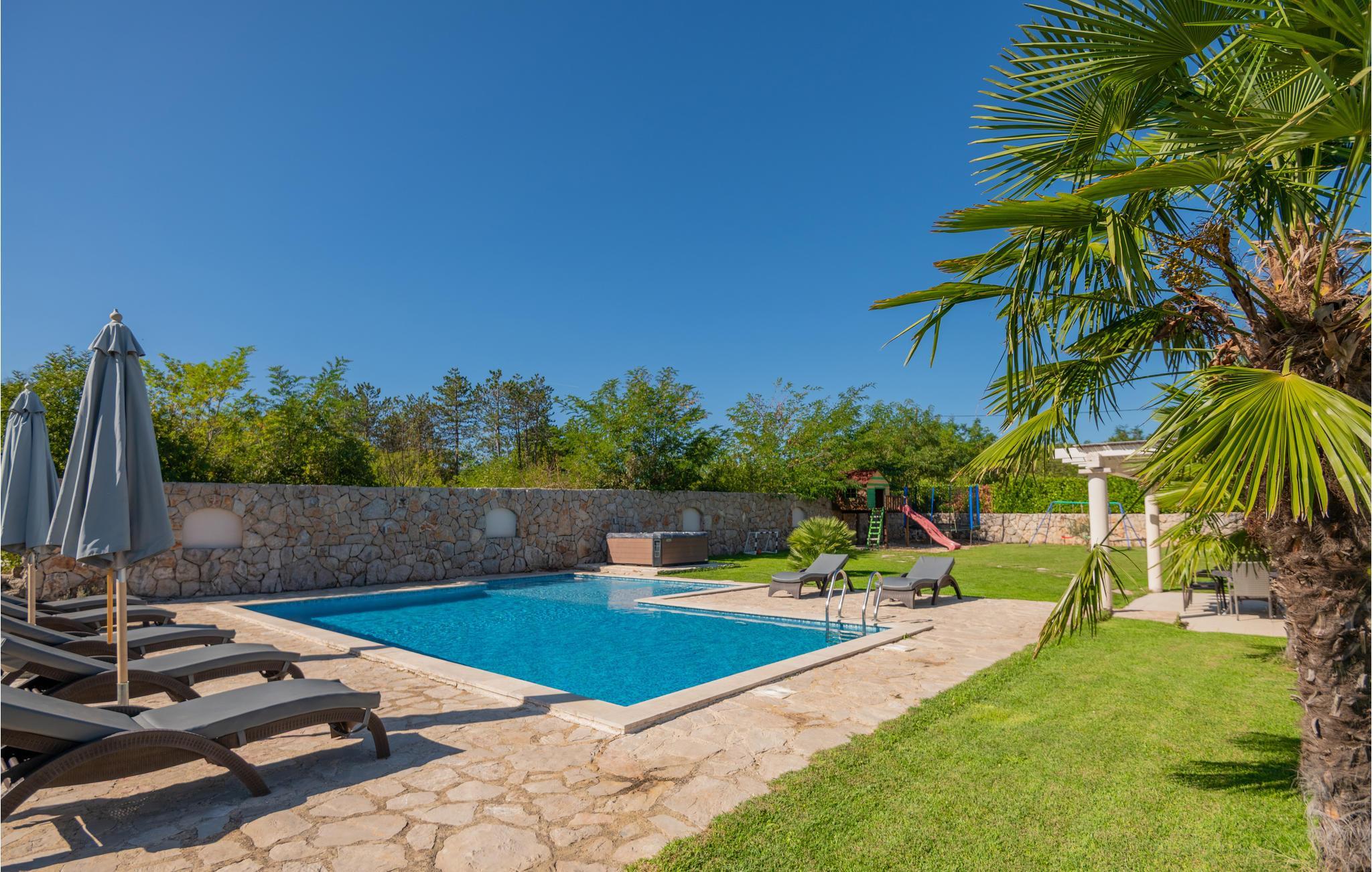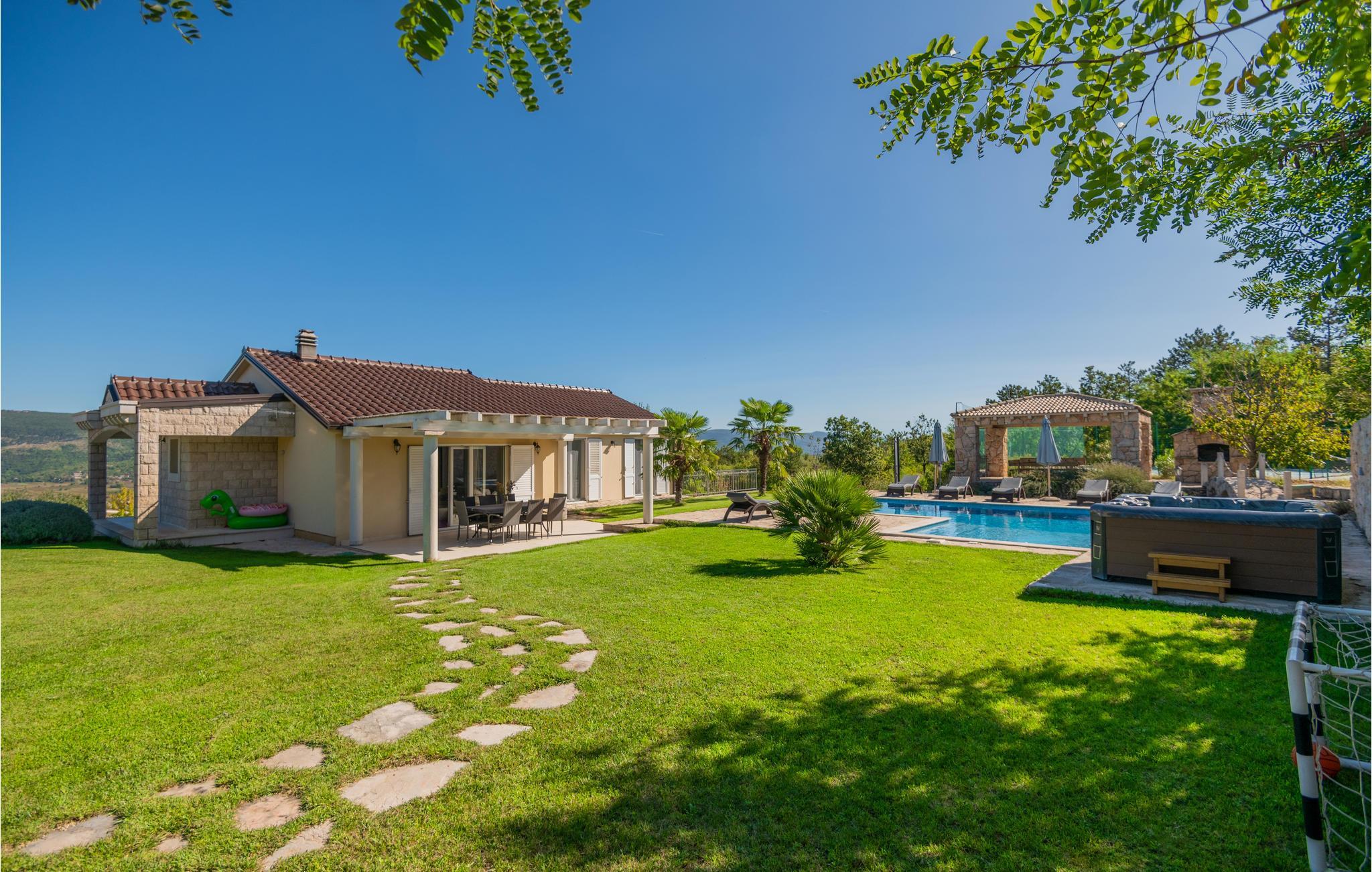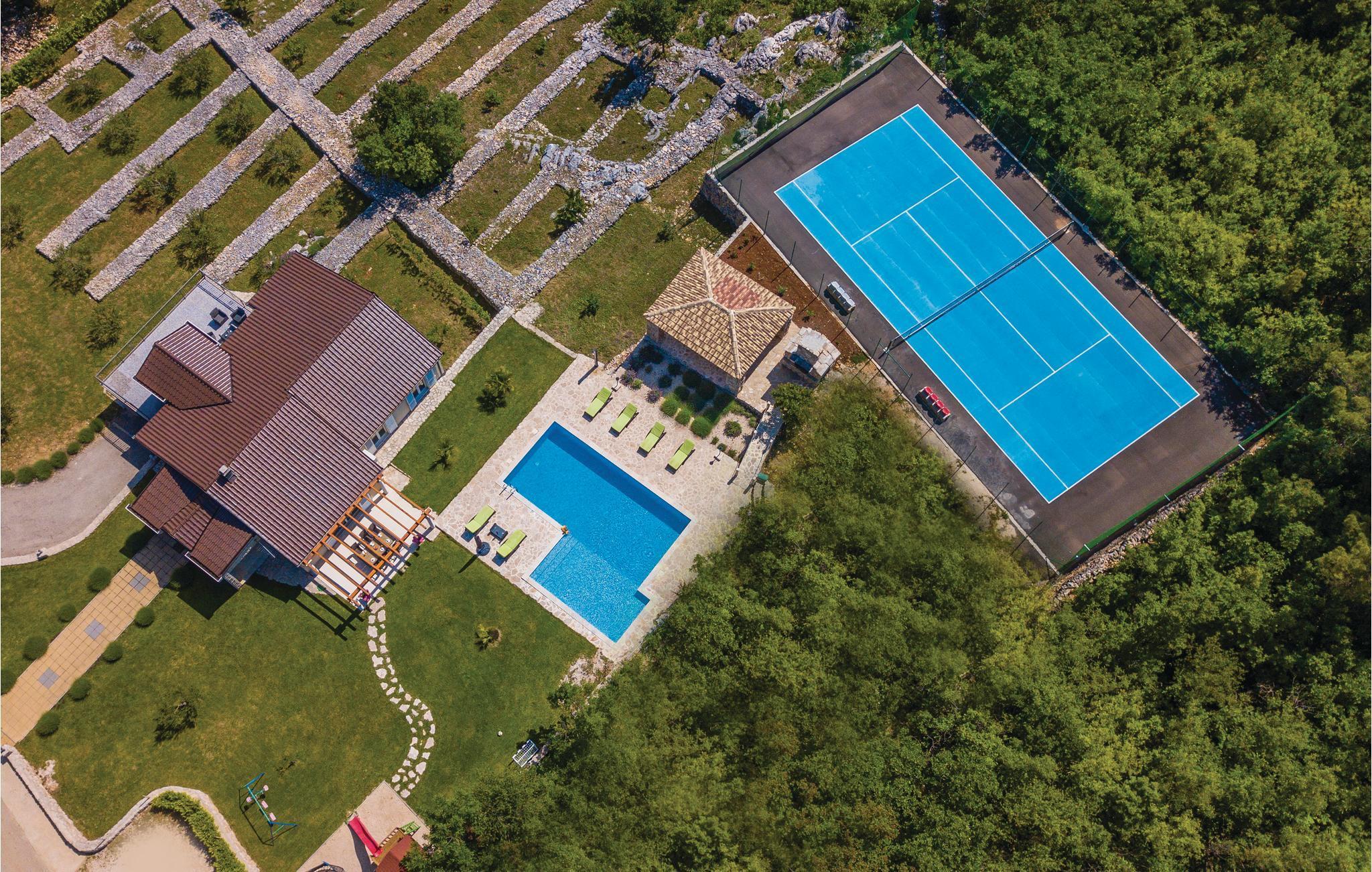 Fra terrassen på husets nordside er der en dejlig udsigt ud over byen Imotski og Crveno i Lavo Jezerosøen. I haven på sydsiden er den store swimmingpool og en overdækket terrasse med grill. Her findes desuden en multisportsplads til tennis, fodbold og basketball samt et boblebad fra 2021.