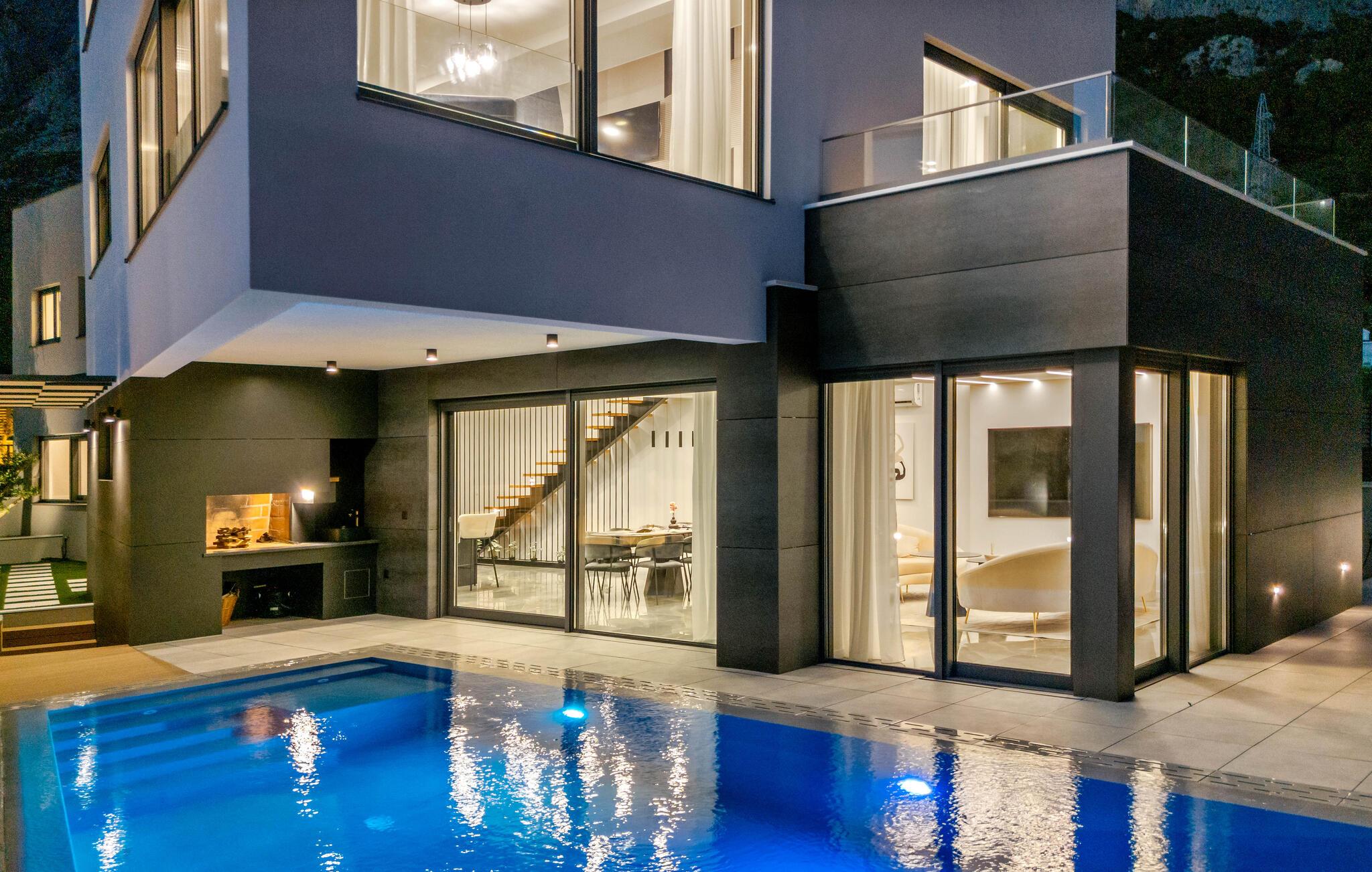 Tilbring masser af tid udendørs, hvor poolen byder på en forfriskende dukkert på varme dage, og hvor de mange terrasser indbyder til, at I kan nyde solen og den smukke udsigt i fulde drag. Se jeres børn lege glade og server en lækker middag fra grillen under åben himmel.
