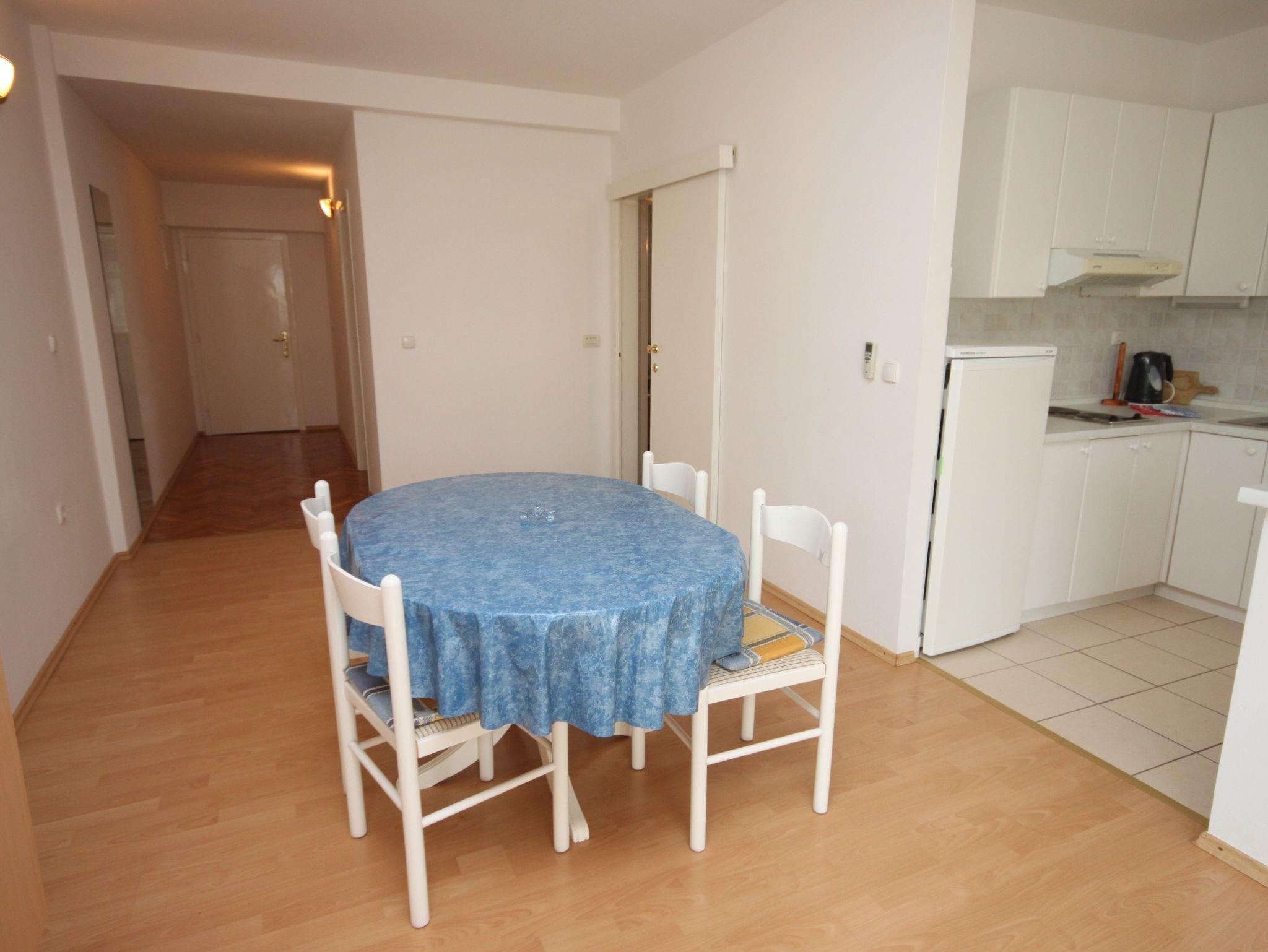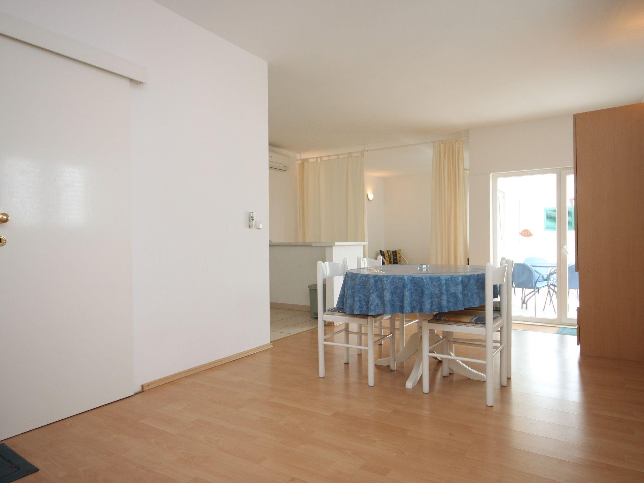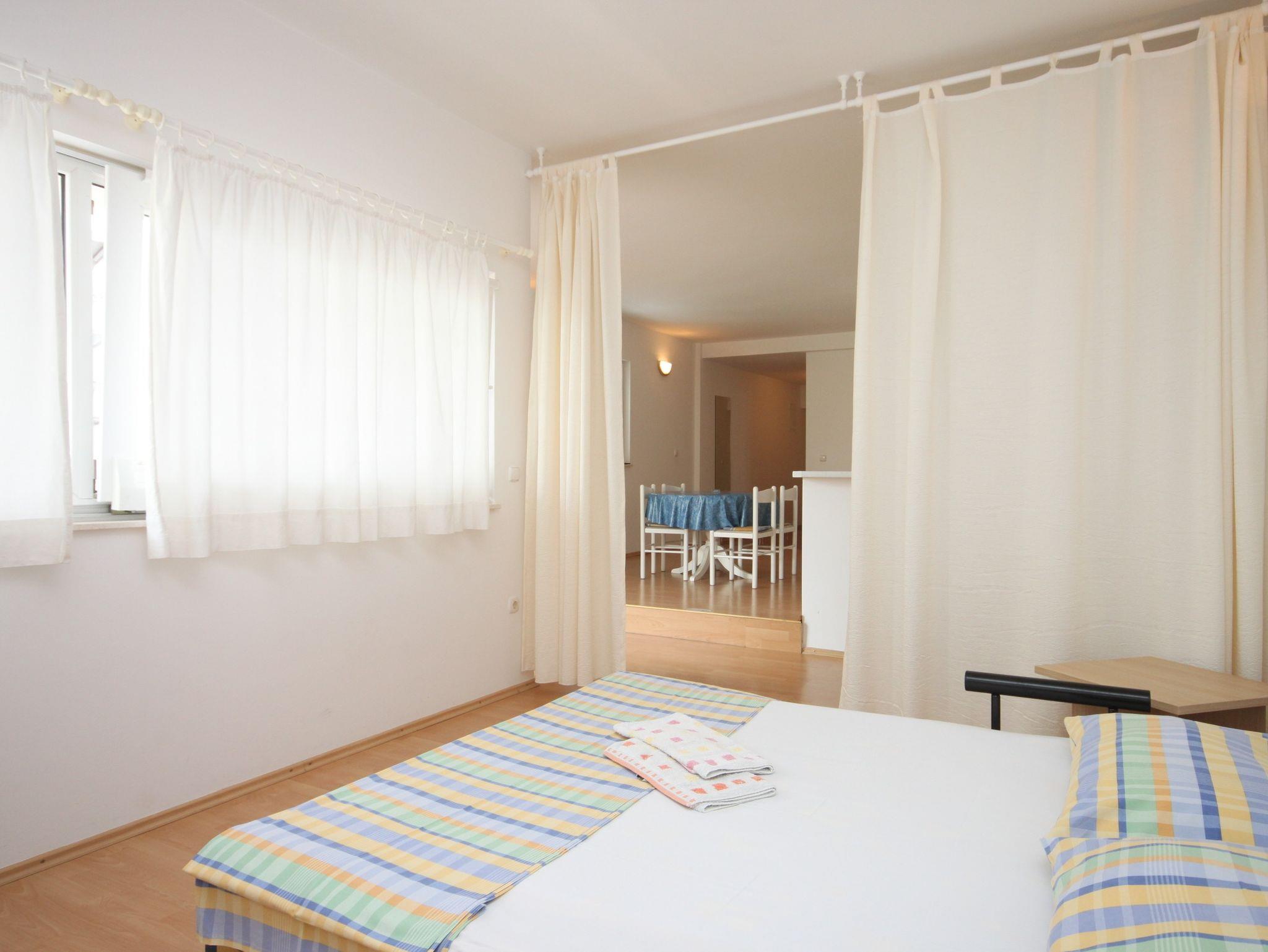 Ferienwohnung bietet Platz für 4 Gäste. Die Betten sind in Schlafzimmern, die es 1 gibt, und in Wohnzimmer, innerhalb einer Gesamtfläche von 63m2, angeordnet. Die Gäste haben eine eigene Terrasse zur Verfügung, auf der sie in warmen Sommernächten genießen können. Das Apartment bietet Meerblick. Es ist erlaubt, Speisen auf dem Gemeinschafts-Grill vorzubereiten. IM PREIS INBEGRIFFEN: Kurtaxe, Endreinigung, Klimatisierung, Parkplatz, Internet, Kinderbett, Bügeleisen, Bügelbrett, Föhn. VERBINDLICHE ZUSÄTZLICHE KOSTEN: Aufzahlung für Kurzaufenthalte (prozentualer Zuschlag pro Nächtigungsanzahl: 30% - 1, 20% - 2, 10% - 3). UNVERBINDLICHE ZUSÄTZLICHE KOSTEN: Wäschewaschen (5,00 € Waschen), Zusatzbett (10,00 € pro Nacht). Die Verfügbarkeit zusätzlicher Dienstleistungen in Ihrem reservierten Termin und die Preise derselben (falls nicht aufgeführt) müssen im Voraus überprüft werden. Zusätzliche Dienstleistungen die in der Zahlungsaufforderung nicht aufgeführt sind werden direkt beim Vermieter bezahlt, angenommen der Gast nutzt auch diese.