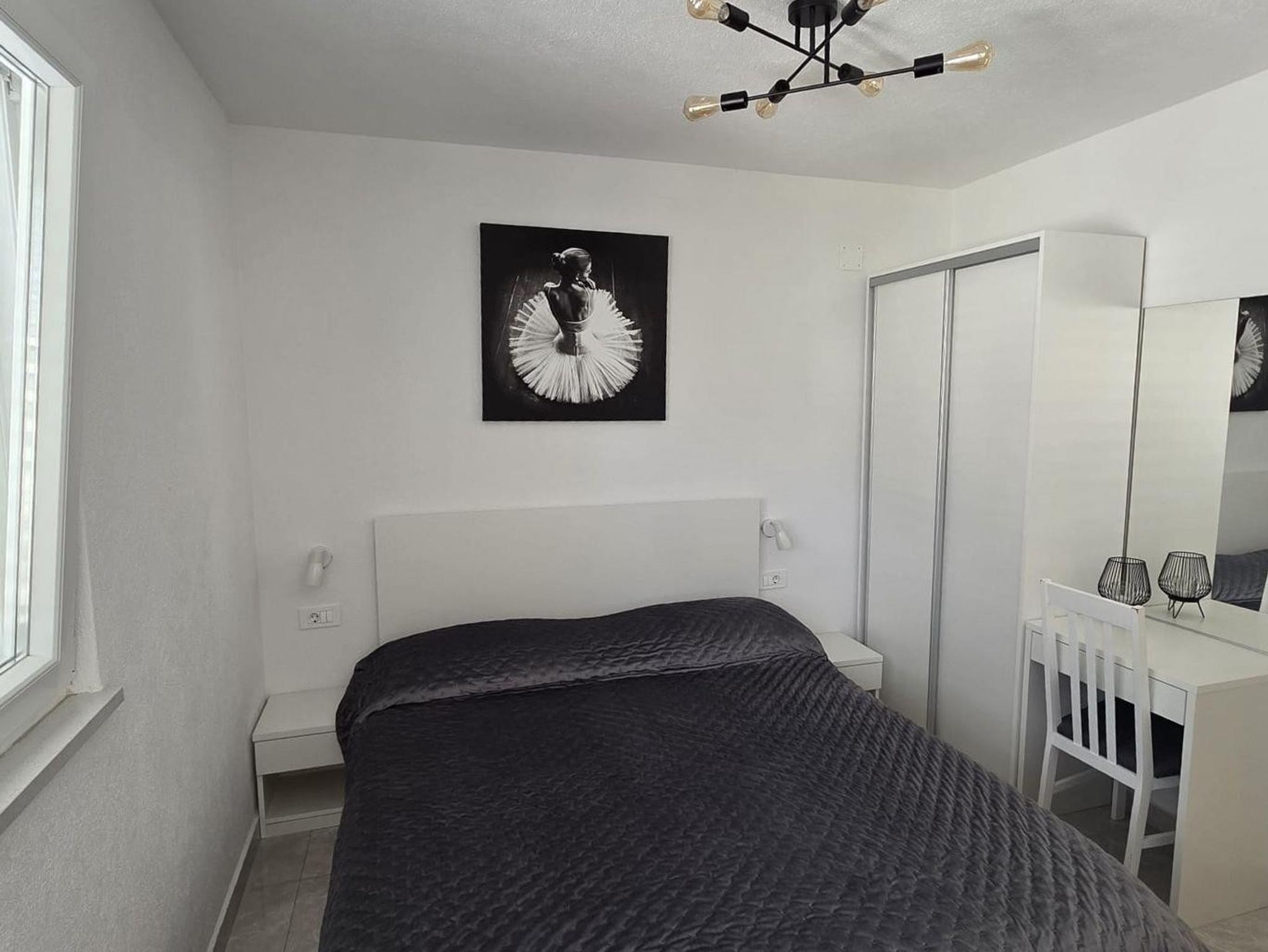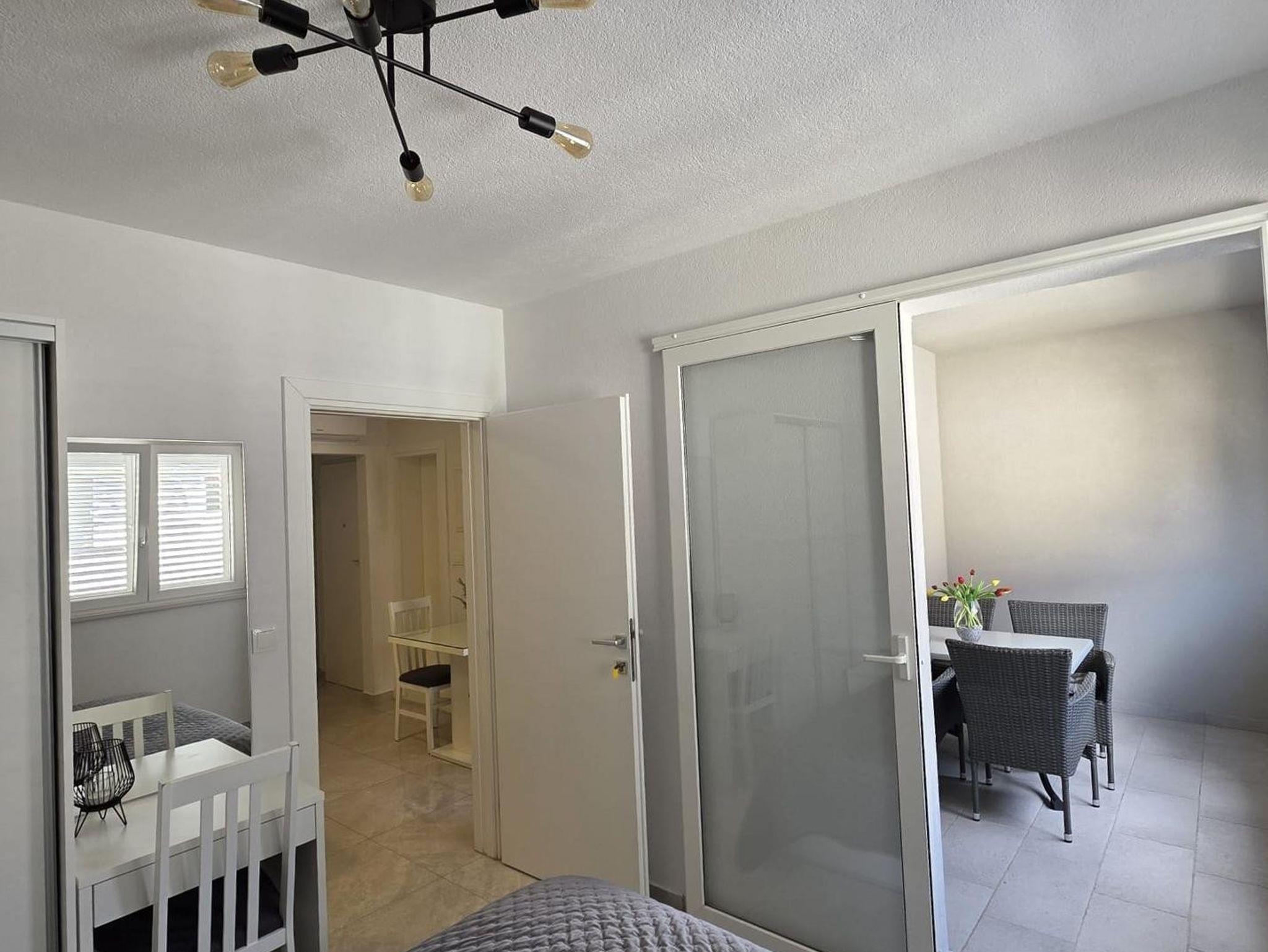 Ferienwohnung bietet Platz für 4 Gäste. Die Betten sind in Schlafzimmern, die es 1 gibt, und in Wohnzimmer, innerhalb einer Gesamtfläche von 25m2, angeordnet. Die Gäste haben eine eigene Terrasse zur Verfügung, auf der sie in warmen Sommernächten genießen können. In der Unterkunftseinheit besteht die Möglichkeit des Mitbringens von Haustieren gegen Aufpreis. IM PREIS INBEGRIFFEN: Kurtaxe, Endreinigung, Klimatisierung, Parkplatz, Internet, Kinderbett, Bügeleisen, Bügelbrett, Föhn. VERBINDLICHE ZUSÄTZLICHE KOSTEN: Aufzahlung für Kurzaufenthalte (prozentualer Zuschlag pro Nächtigungsanzahl: 30% - 1, 20% - 2, 10% - 3). UNVERBINDLICHE ZUSÄTZLICHE KOSTEN: Haustiere (10,00 € pro Nacht). Die Verfügbarkeit zusätzlicher Dienstleistungen in Ihrem reservierten Termin und die Preise derselben (falls nicht aufgeführt) müssen im Voraus überprüft werden. Zusätzliche Dienstleistungen die in der Zahlungsaufforderung nicht aufgeführt sind werden direkt beim Vermieter bezahlt, angenommen der Gast nutzt auch diese.