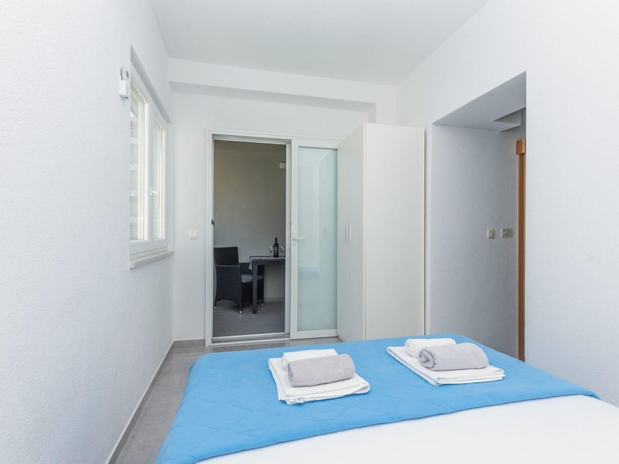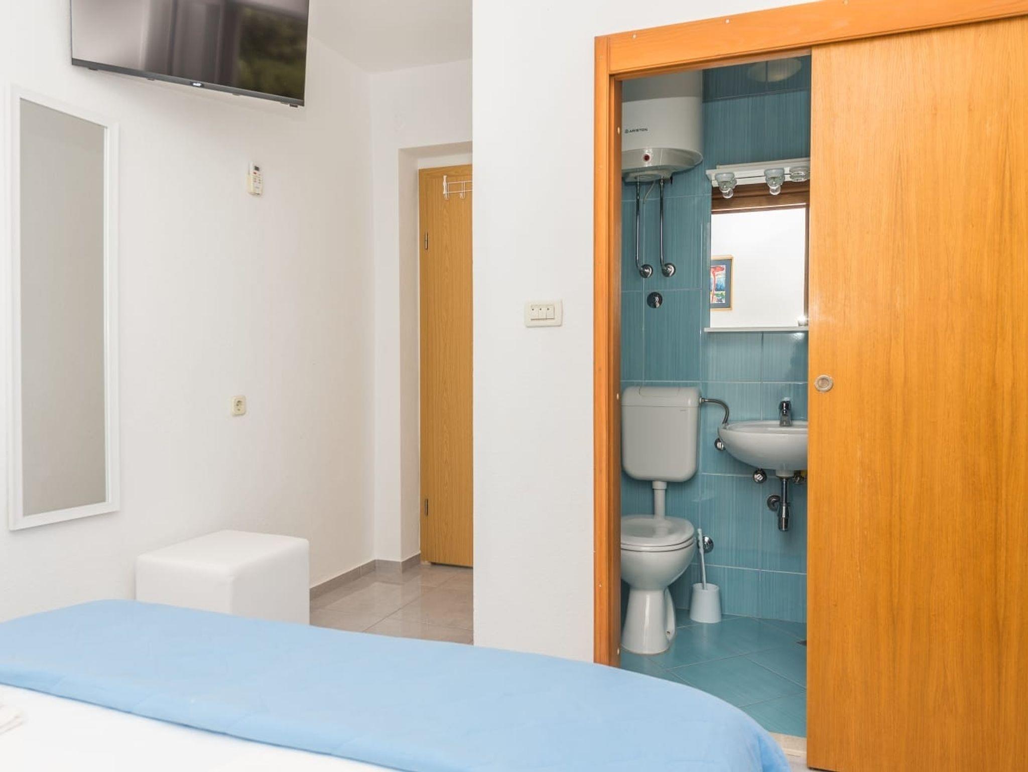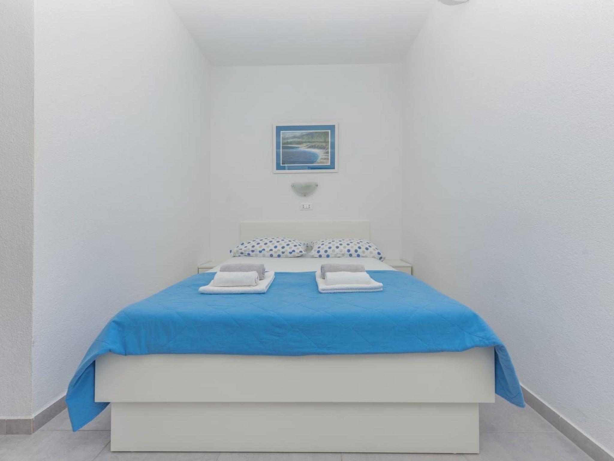 Ferienwohnung bietet Platz für 5 Gäste. Die Betten sind in Schlafzimmern, die es 2 gibt, und in Wohnzimmer, innerhalb einer Gesamtfläche von 46m2, angeordnet. Die Gäste haben einen eigenen Balkon zur Verfügung, auf der sie in warmen Sommernächten genießen können. Das Apartment bietet Meerblick. IM PREIS INBEGRIFFEN: Kurtaxe, Endreinigung, Klimatisierung, Parkplatz, Internet, Bügeleisen, Bügelbrett, Föhn. VERBINDLICHE ZUSÄTZLICHE KOSTEN: Aufzahlung für Kurzaufenthalte (prozentualer Zuschlag pro Nächtigungsanzahl: 30% - 1, 20% - 2, 10% - 3). Die Verfügbarkeit zusätzlicher Dienstleistungen in Ihrem reservierten Termin und die Preise derselben (falls nicht aufgeführt) müssen im Voraus überprüft werden. Zusätzliche Dienstleistungen die in der Zahlungsaufforderung nicht aufgeführt sind werden direkt beim Vermieter bezahlt, angenommen der Gast nutzt auch diese.
