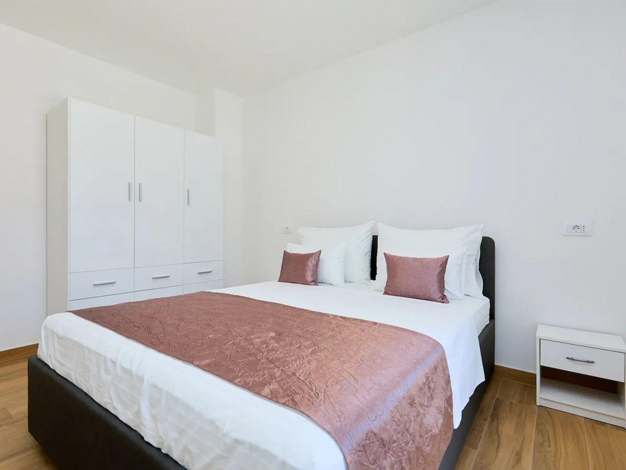 Ferienwohnung bietet Platz für 2 Gäste. Die Betten sind in Schlafzimmern, die es 1 gibt, innerhalb einer Gesamtfläche von 38m2, angeordnet. Die Gäste haben einen eigenen Balkon zur Verfügung, auf der sie in warmen Sommernächten genießen können. Das Apartment bietet Meerblick. IM PREIS INBEGRIFFEN: Kurtaxe, Endreinigung, Parkplatz, Internet, Kinderbett, Bügeleisen, Bügelbrett, Föhn. Die Verfügbarkeit zusätzlicher Dienstleistungen in Ihrem reservierten Termin und die Preise derselben (falls nicht aufgeführt) müssen im Voraus überprüft werden. Zusätzliche Dienstleistungen die in der Zahlungsaufforderung nicht aufgeführt sind werden direkt beim Vermieter bezahlt, angenommen der Gast nutzt auch diese.