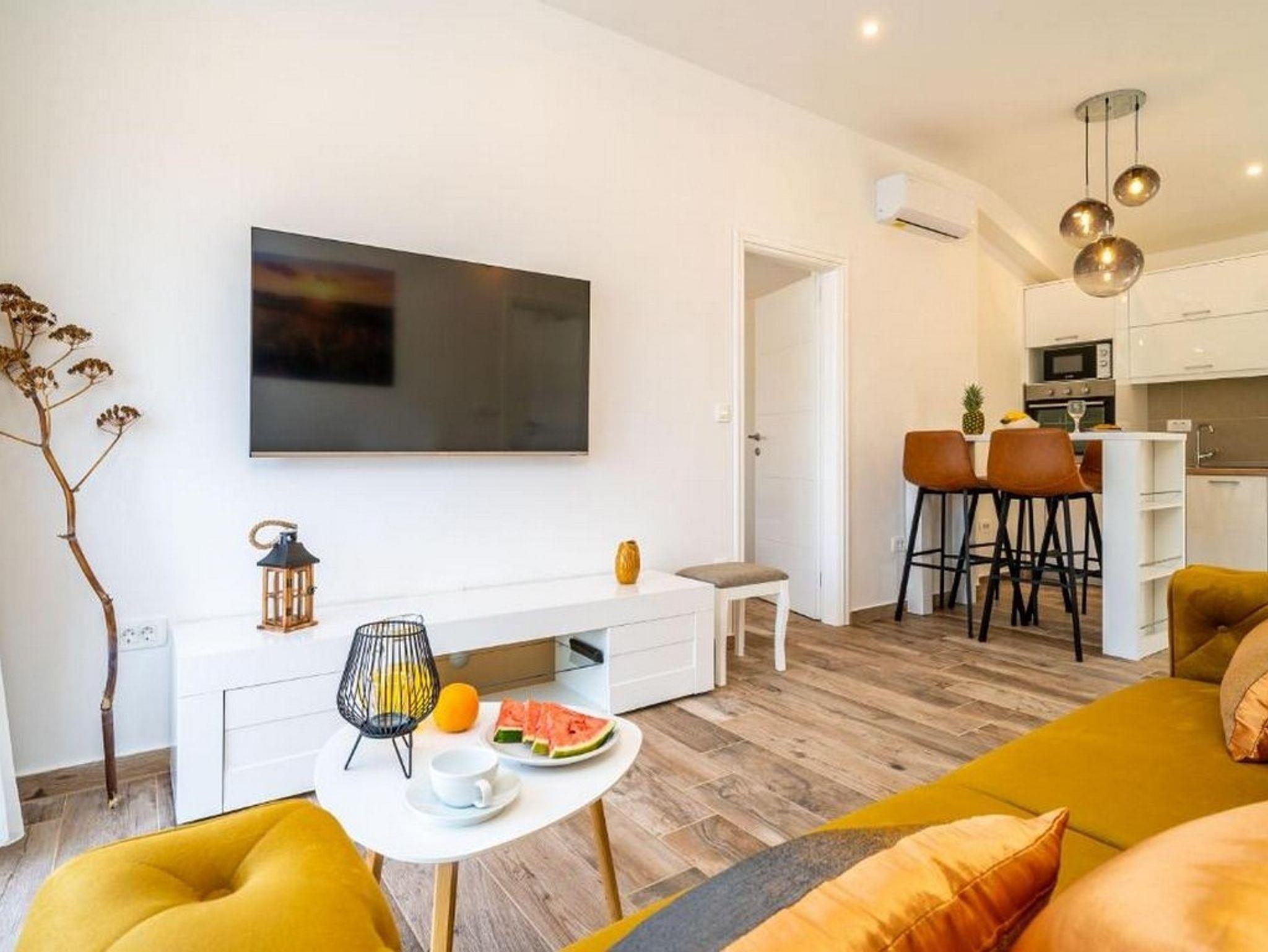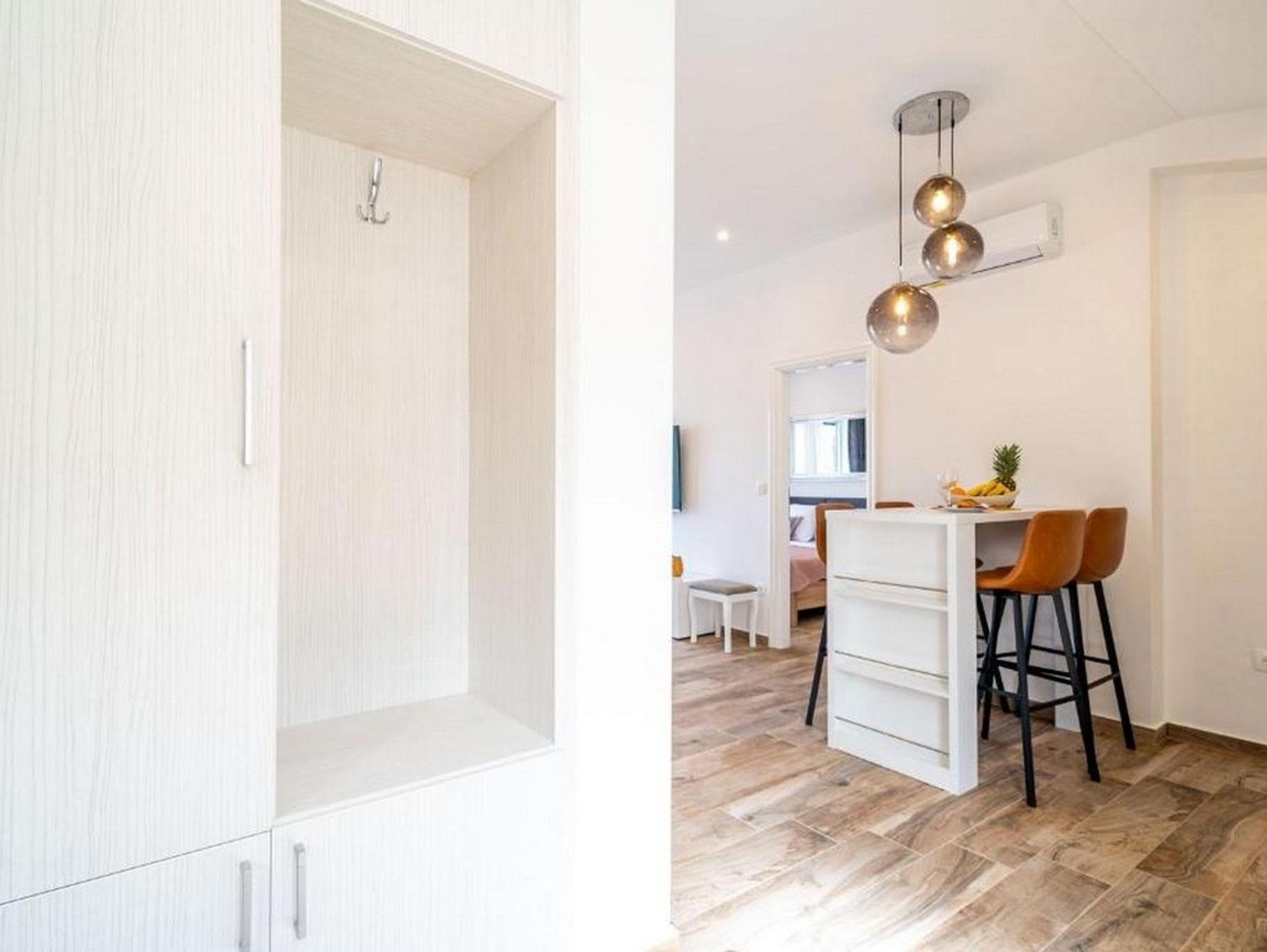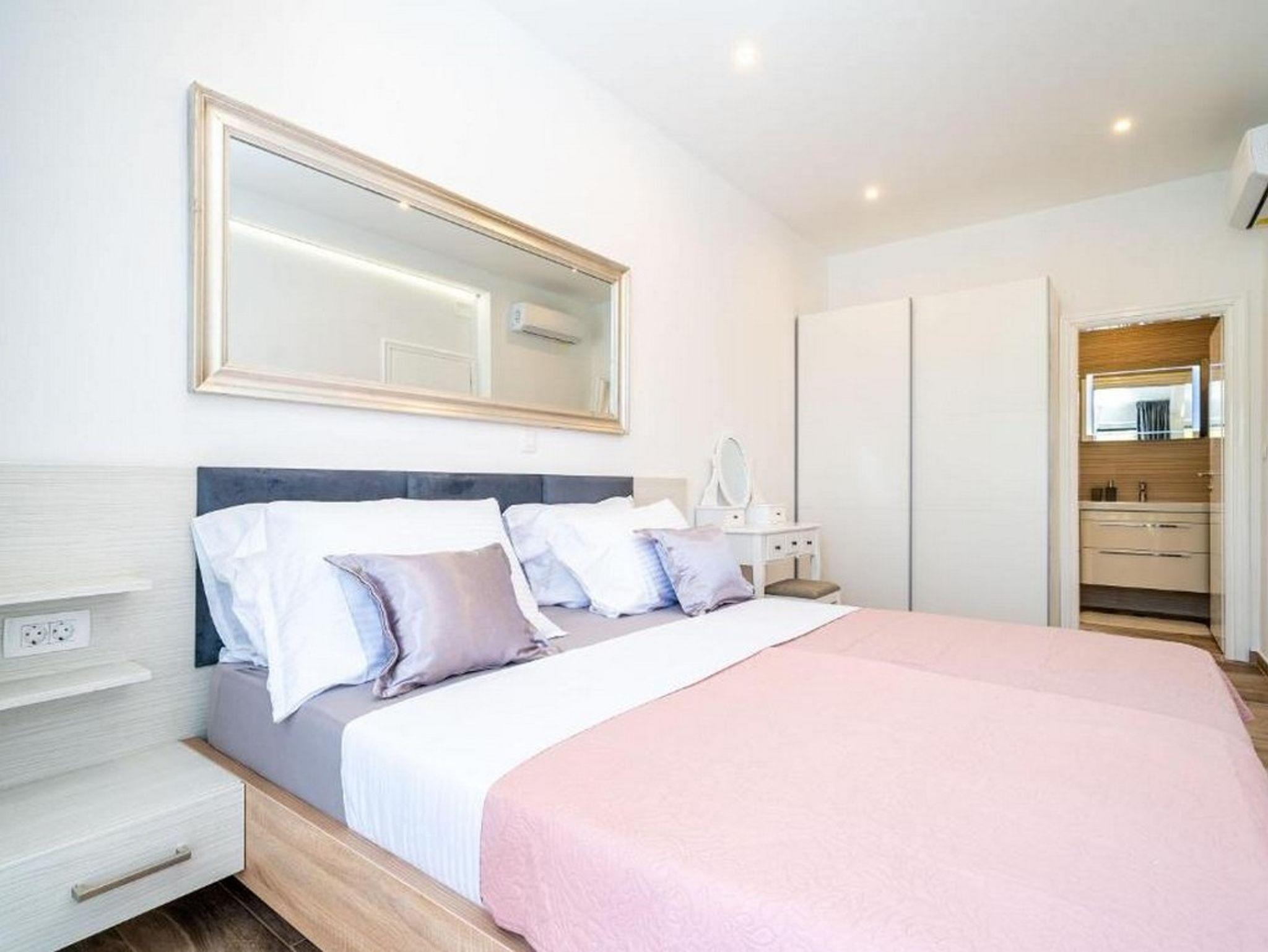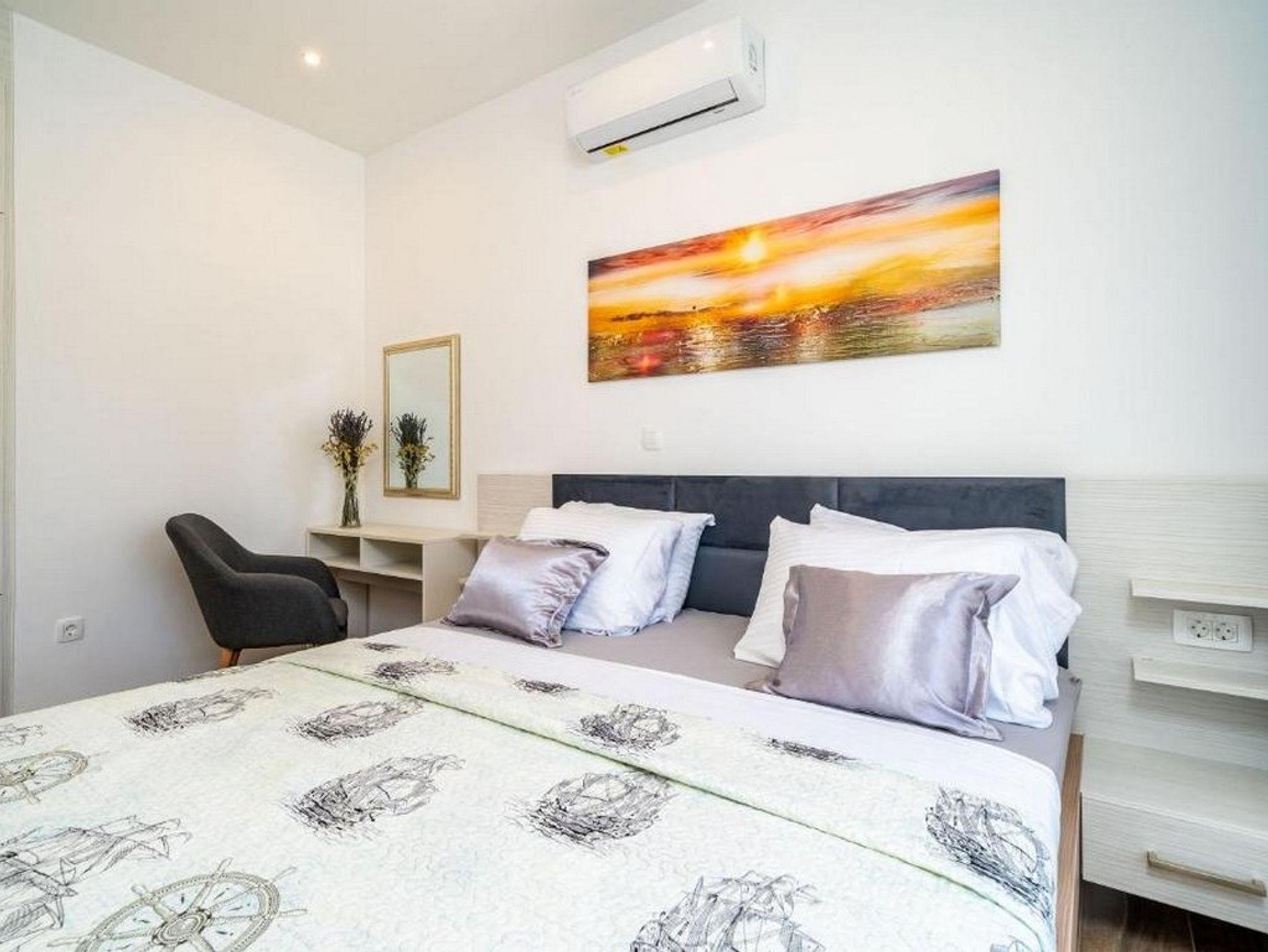 Ferienwohnung bietet Platz für 4 Gäste. Die Betten sind in Schlafzimmern, die es 2 gibt, innerhalb einer Gesamtfläche von 60m2, angeordnet. Die Gäste haben eine eigene Terrasse zur Verfügung, auf der sie in warmen Sommernächten genießen können. Das Apartment bietet Meerblick. Während ihres Aufenthalts können Gäste das gemeinsam zur Nutzung stehende Schwimmbad benutzen. Unterkunftseinheit hat Räume, die von dem Rest der Einheit abgetrennt werden. IM PREIS INBEGRIFFEN: Kurtaxe, Endreinigung, Klimatisierung, Pool, Internet, Kinderbett, Bügeleisen, Föhn. Die Verfügbarkeit zusätzlicher Dienstleistungen in Ihrem reservierten Termin und die Preise derselben (falls nicht aufgeführt) müssen im Voraus überprüft werden. Zusätzliche Dienstleistungen die in der Zahlungsaufforderung nicht aufgeführt sind werden direkt beim Vermieter bezahlt, angenommen der Gast nutzt auch diese.