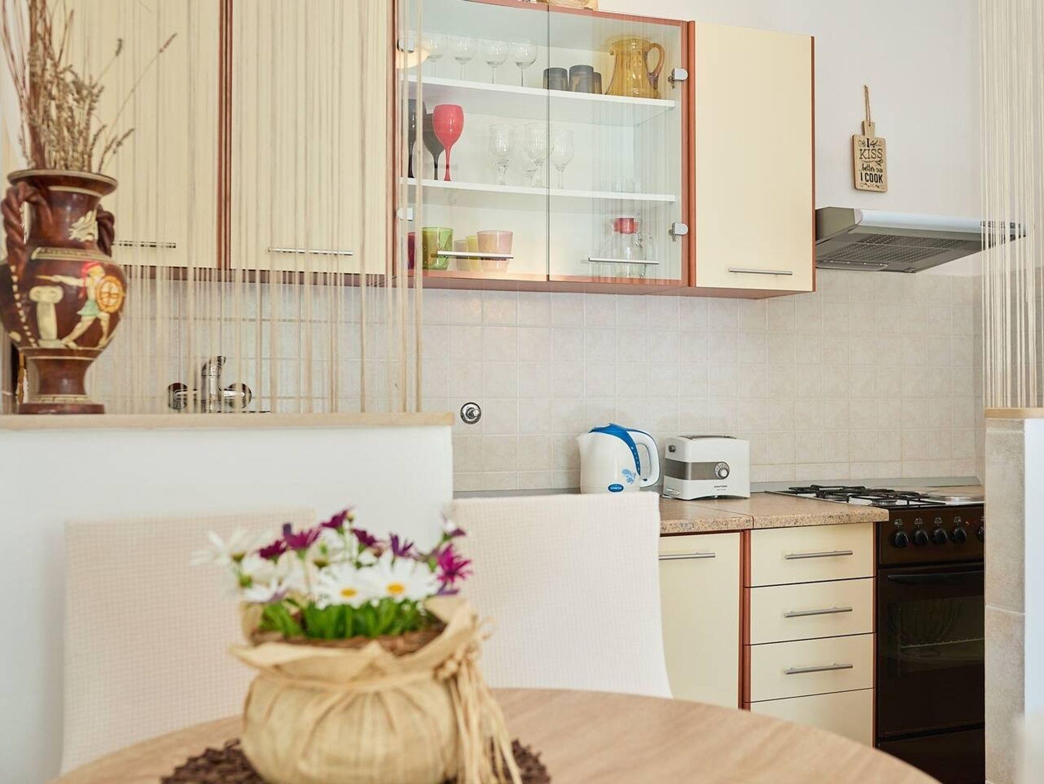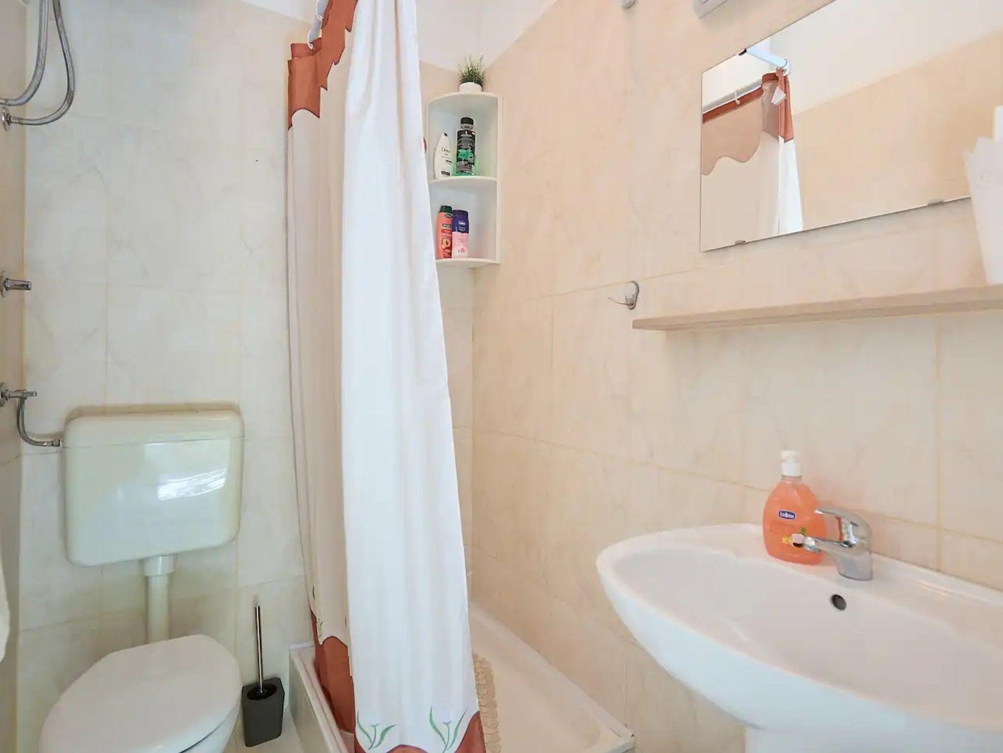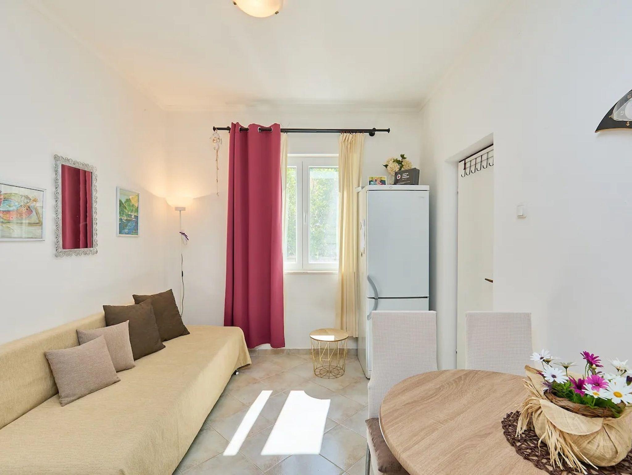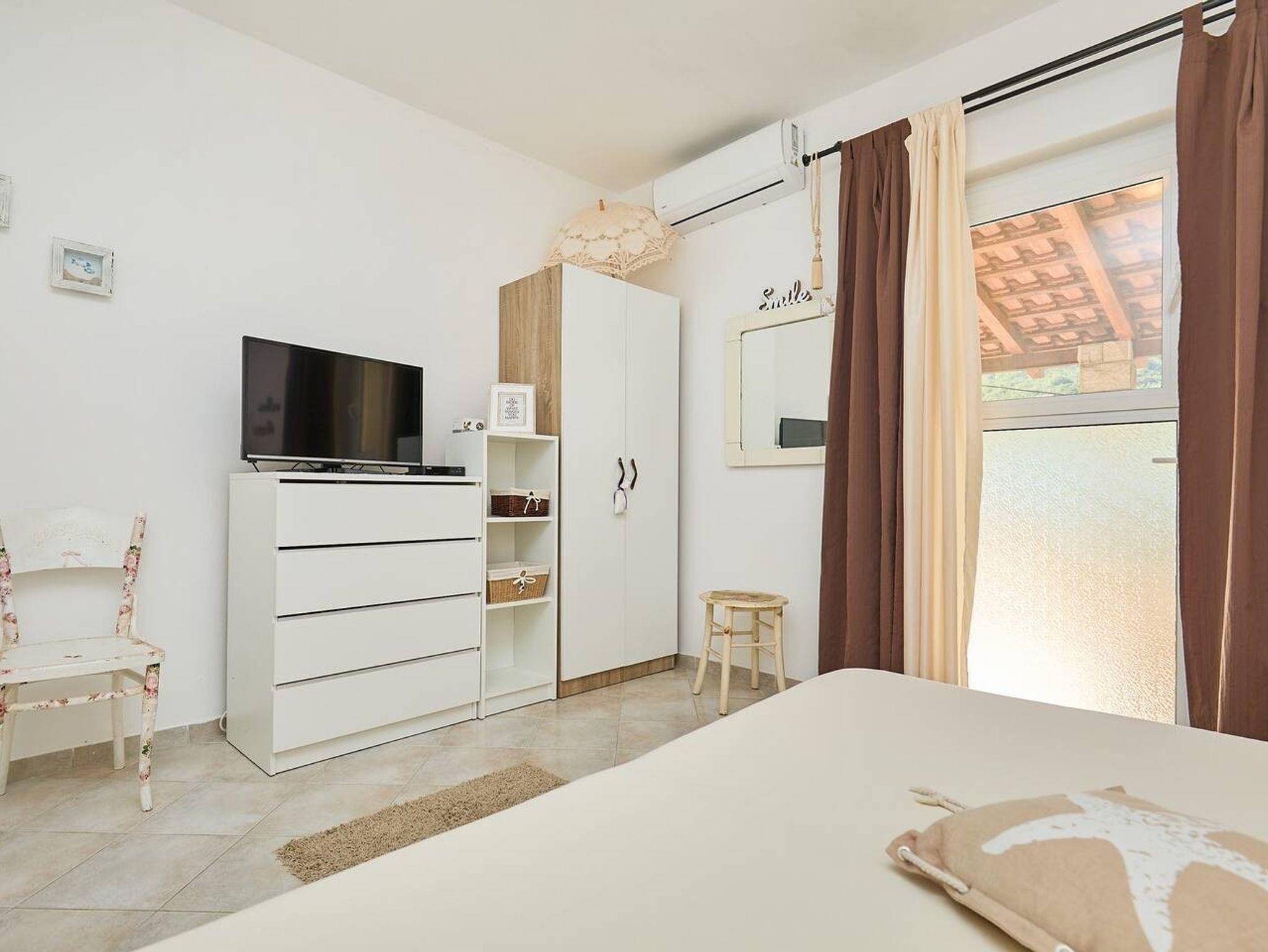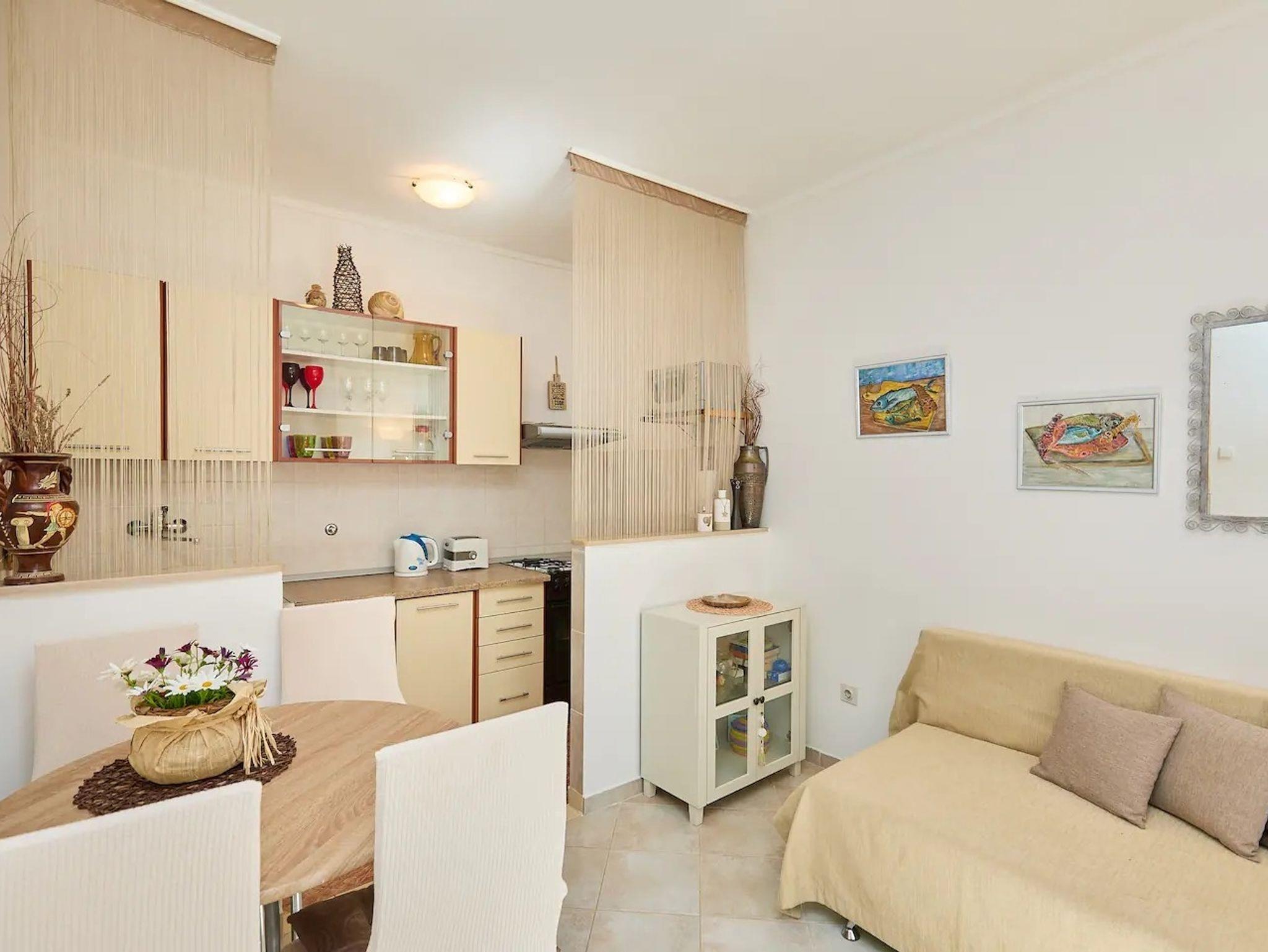 Studio bietet Platz für 4 Gäste. Die Betten sind in Schlafzimmern, die es 1 gibt, und in Wohnzimmer, innerhalb einer Gesamtfläche von 34m2, angeordnet. Die Gäste haben eine eigene Terrasse zur Verfügung, auf der sie in warmen Sommernächten genießen können. Das Studio-Apartment bietet Meerblick. Für vollen Genuss und Entspannung gibt es einen privaten Grill für Gäste dieser Unterkunft. In der Unterkunftseinheit besteht die Möglichkeit des Mitbringens von Haustieren, und die Dienstleistung ist im Preis der Unterkunft enthalten. IM PREIS INBEGRIFFEN: Kurtaxe, Endreinigung, Klimatisierung, Parkplatz, Internet, Haustiere, Kinderbett, Bügeleisen, Bügelbrett, Föhn. Die Verfügbarkeit zusätzlicher Dienstleistungen in Ihrem reservierten Termin und die Preise derselben (falls nicht aufgeführt) müssen im Voraus überprüft werden. Zusätzliche Dienstleistungen die in der Zahlungsaufforderung nicht aufgeführt sind werden direkt beim Vermieter bezahlt, angenommen der Gast nutzt auch diese.