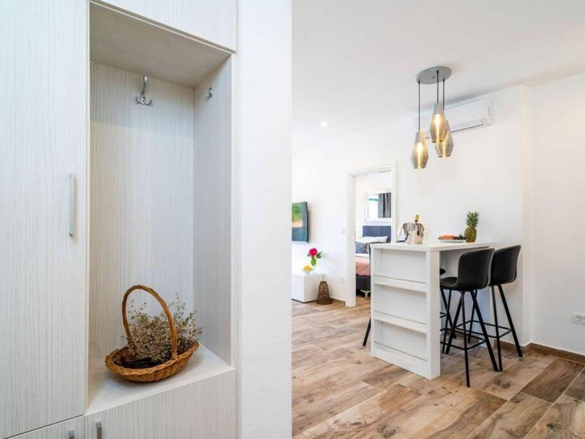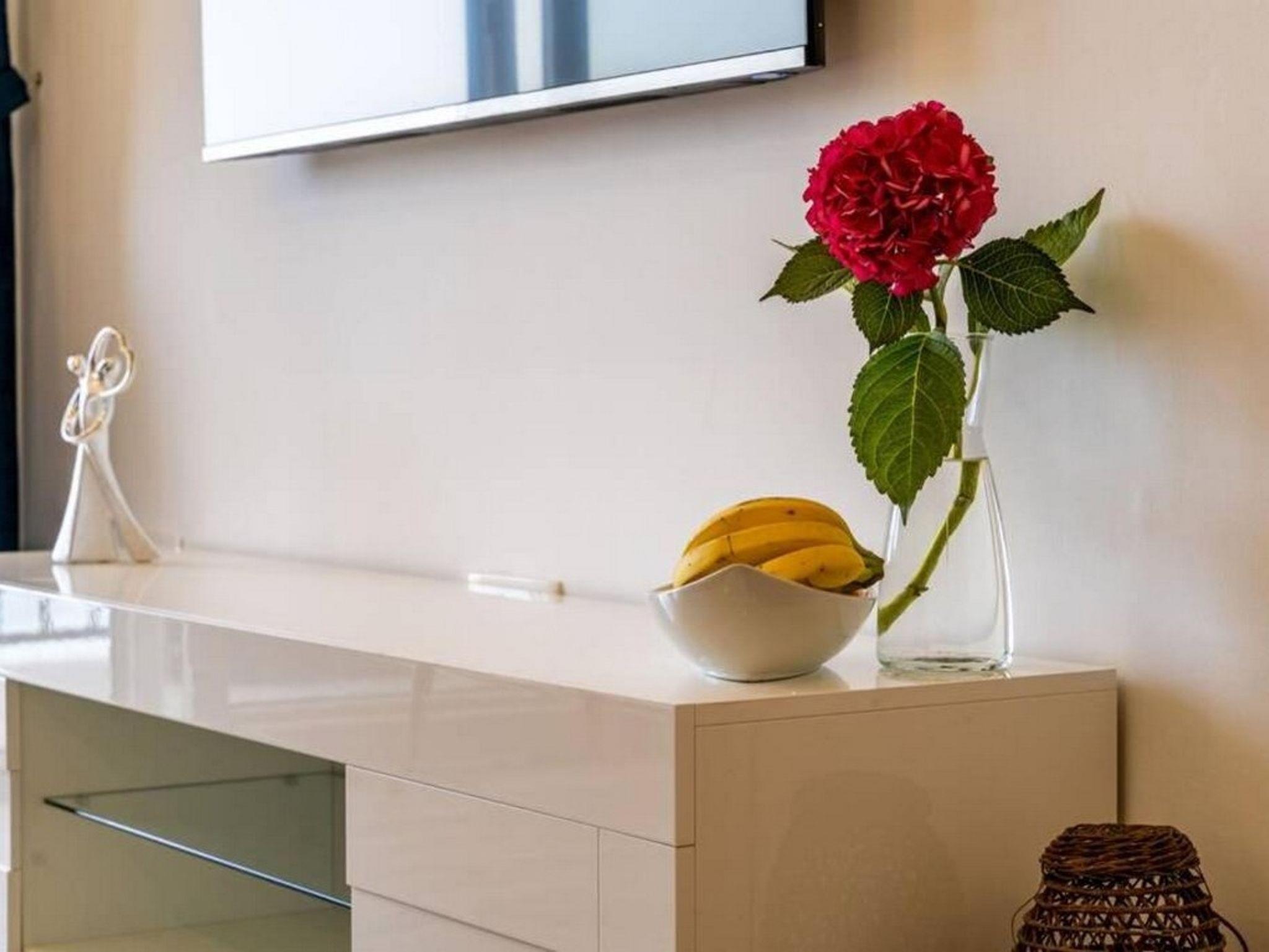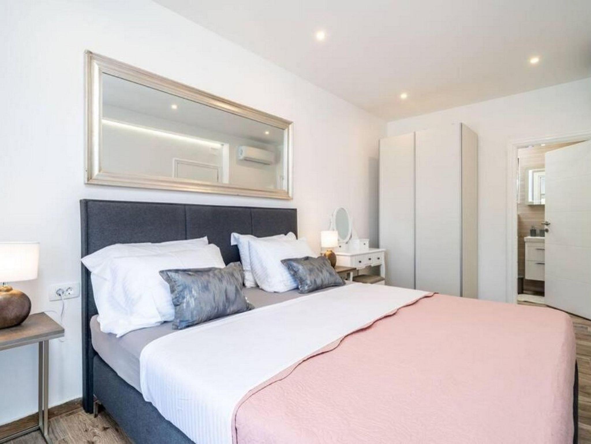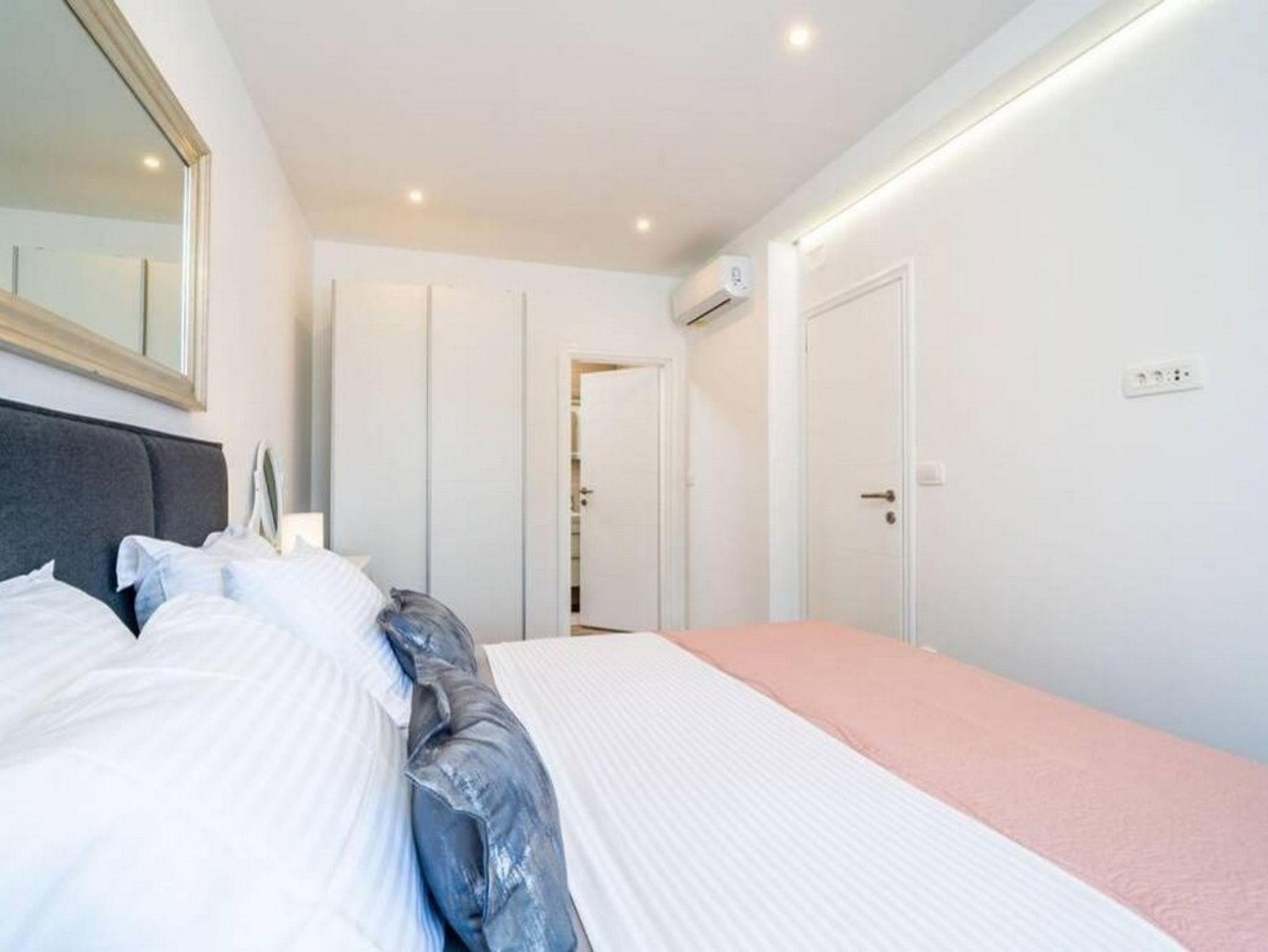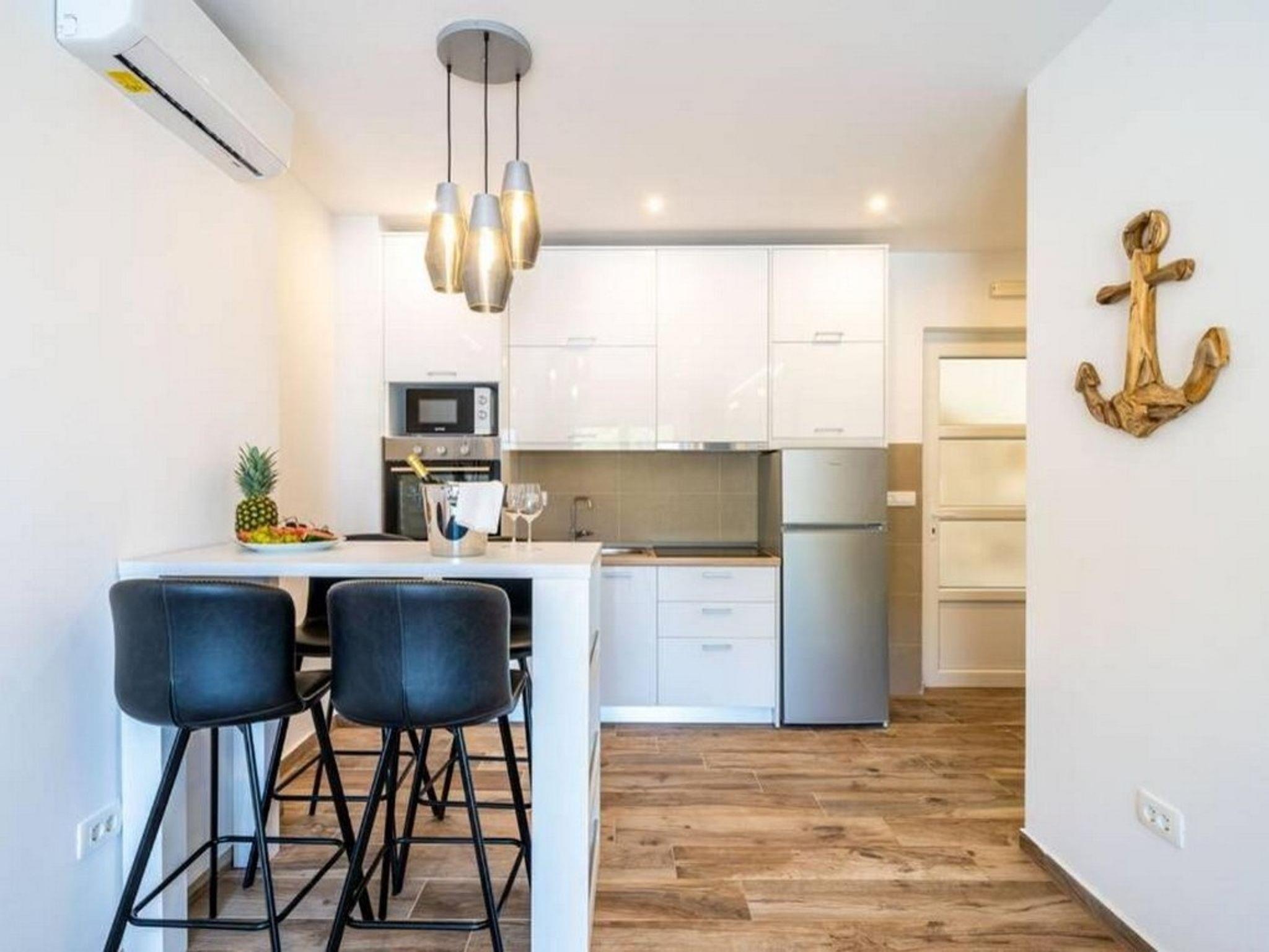 Ferienwohnung bietet Platz für 4 Gäste. Die Betten sind in Schlafzimmern, die es 2 gibt, innerhalb einer Gesamtfläche von 56m2, angeordnet. Die Gäste haben eine eigene Terrasse zur Verfügung, auf der sie in warmen Sommernächten genießen können. Das Apartment bietet Meerblick. Während ihres Aufenthalts können Gäste das gemeinsam zur Nutzung stehende Schwimmbad benutzen. IM PREIS INBEGRIFFEN: Kurtaxe, Endreinigung, Klimatisierung, Pool, Internet, Kinderbett, Bügeleisen, Föhn. Die Verfügbarkeit zusätzlicher Dienstleistungen in Ihrem reservierten Termin und die Preise derselben (falls nicht aufgeführt) müssen im Voraus überprüft werden. Zusätzliche Dienstleistungen die in der Zahlungsaufforderung nicht aufgeführt sind werden direkt beim Vermieter bezahlt, angenommen der Gast nutzt auch diese.