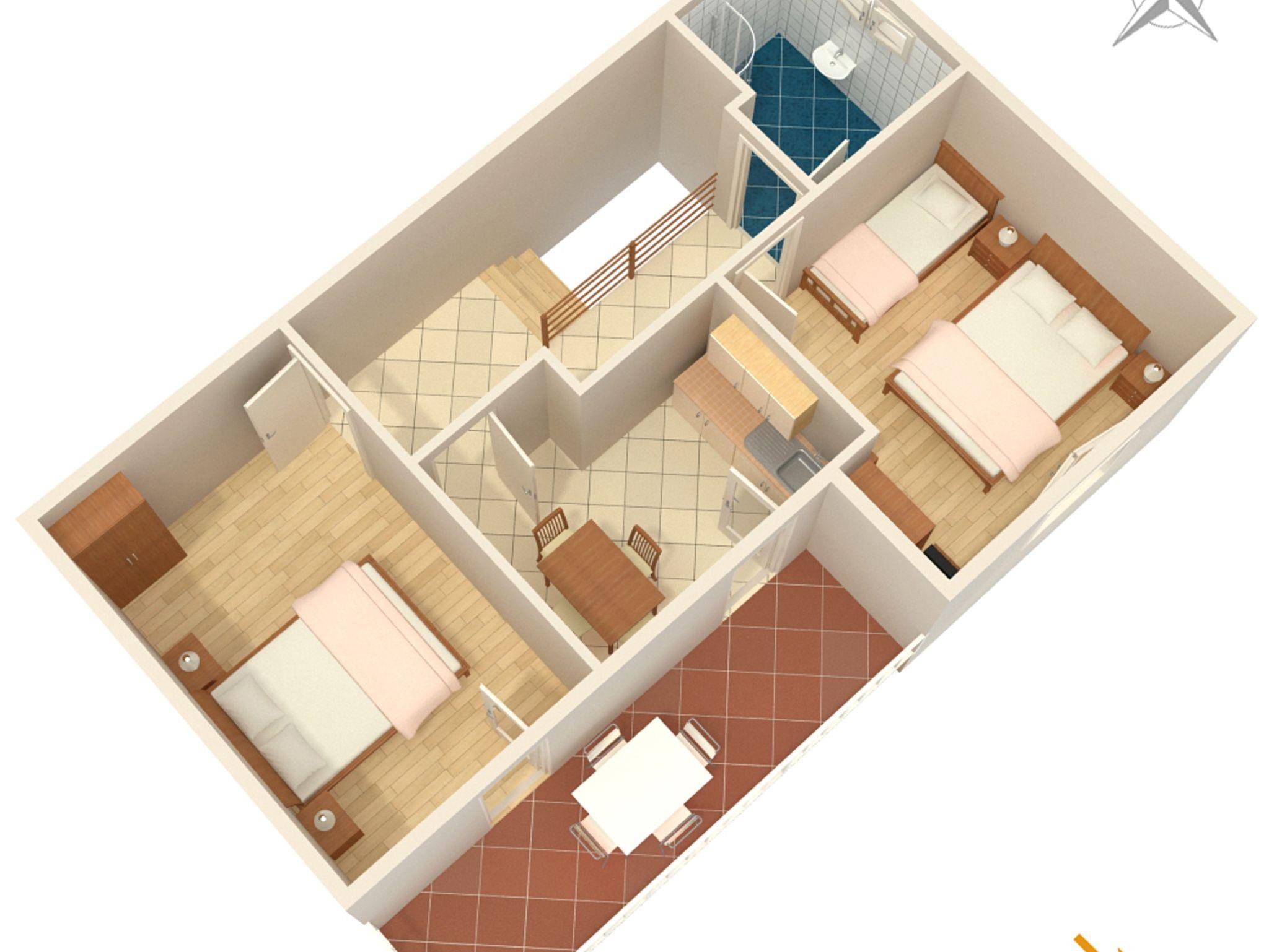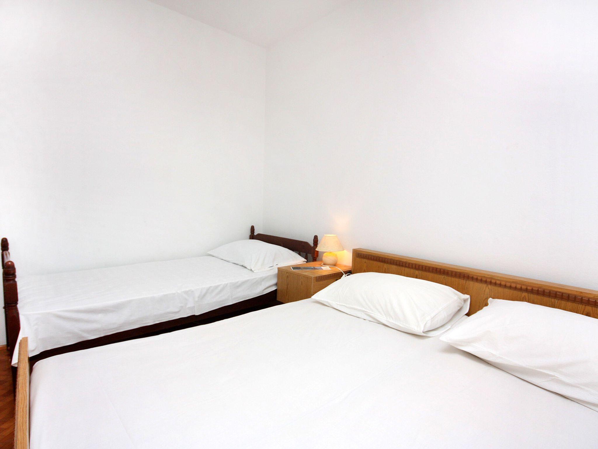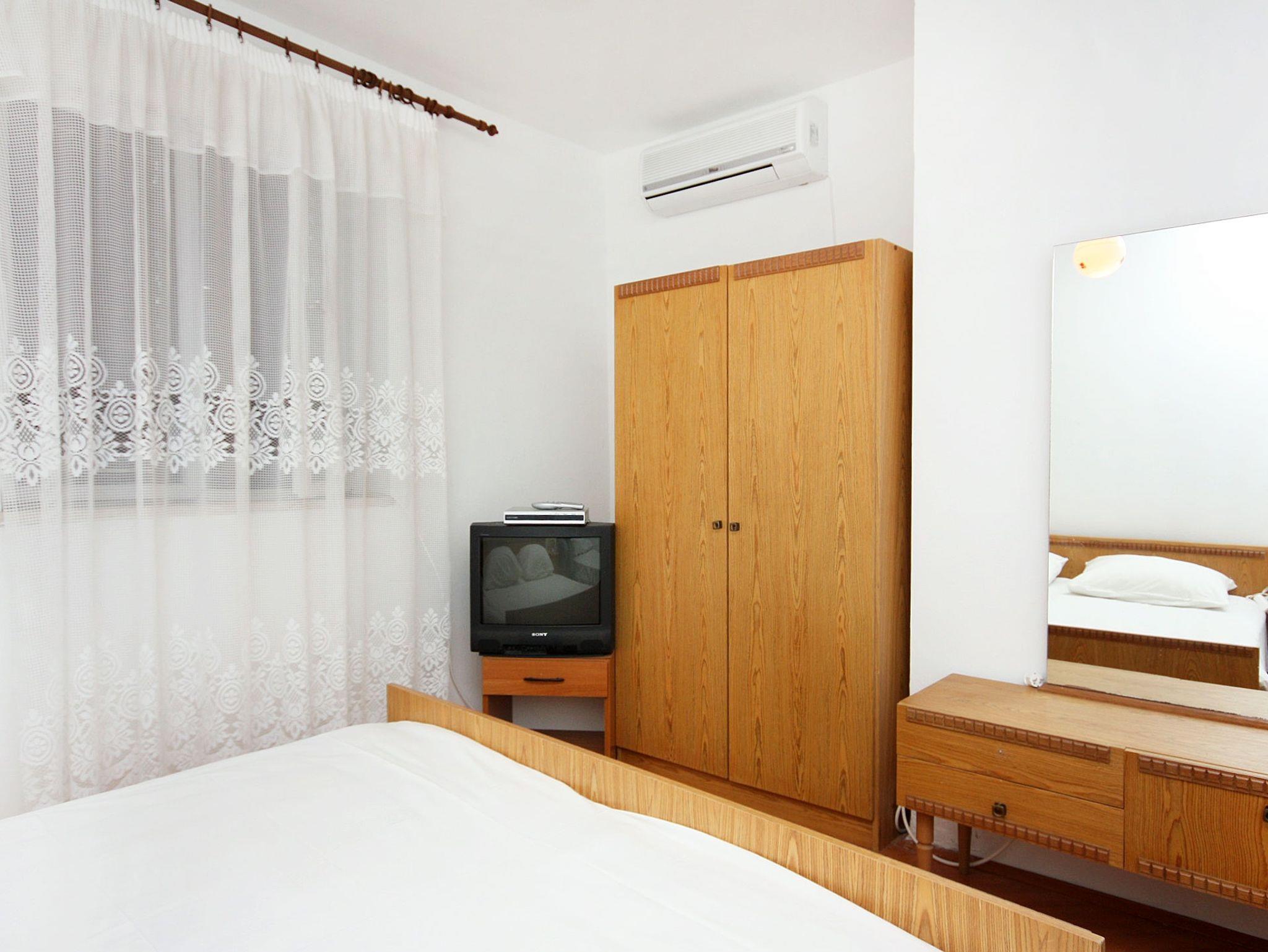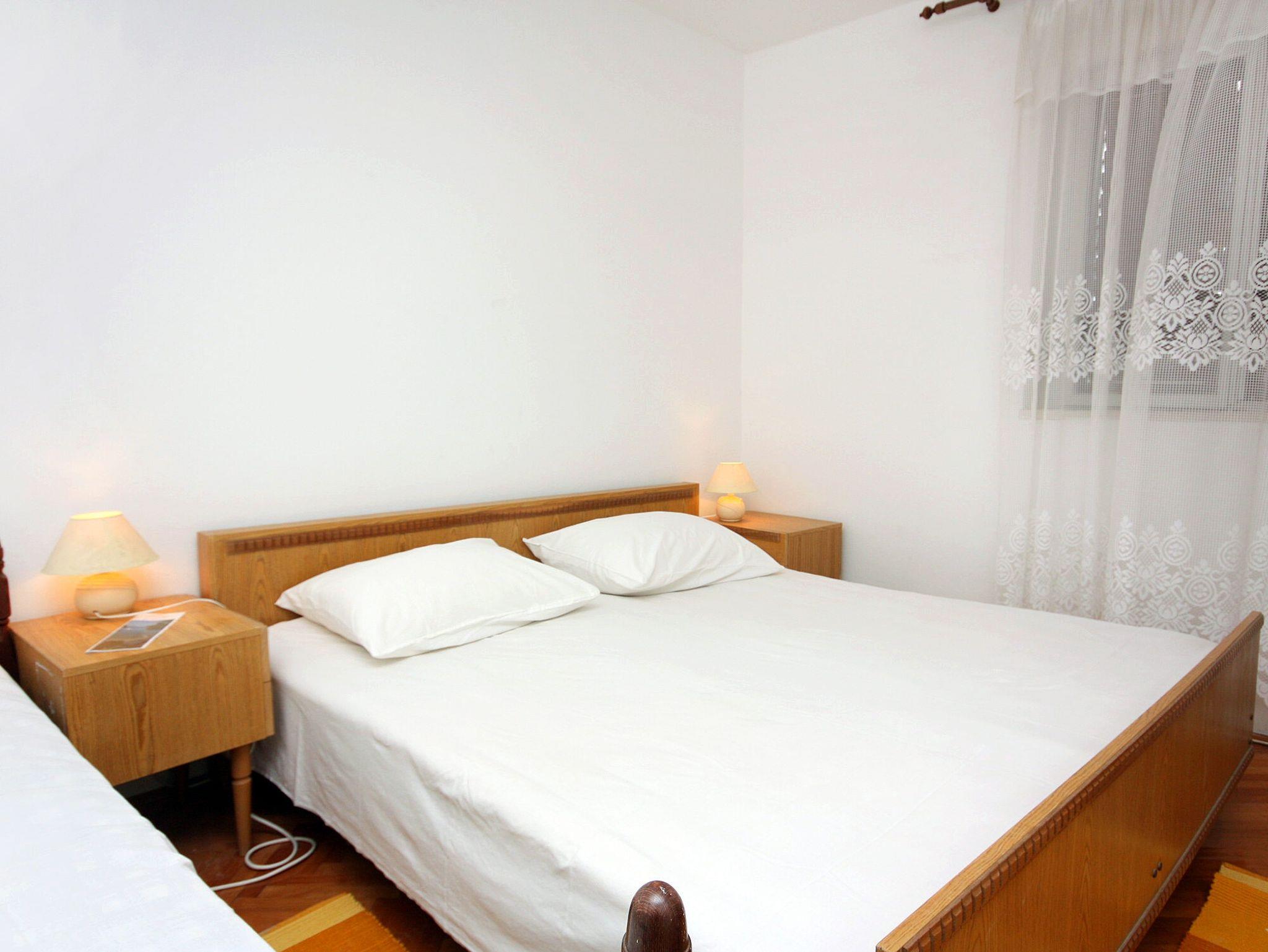 Ferienwohnung bietet Platz für 5 Gäste. Die Betten sind in Schlafzimmern, die es 2 gibt, innerhalb einer Gesamtfläche von 39m2, angeordnet. Die Gäste haben eine eigene Terrasse zur Verfügung, auf der sie in warmen Sommernächten genießen können. Das Apartment bietet Meerblick. Es ist erlaubt, Speisen auf dem Gemeinschafts-Grill vorzubereiten. IM PREIS INBEGRIFFEN: Kurtaxe, Endreinigung, Klimatisierung, Internet, Bootsanlegeplatz, Sonnenschirm. VERBINDLICHE ZUSÄTZLICHE KOSTEN: Aufzahlung für Kurzaufenthalte (prozentualer Zuschlag pro Nächtigungsanzahl: 30% - 1, 20% - 2, 10% - 3). UNVERBINDLICHE ZUSÄTZLICHE KOSTEN: Wäschewaschen (5,00 € Waschen). Die Verfügbarkeit zusätzlicher Dienstleistungen in Ihrem reservierten Termin und die Preise derselben (falls nicht aufgeführt) müssen im Voraus überprüft werden. Zusätzliche Dienstleistungen die in der Zahlungsaufforderung nicht aufgeführt sind werden direkt beim Vermieter bezahlt, angenommen der Gast nutzt auch diese. Ermäßigung auf den Grundpreis: Gratistag 14=13 (bei einem Aufenthalt von 14 Tagen oder mehr erhalten Sie einen Gratistag für den Aufenthalt bis 31.12.26).